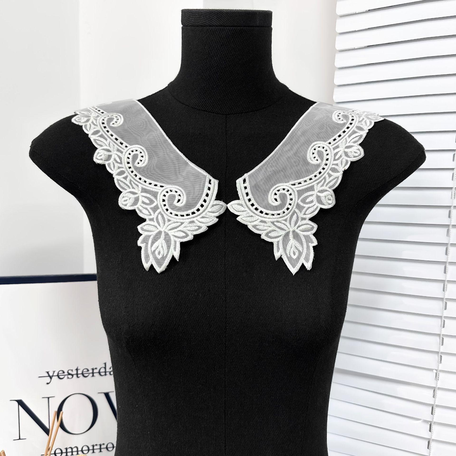 En stock, nuevo collar de organza bordado con flores, collar de flores perforadas huecas, decoración de ropa de encaje de algodón para mujer, venta al por mayor