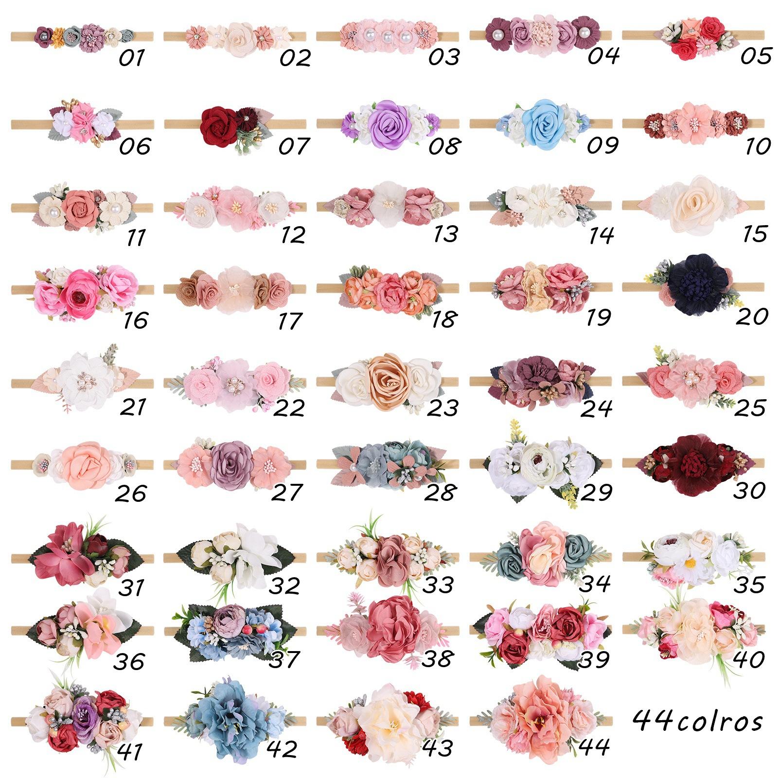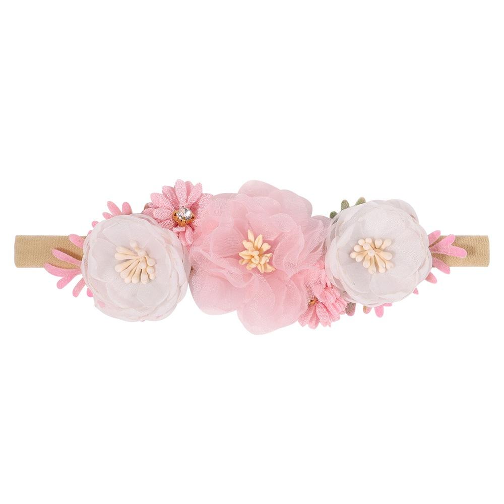 【Nombre】ins flor de simulación accesorios para el cabello de niños simple patchwork floral diadema de nailon para bebé infantil súper suave elástica cabeza2684