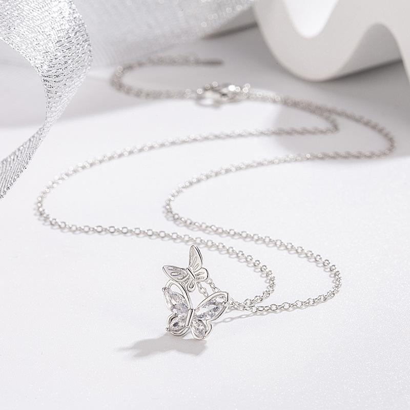 Collar de mariposa con incrustaciones de diamantes para mujer, circonita de nicho, diseño de alta gama, exquisita cadena de clavícula, lujo ligero