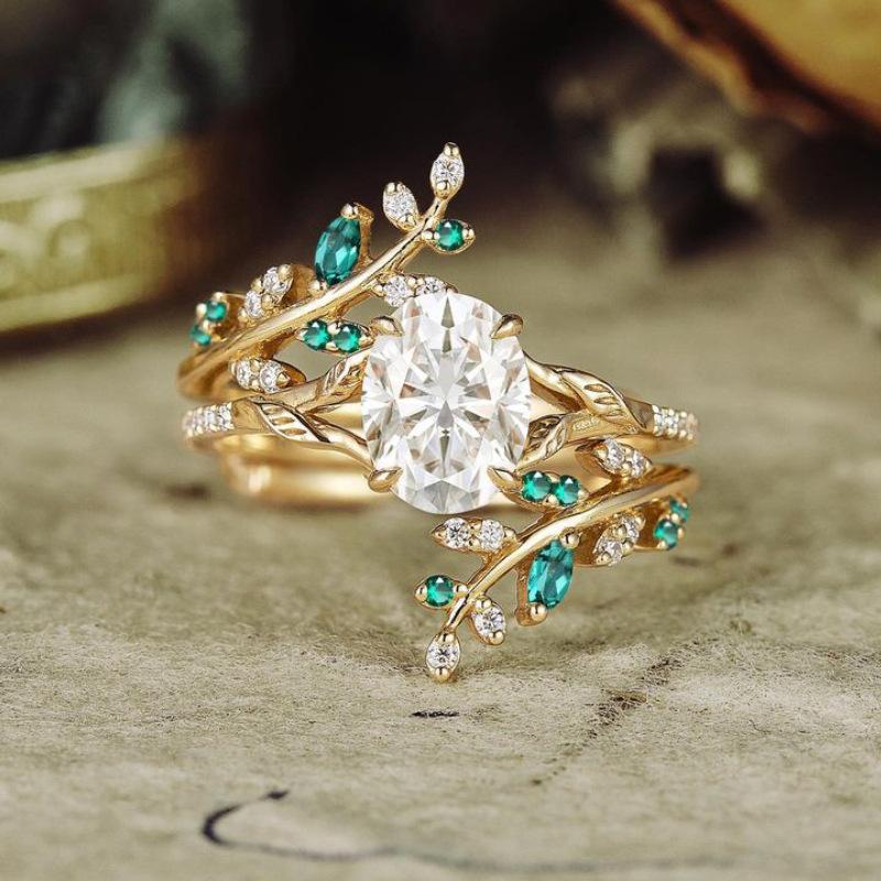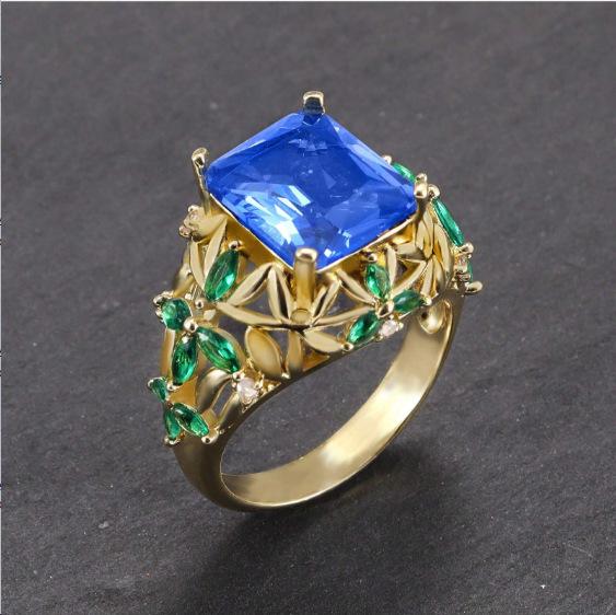Anillo de Conjunto Longrui con Incrustaciones de Cobre y Zircón Colorido Diseño Creativo Anillo de Hoja Europeo y Americano Ventas Calientes Transfronterizas Joyería de Boda Venta al por Mayor