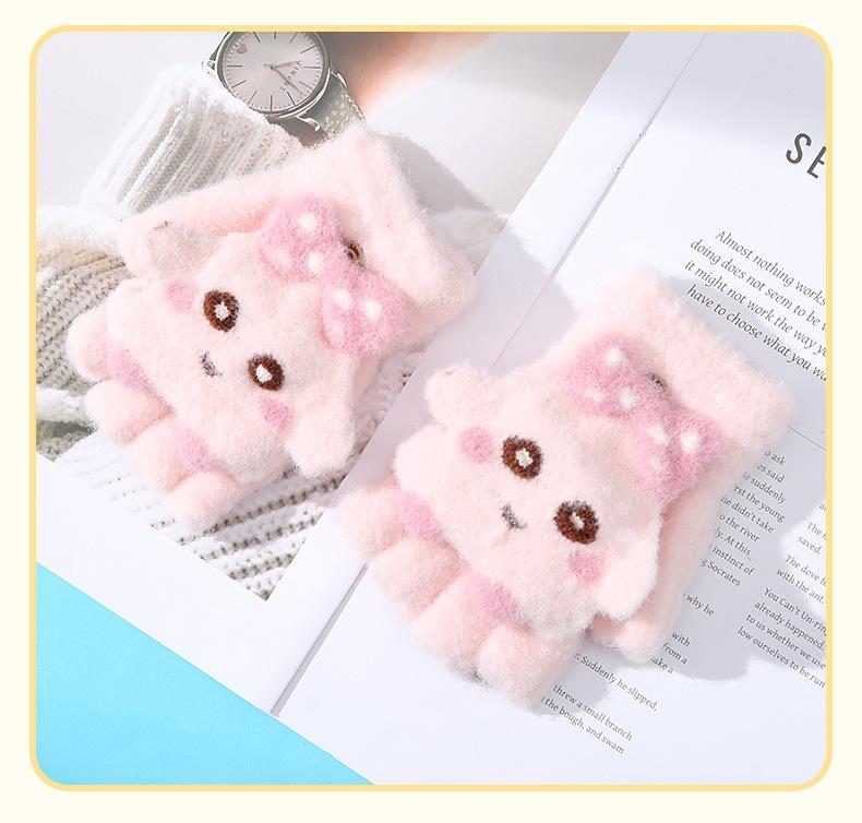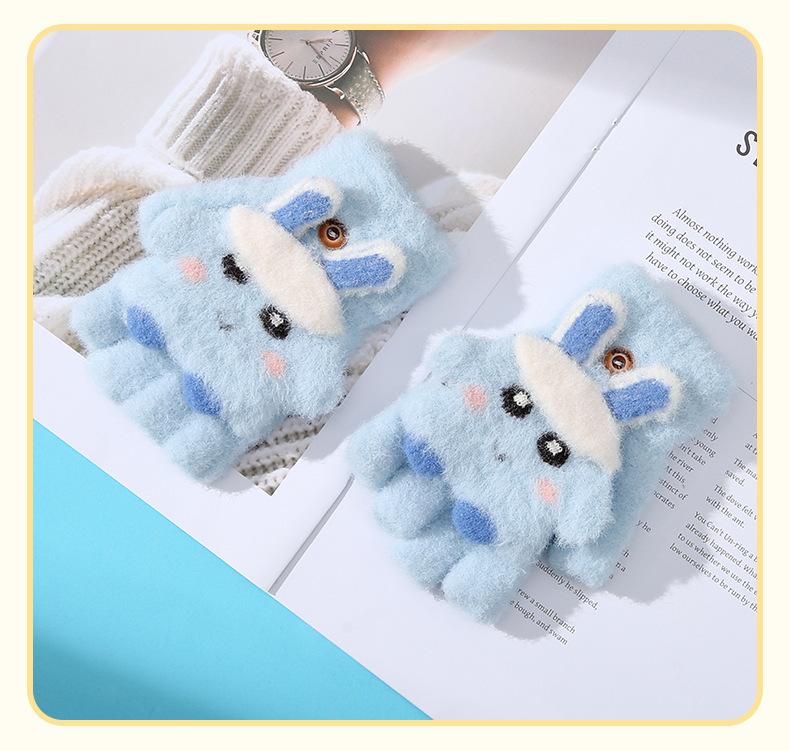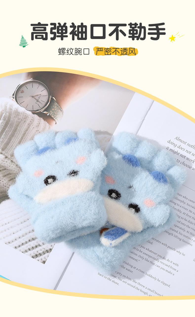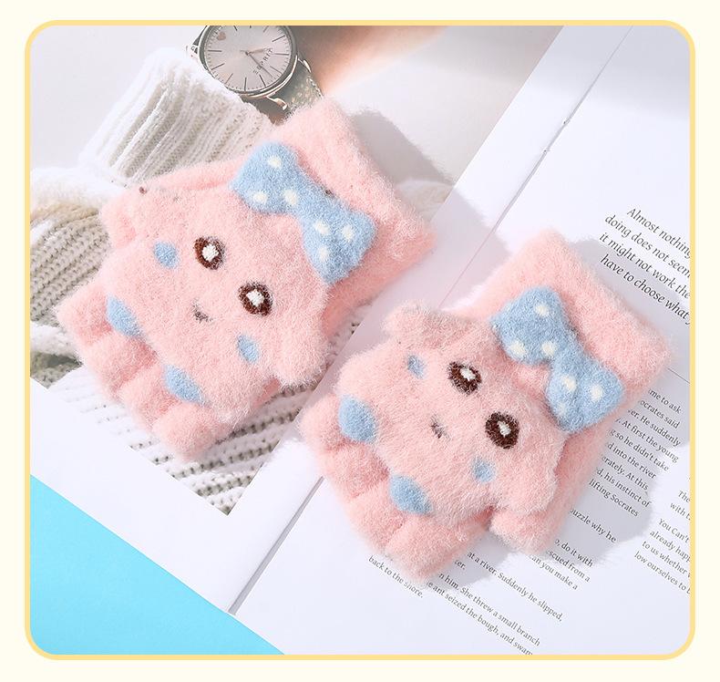 Guantes de cinco dedos con dibujos animados para niños, cálidos, gruesos y resistentes al frío, para escribir y andar en bicicleta, para otoño e invierno.