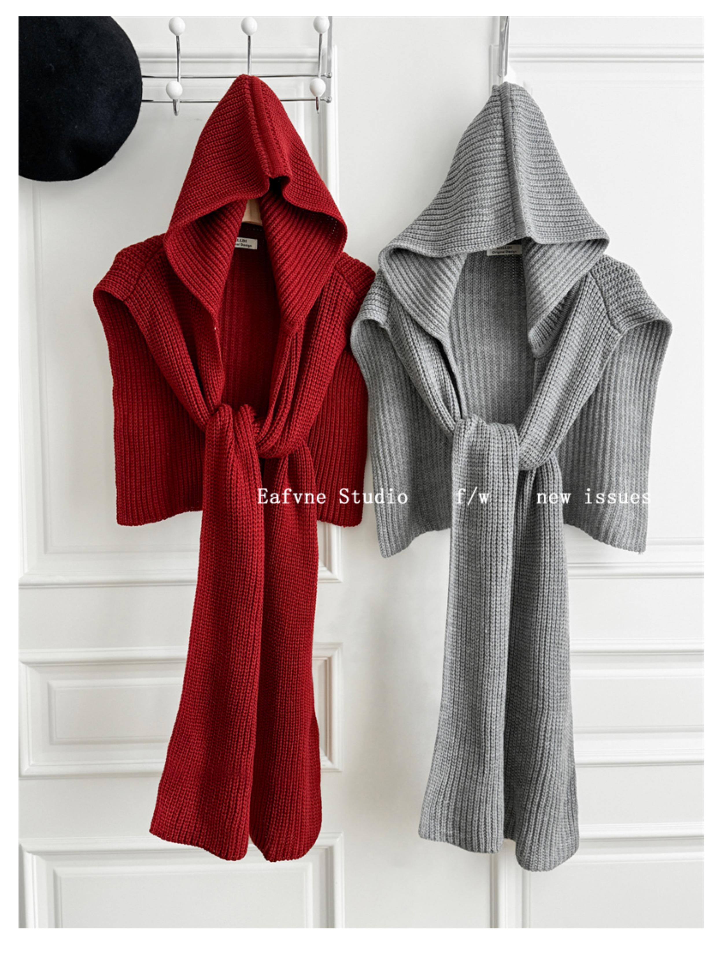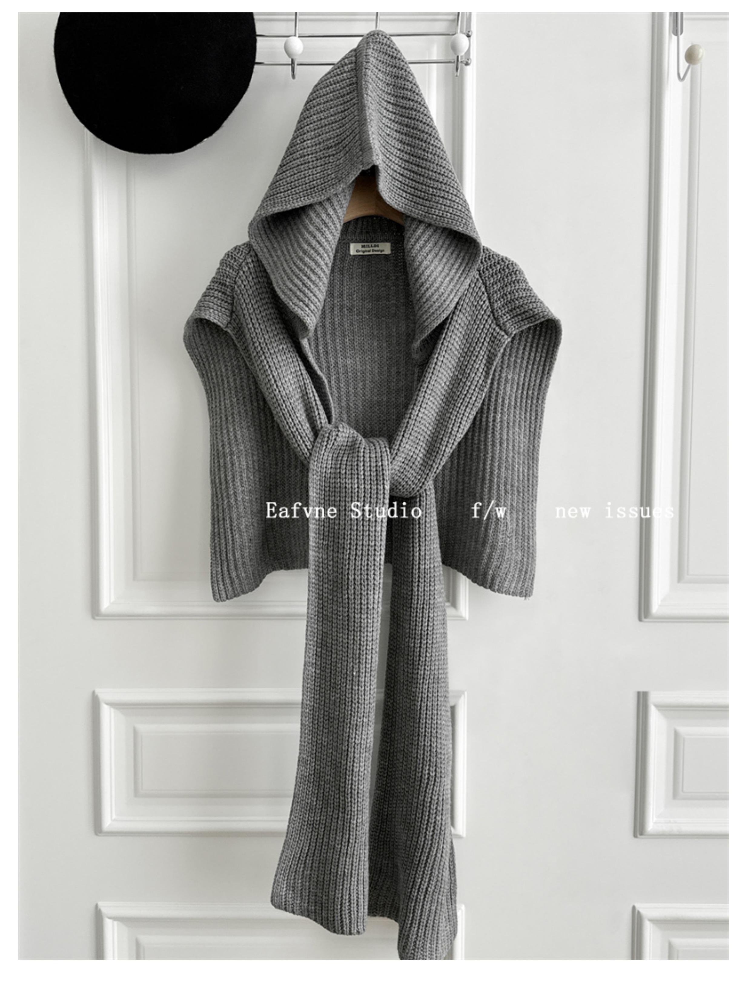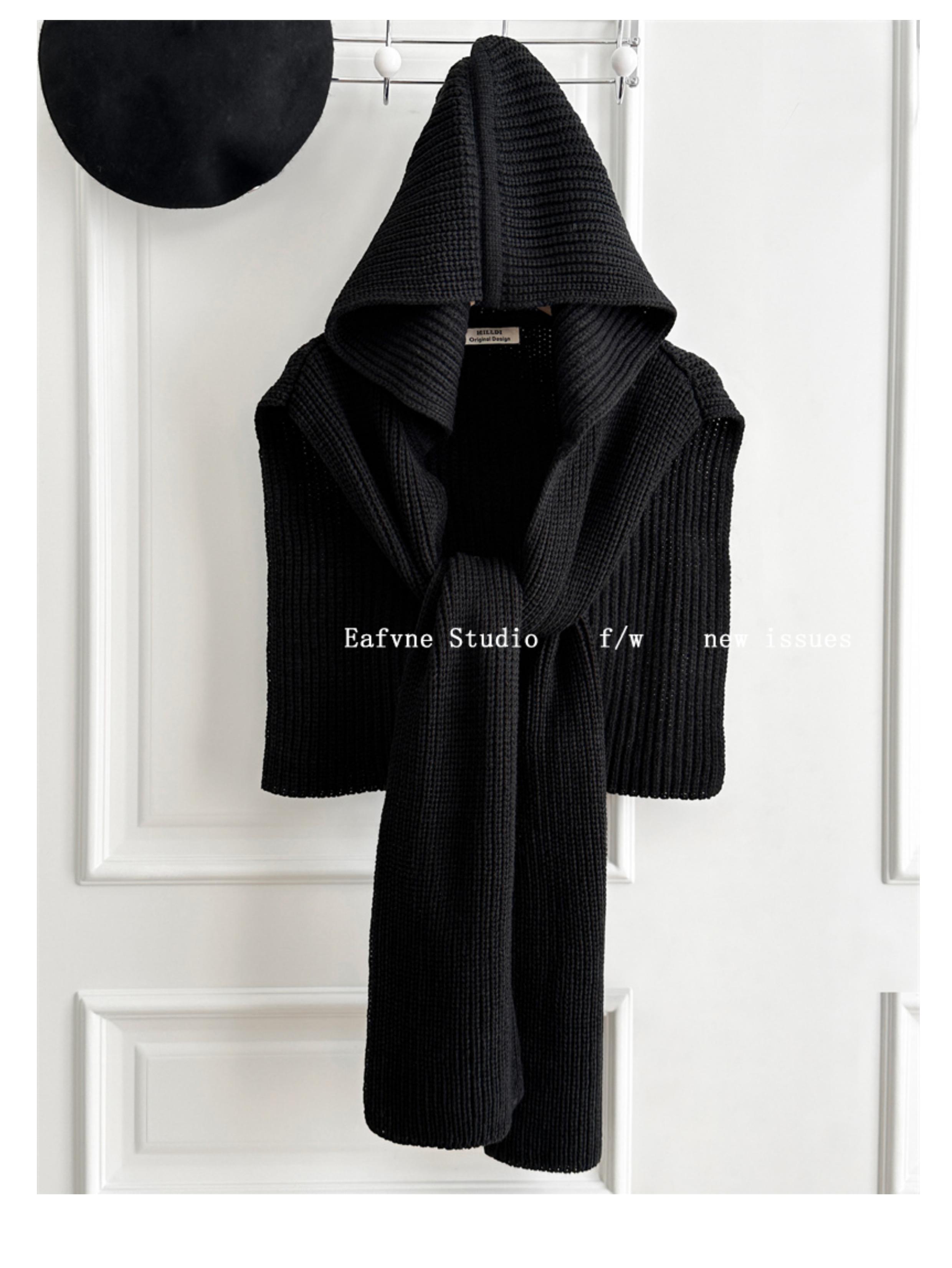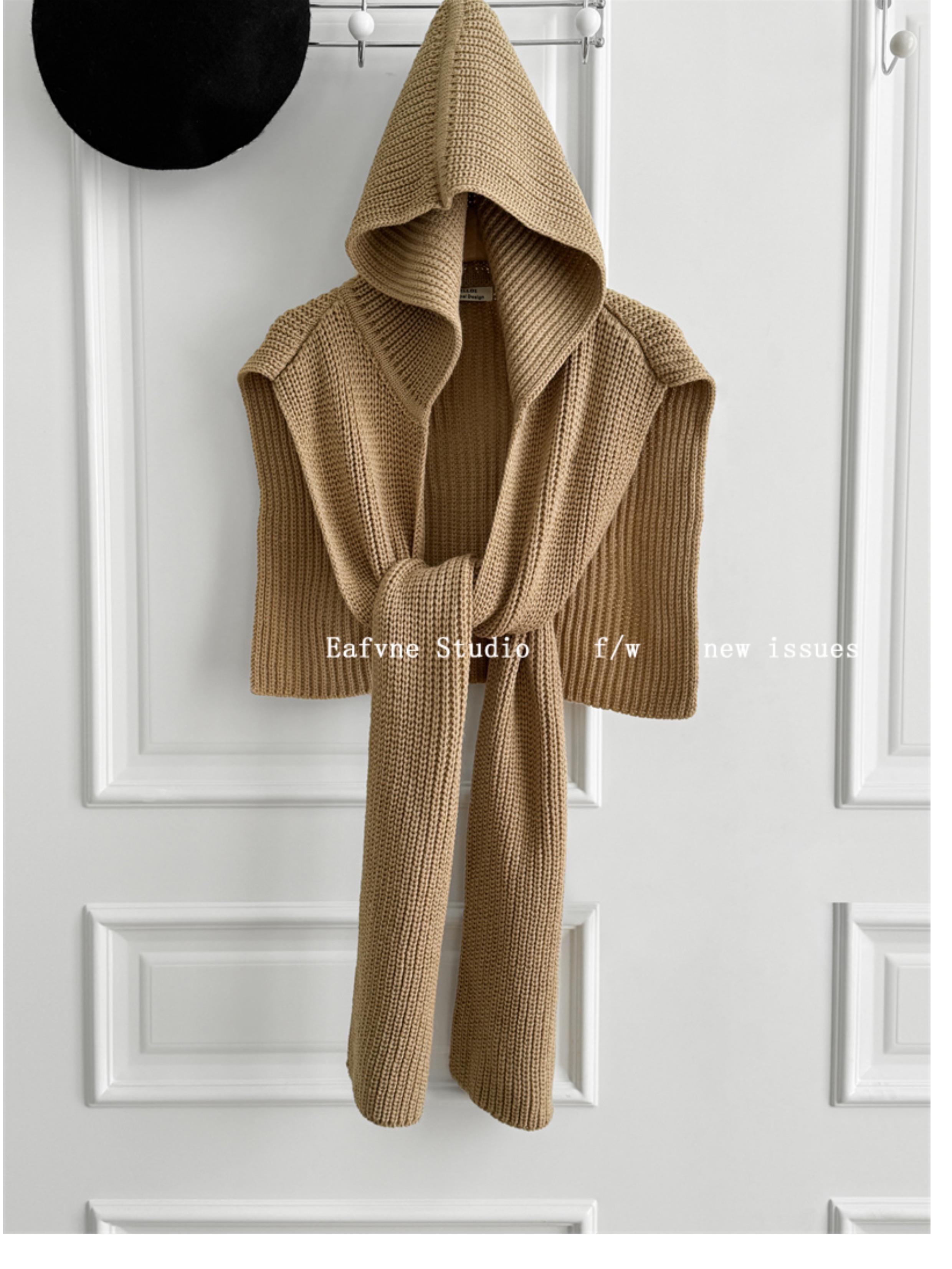 Feytiy Diseño de Lana Pesada Sentido de la Moda Chal Tejido con Capucha para Mujer Otoño e Invierno Cálido Combinable Ropa Exterior