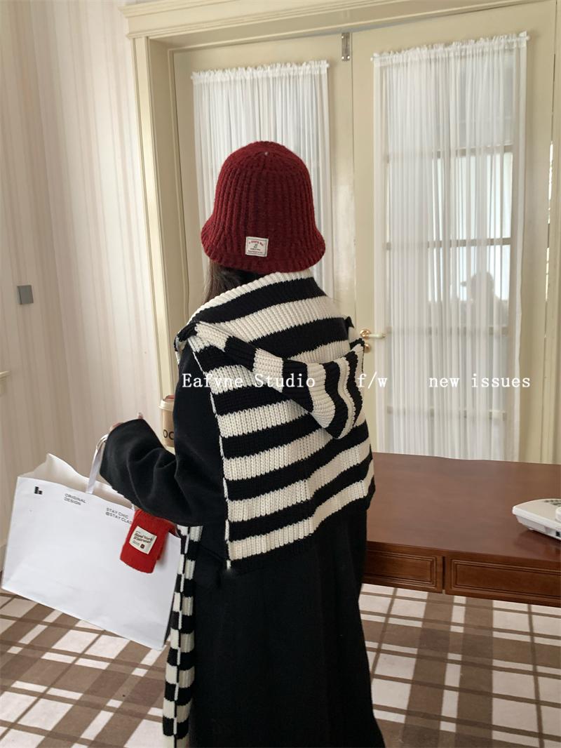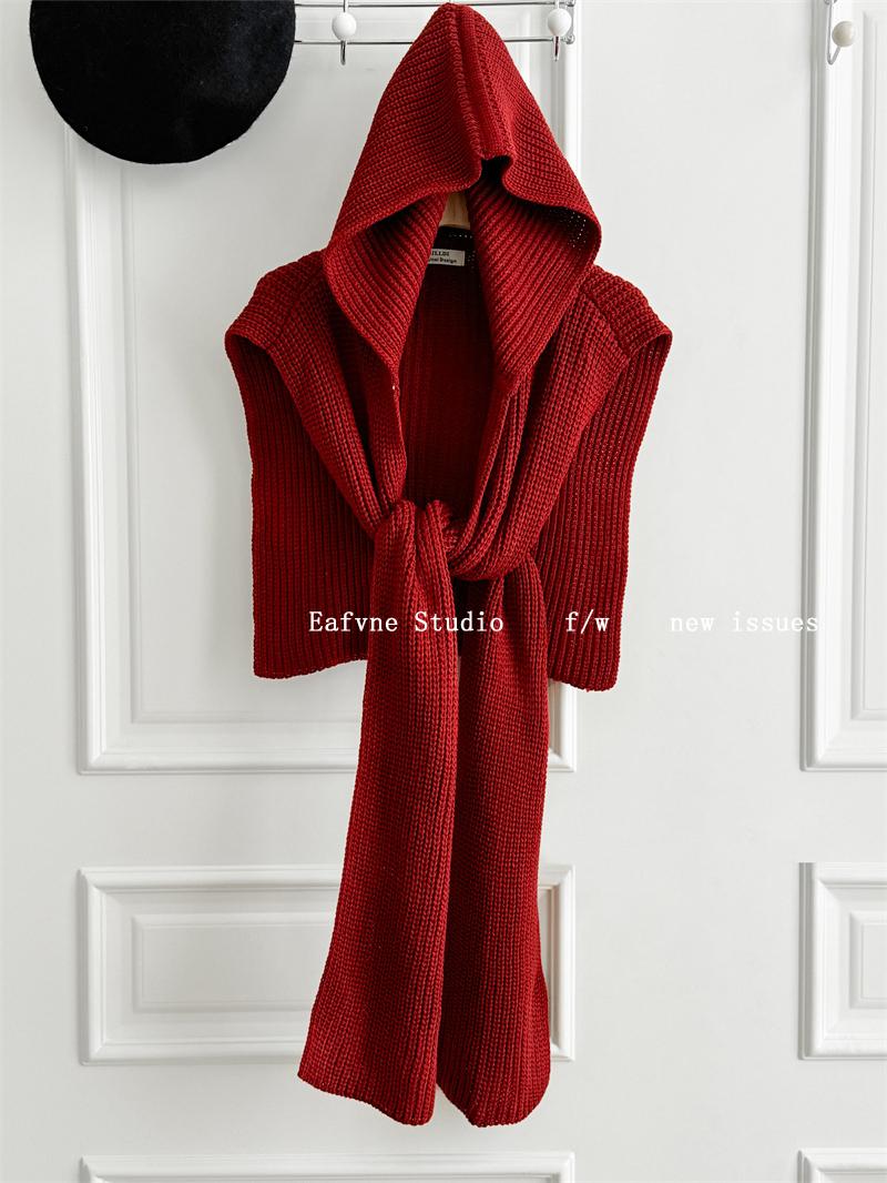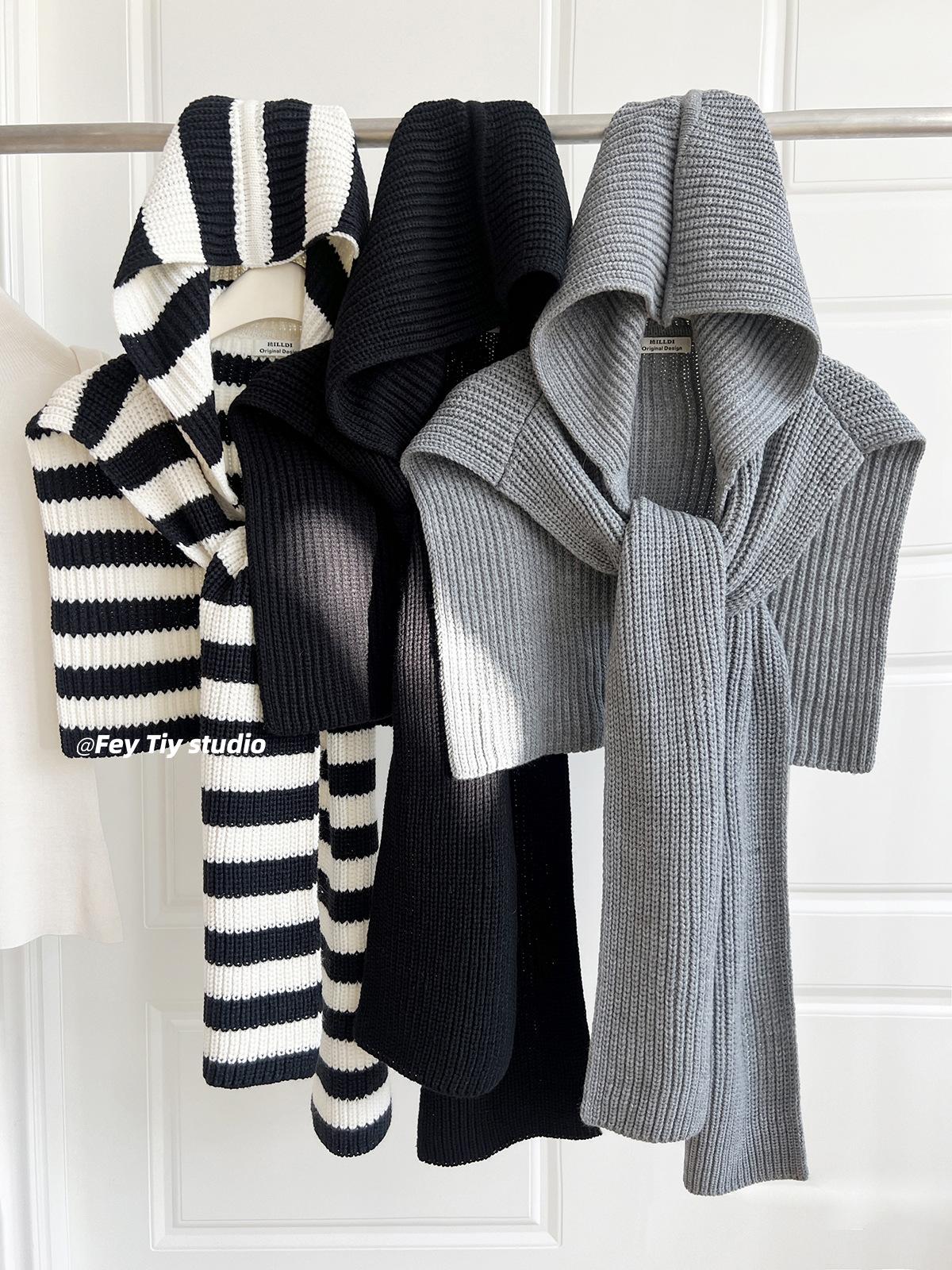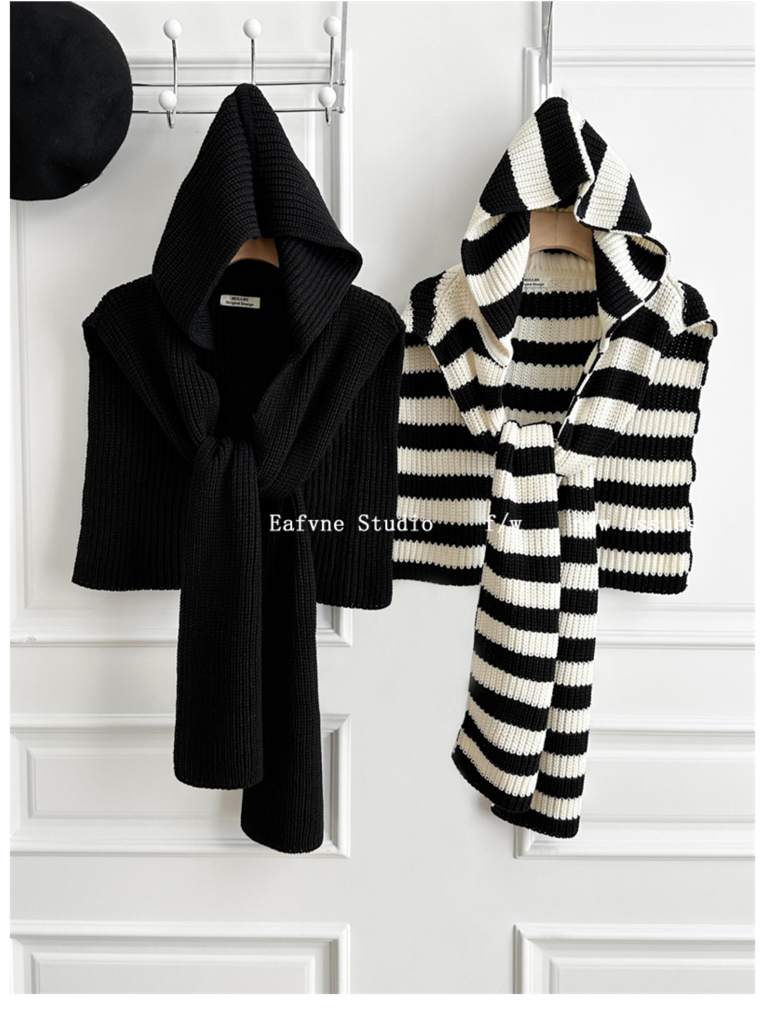 Feytiy Diseño de Lana Pesada Sentido de la Moda Chal Tejido con Capucha para Mujer Otoño e Invierno Cálido Combinable Ropa Exterior
