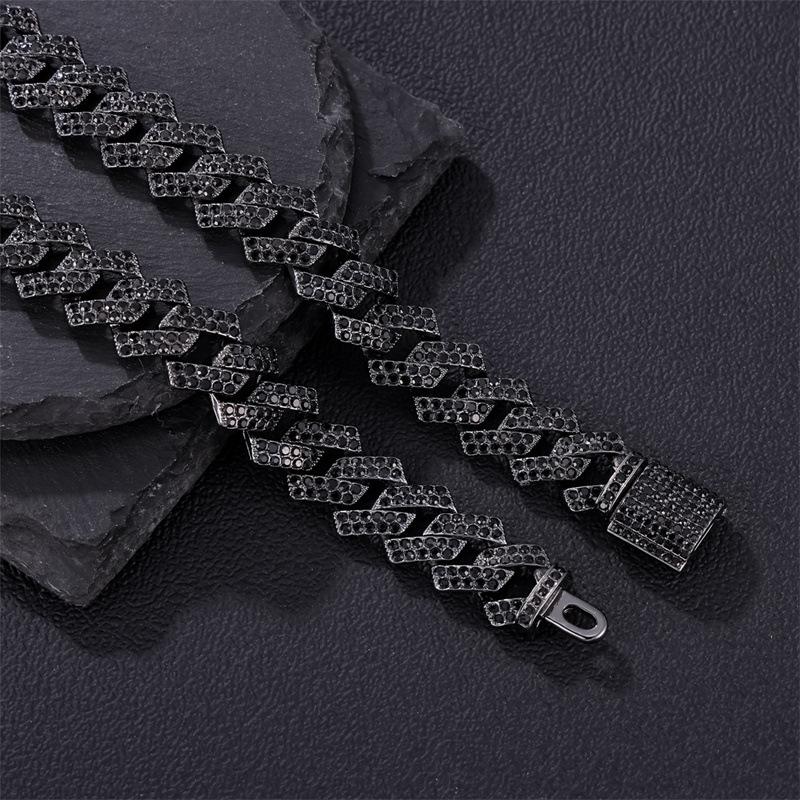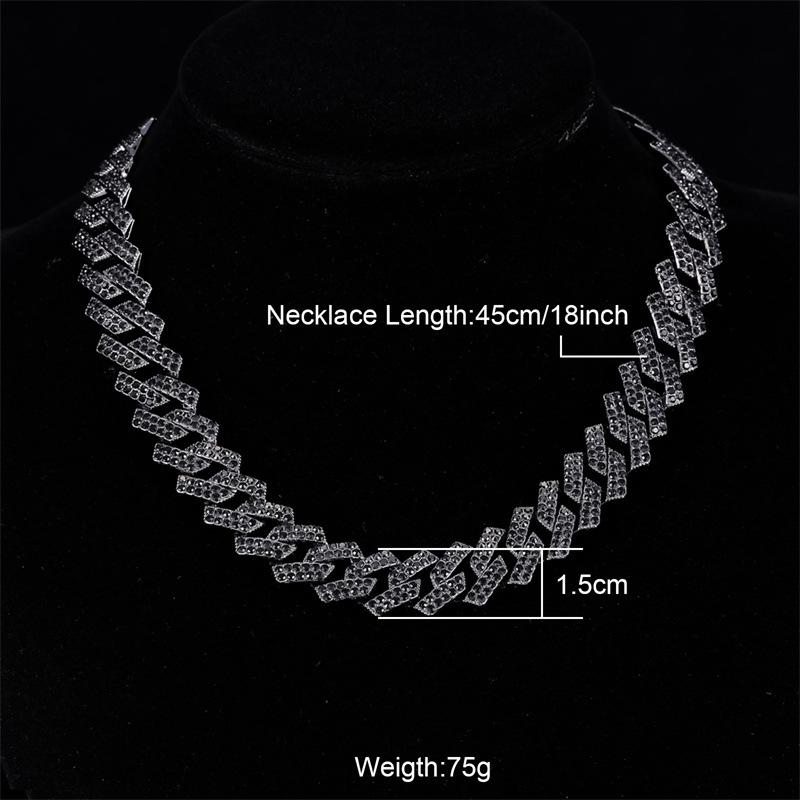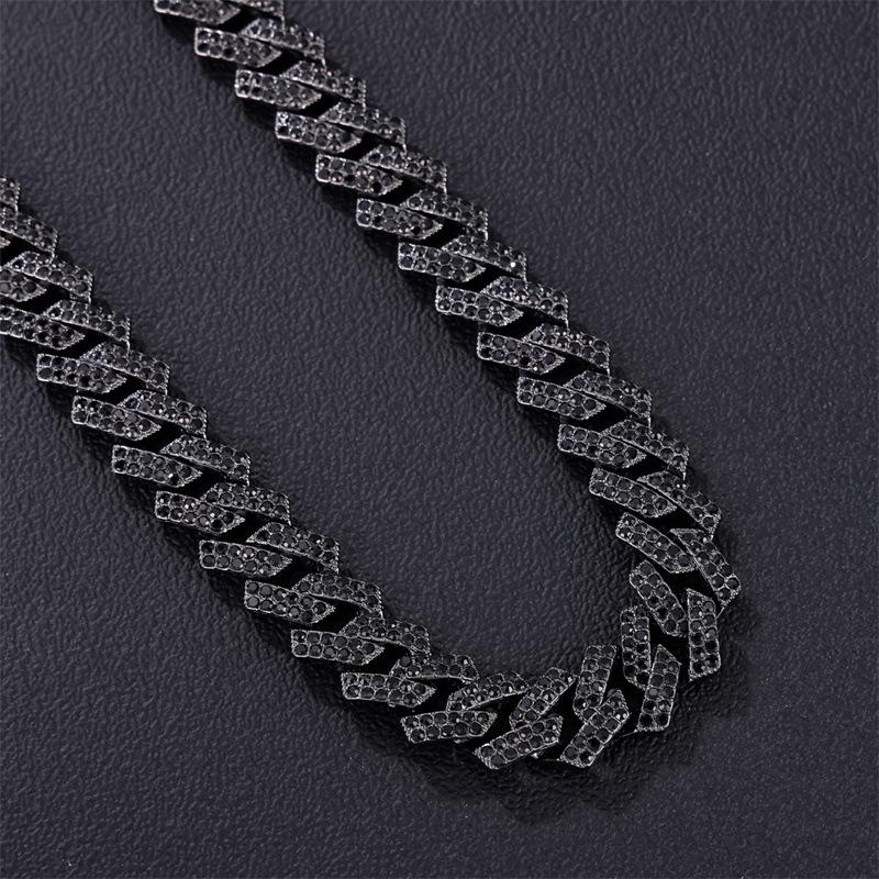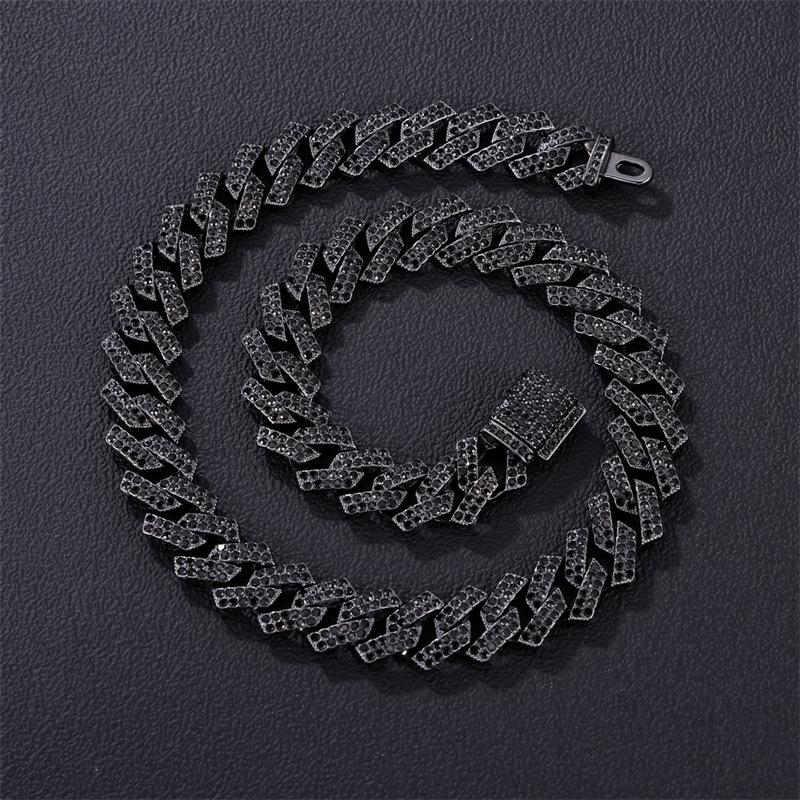 Collar de cadena cubana de diamantes de 15 mm con circonita negra para hombre, estilo hip hop europeo y americano, personalizado, de marca de moda.