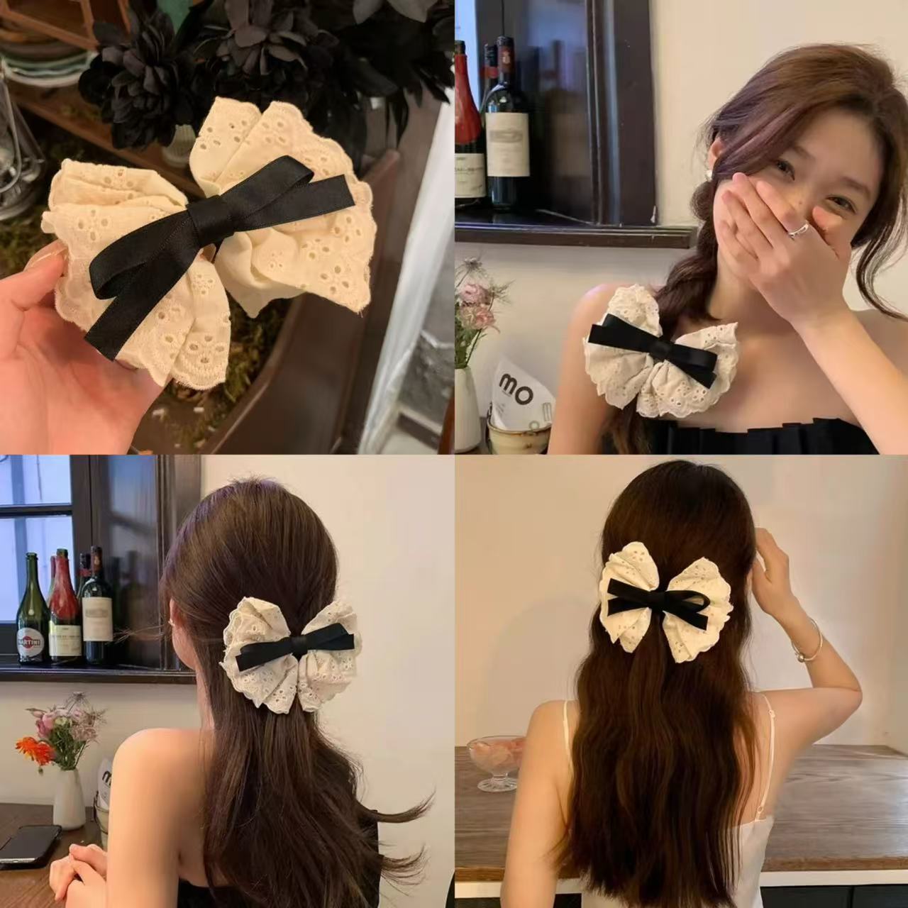 Horquilla de pelo con lazo de encaje blanco suave de estilo francés para mujer, con clip de resorte para la parte posterior de la cabeza, elegante horquilla, accesorio para el cabello, tocado.