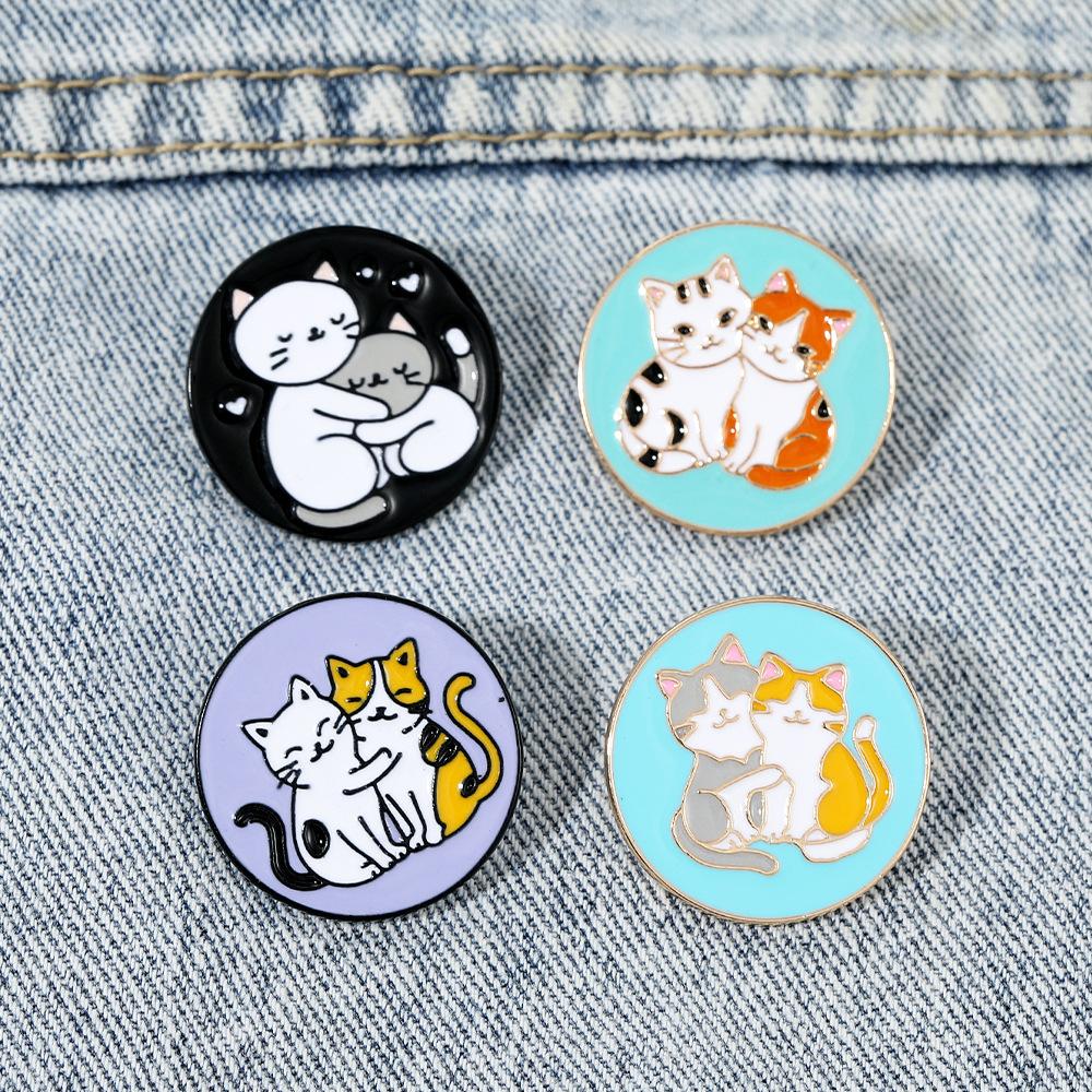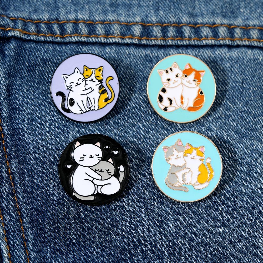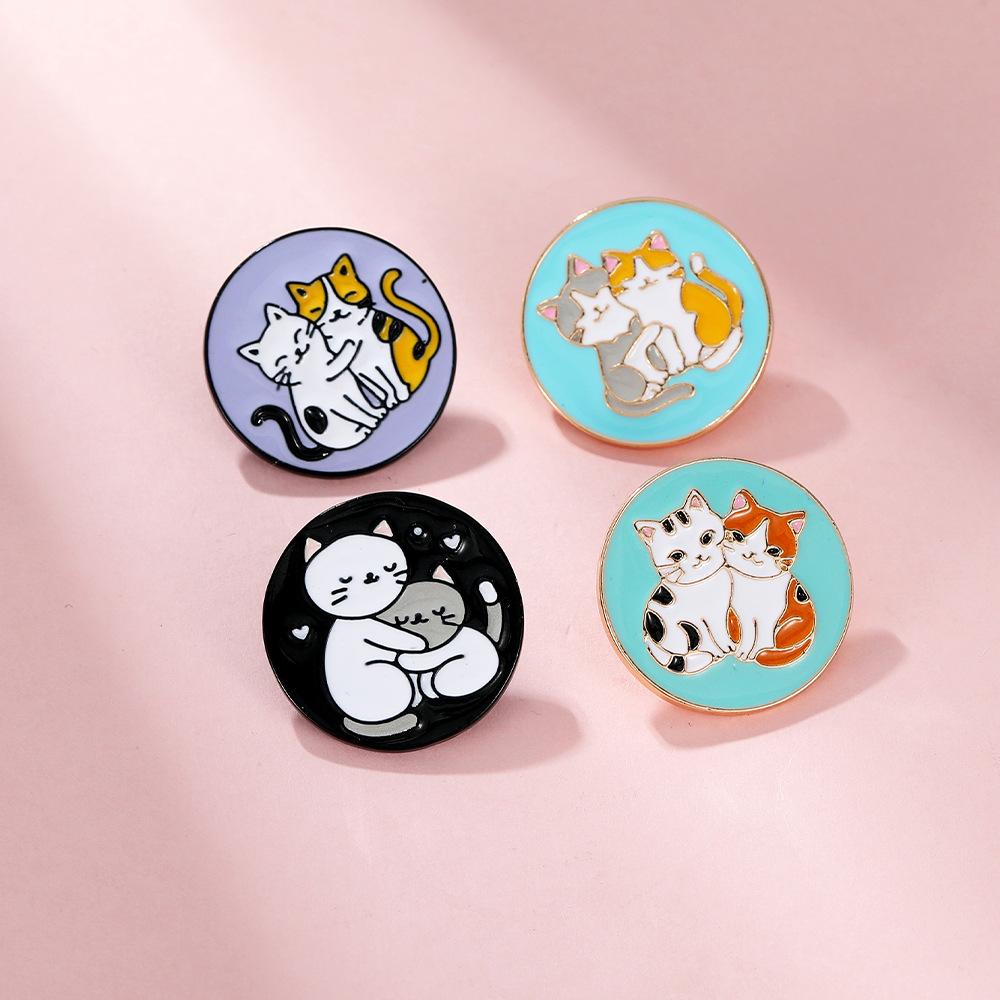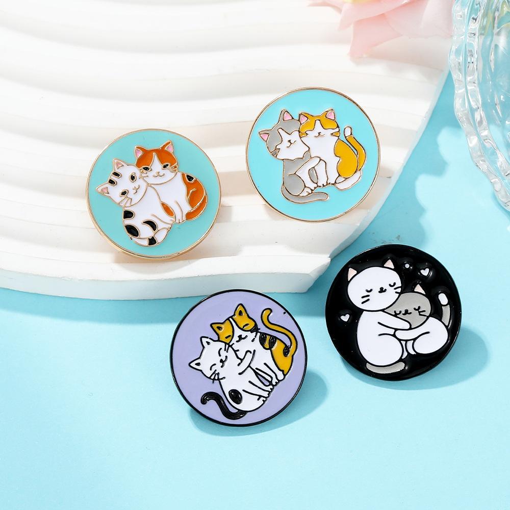 Europa y Estados Unidos broche redondo pequeño de animales transfronterizo gato insignia de metal accesorios de ropa insignia pin de solapa ramillete antiluz