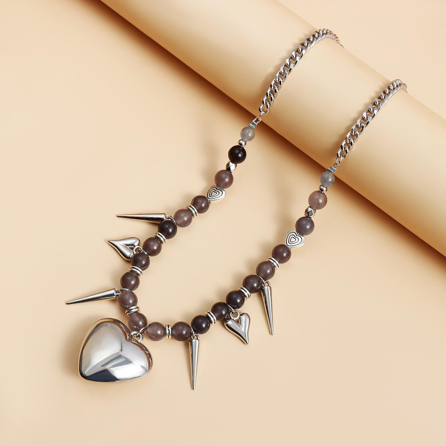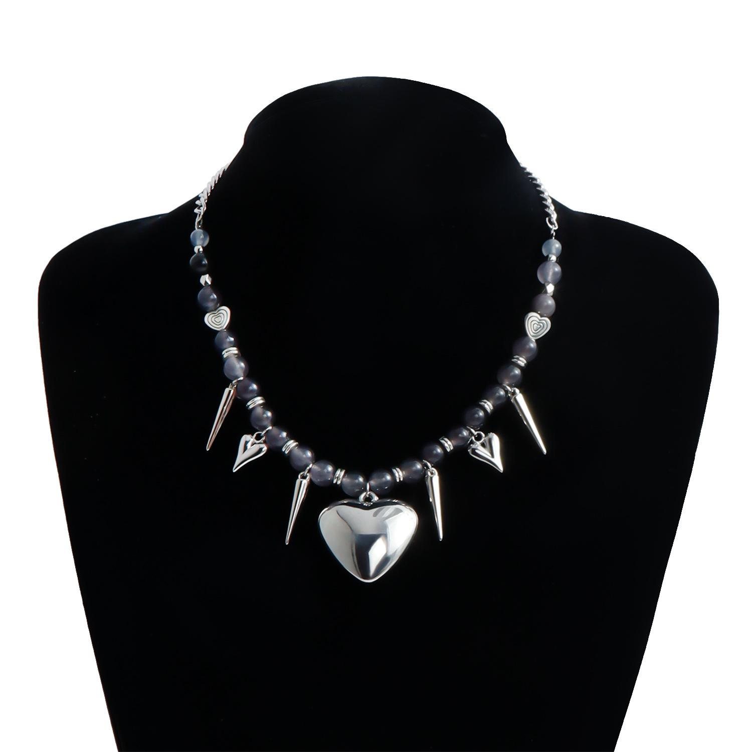 Collar de moda de lujo con colgante de corazón exagerado con costura de ópalo y cadena de clavícula, joyería transfronteriza entre Europa y Estados Unidos