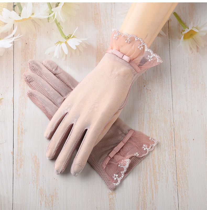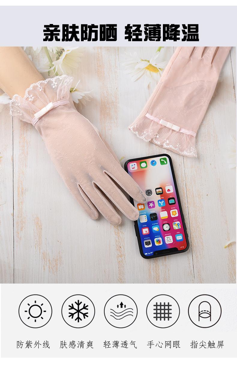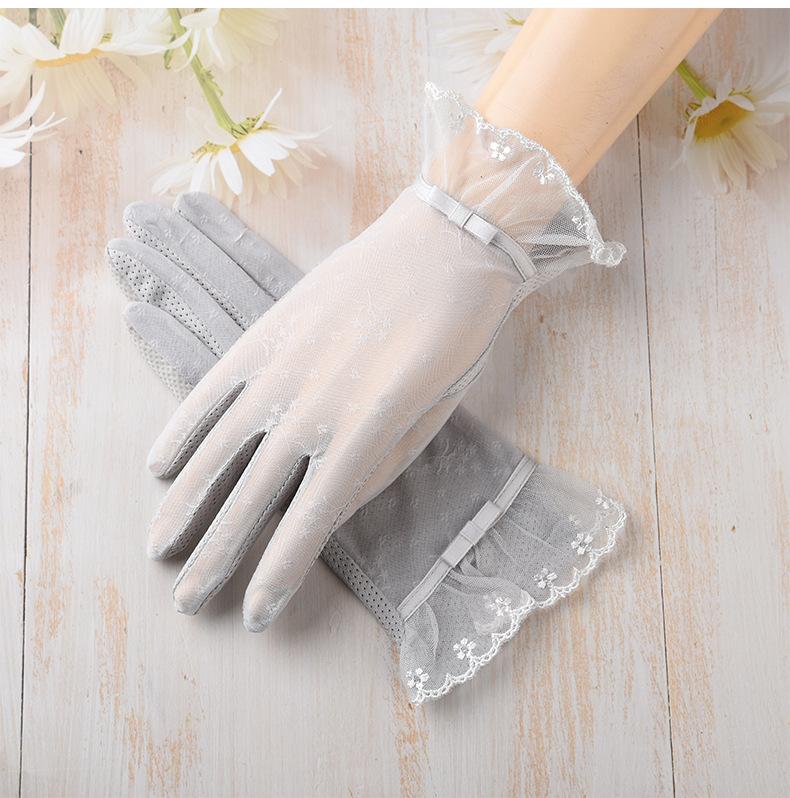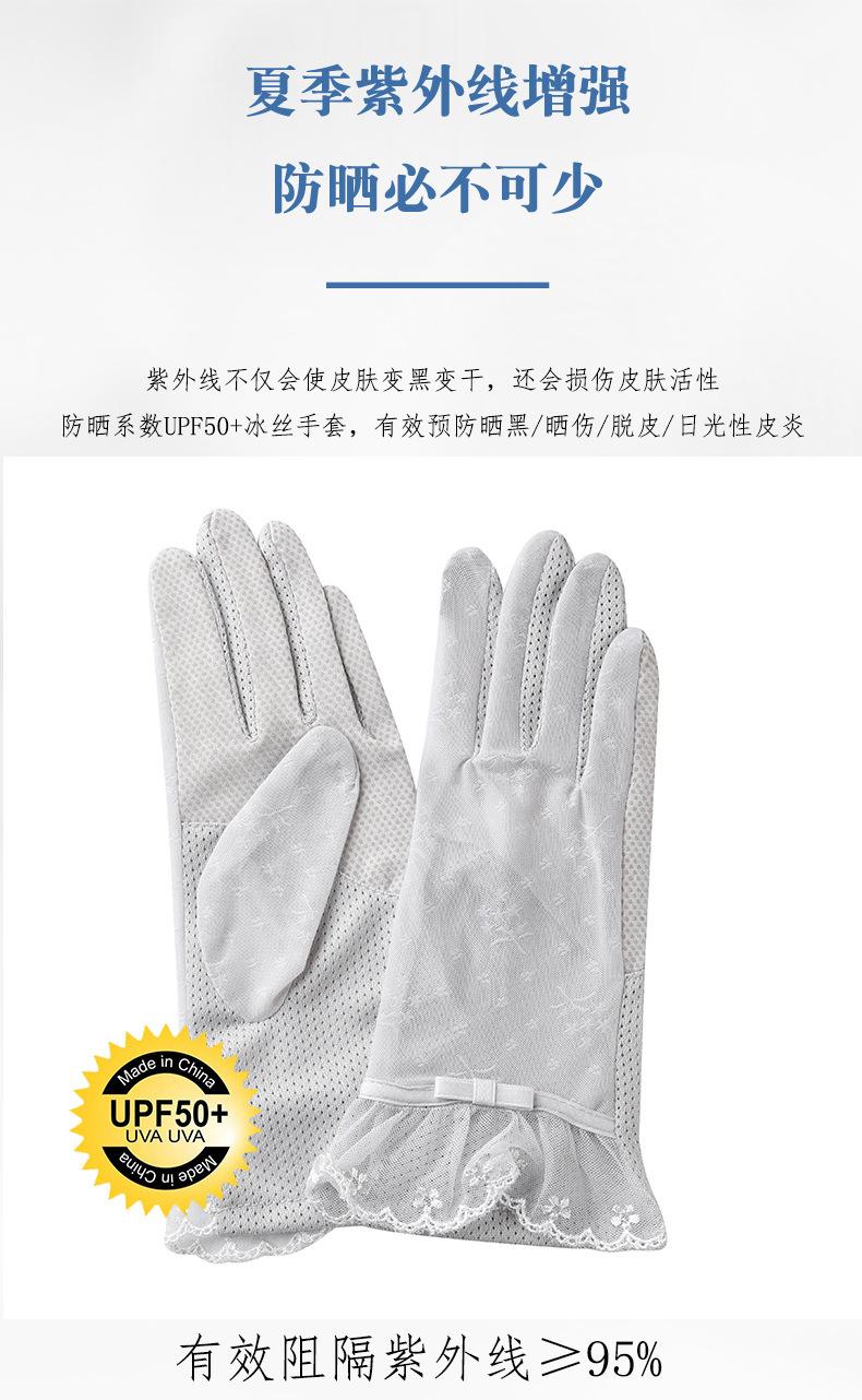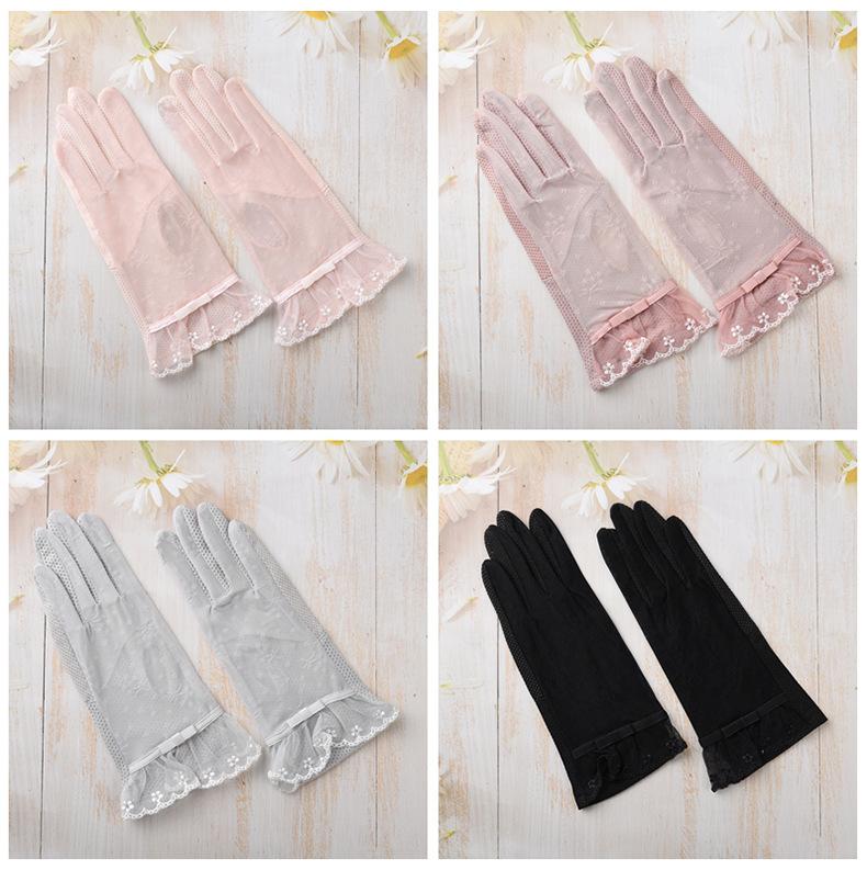 Nuevos guantes de protección solar de verano para mujer, de seda de hielo, finos, con encaje para pantalla táctil, protección UV, para ciclismo al aire libre, venta al por mayor de fábrica
