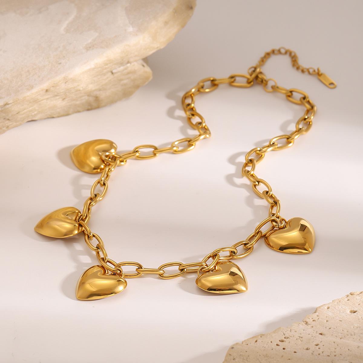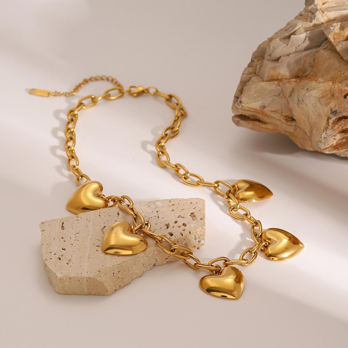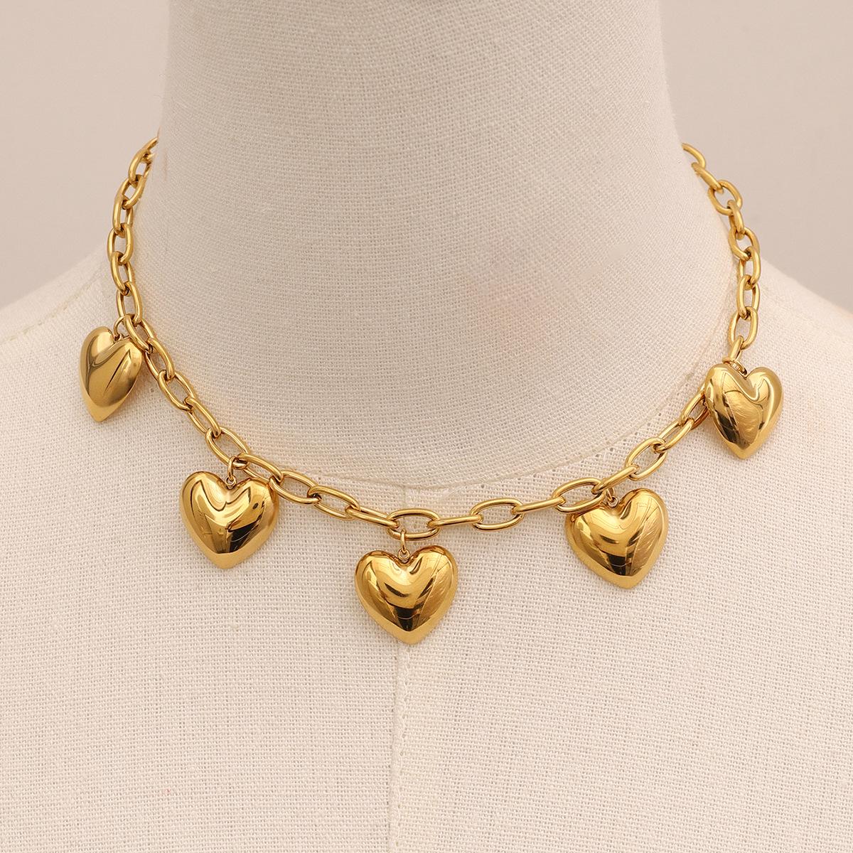 Collar con colgante de amor de acero inoxidable europeo y americano Jingqiao, collar retro de acero de titanio y metal para mujer, collar con cadena de clavícula con borde cruzado