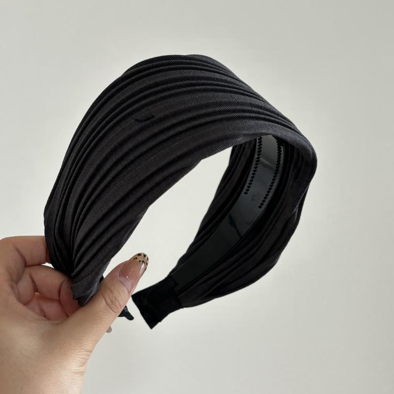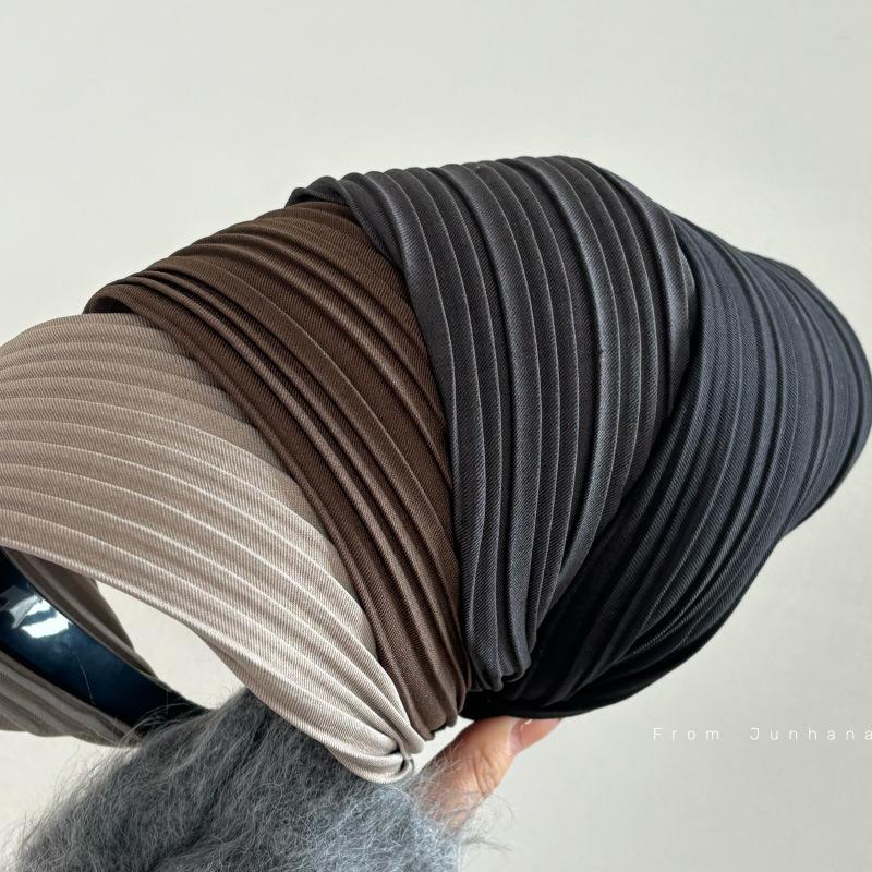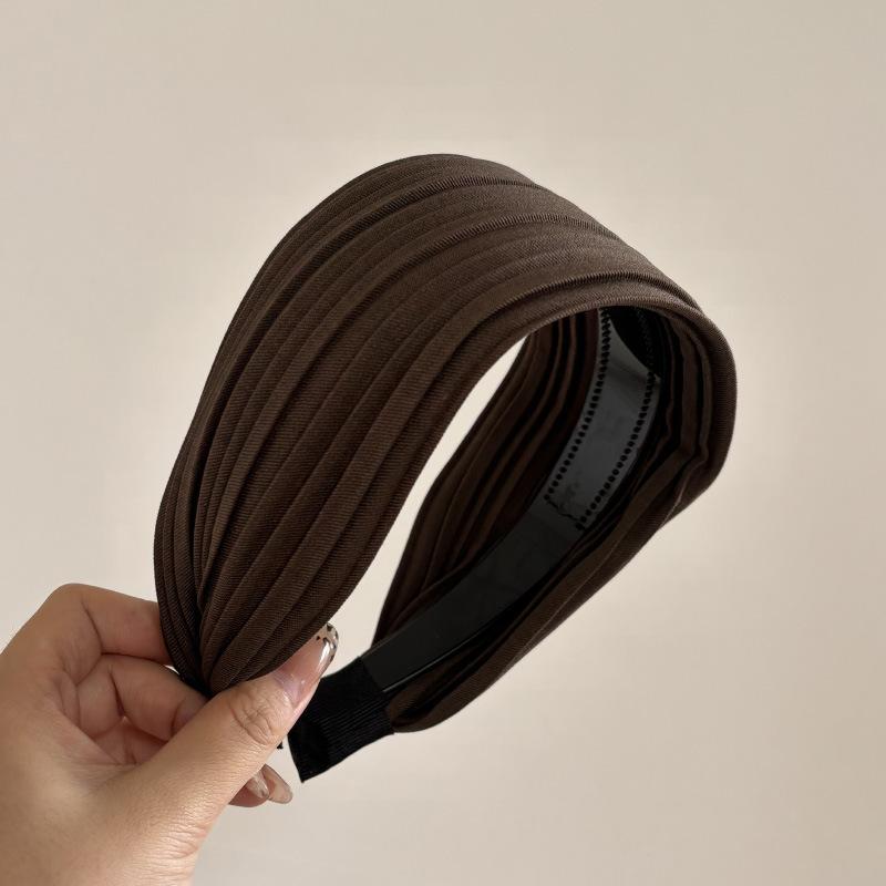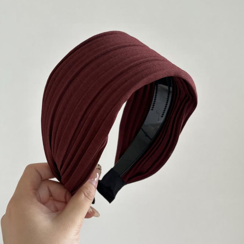 Aro para el pelo de satén plisado, ancho y sencillo, marrón, elegante, estilo retro, para internet, rojo, para blogger, accesorios para el pelo del mismo estilo