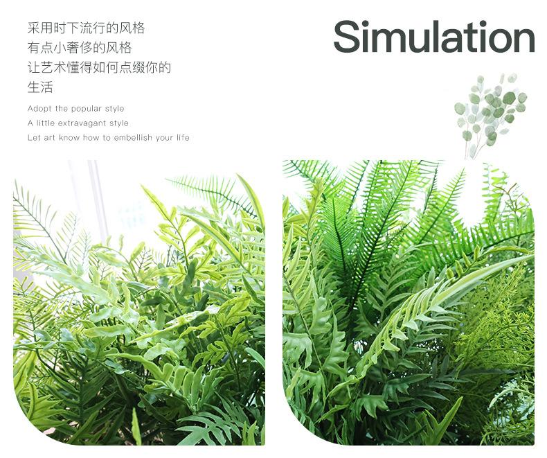 Helecho de tacto suave con pegamento, hierba falsa, hojas de hierba, planta verde, planta forestal de interior, arreglo floral de esquina para decoración de paisajes