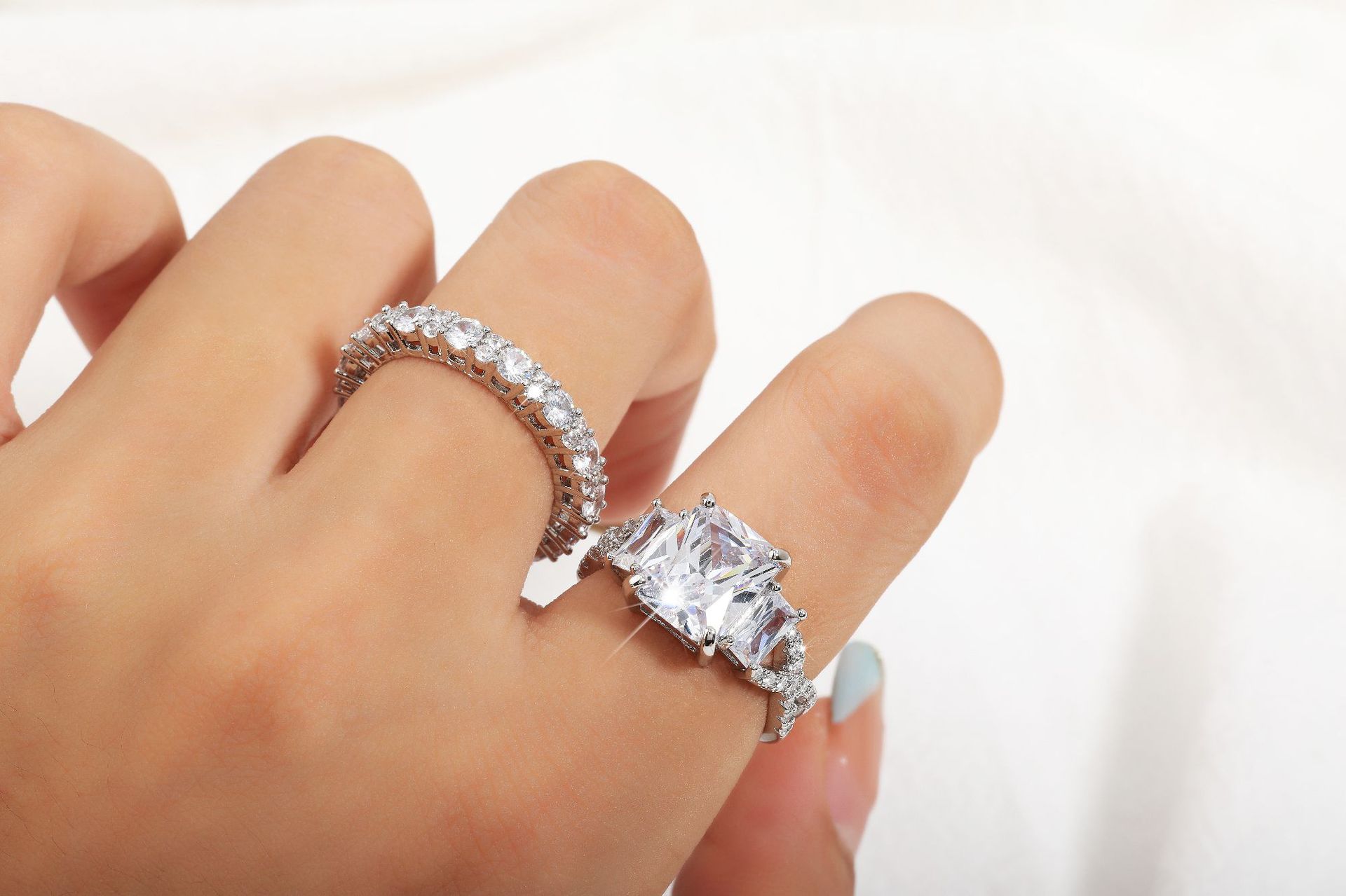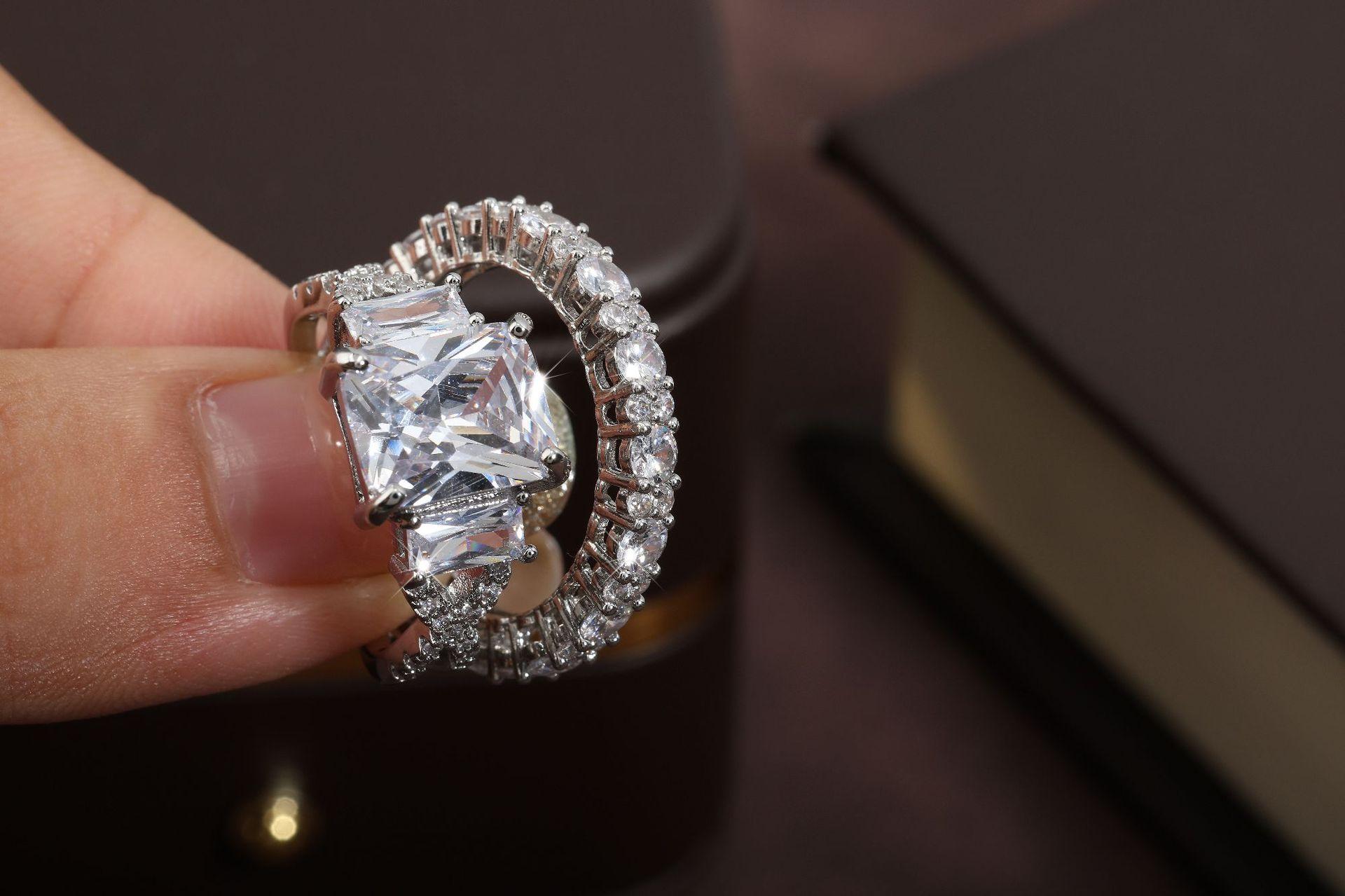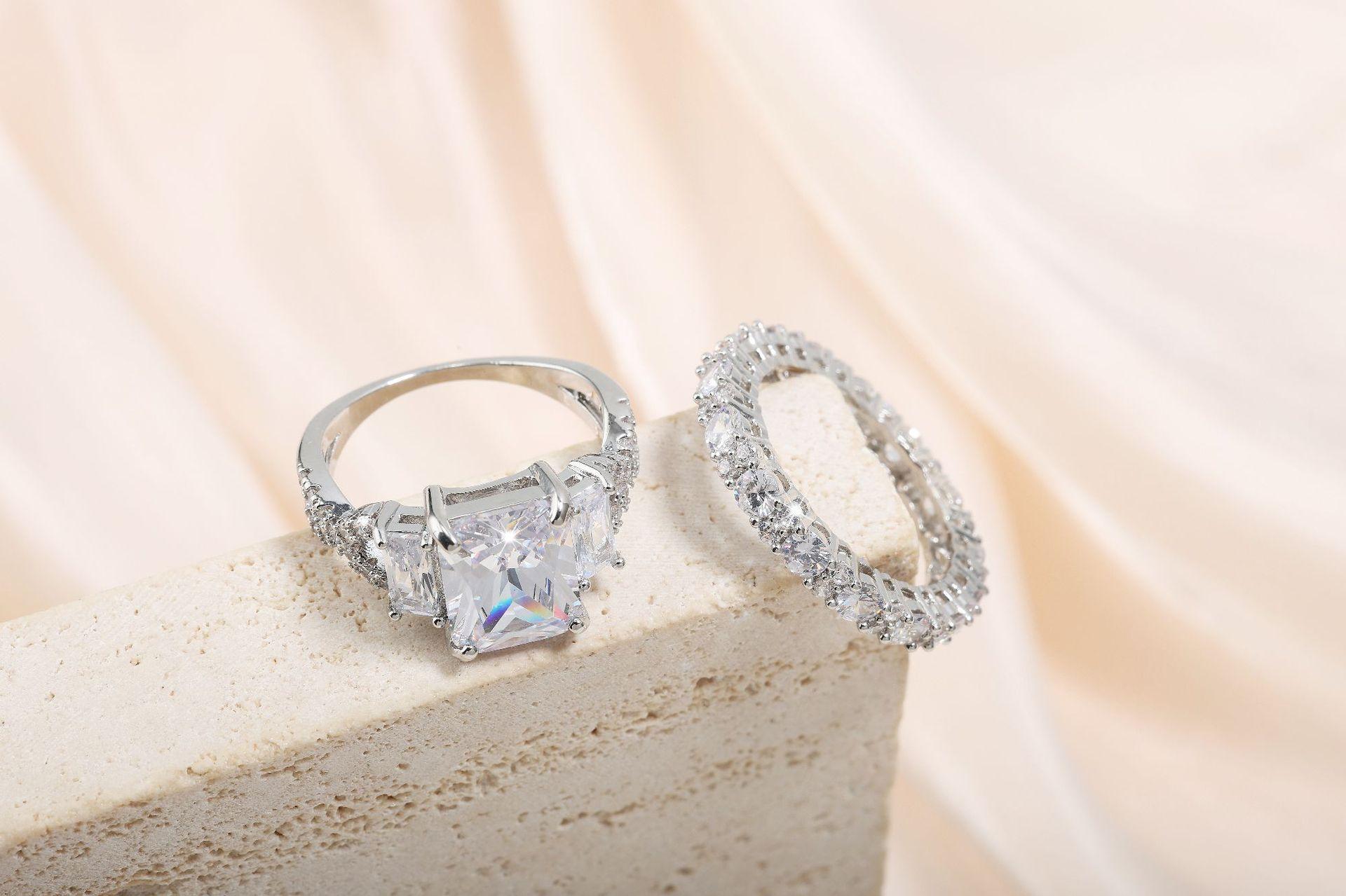Rakol Moda Transfronteriza Anillo de Diamantes Zircón AAA Cuadrado Zircón de Cuatro Garras Conjunto de Dos Piezas Anillo de Diamantes Completo Joyería para Mujer