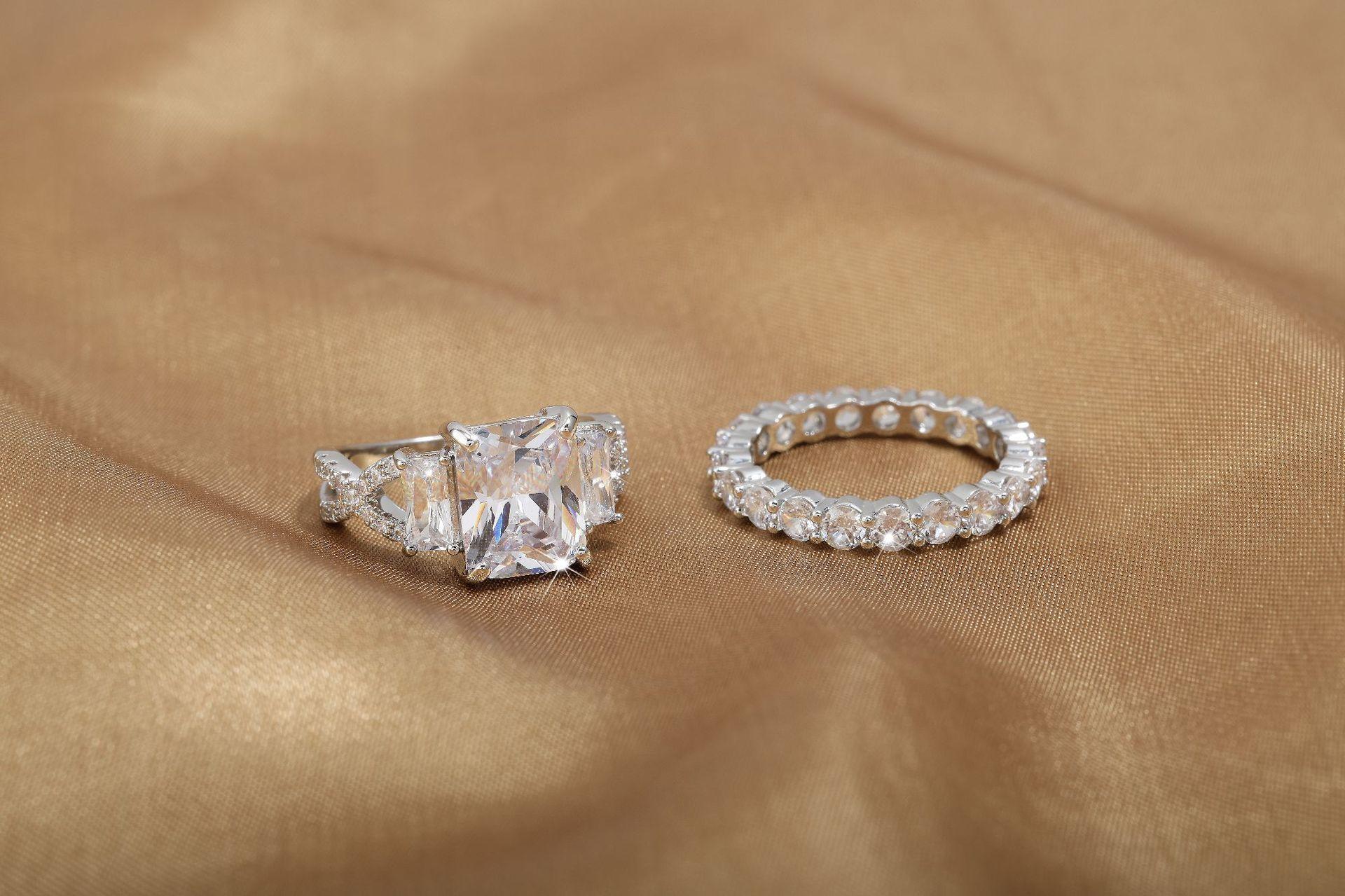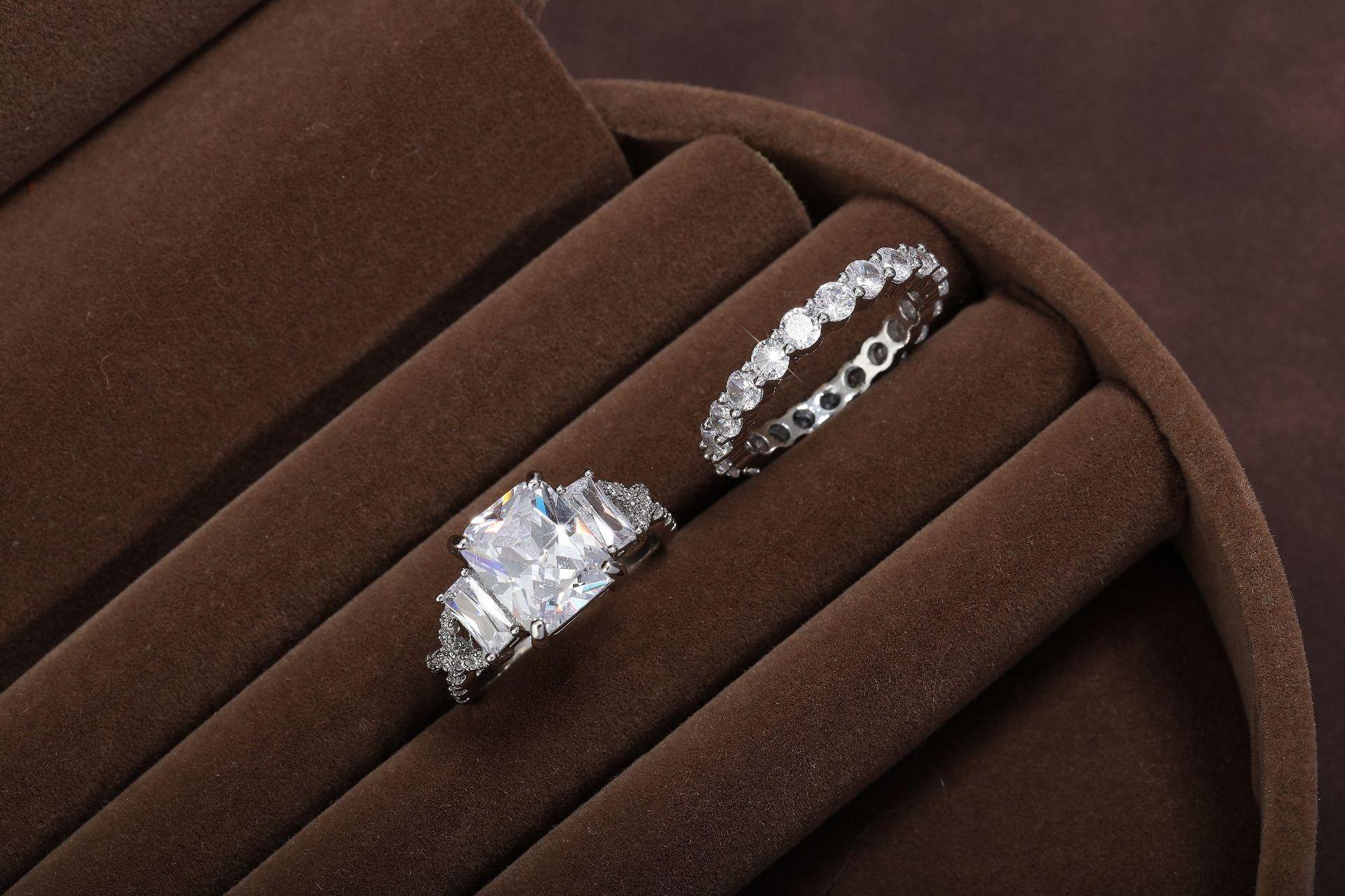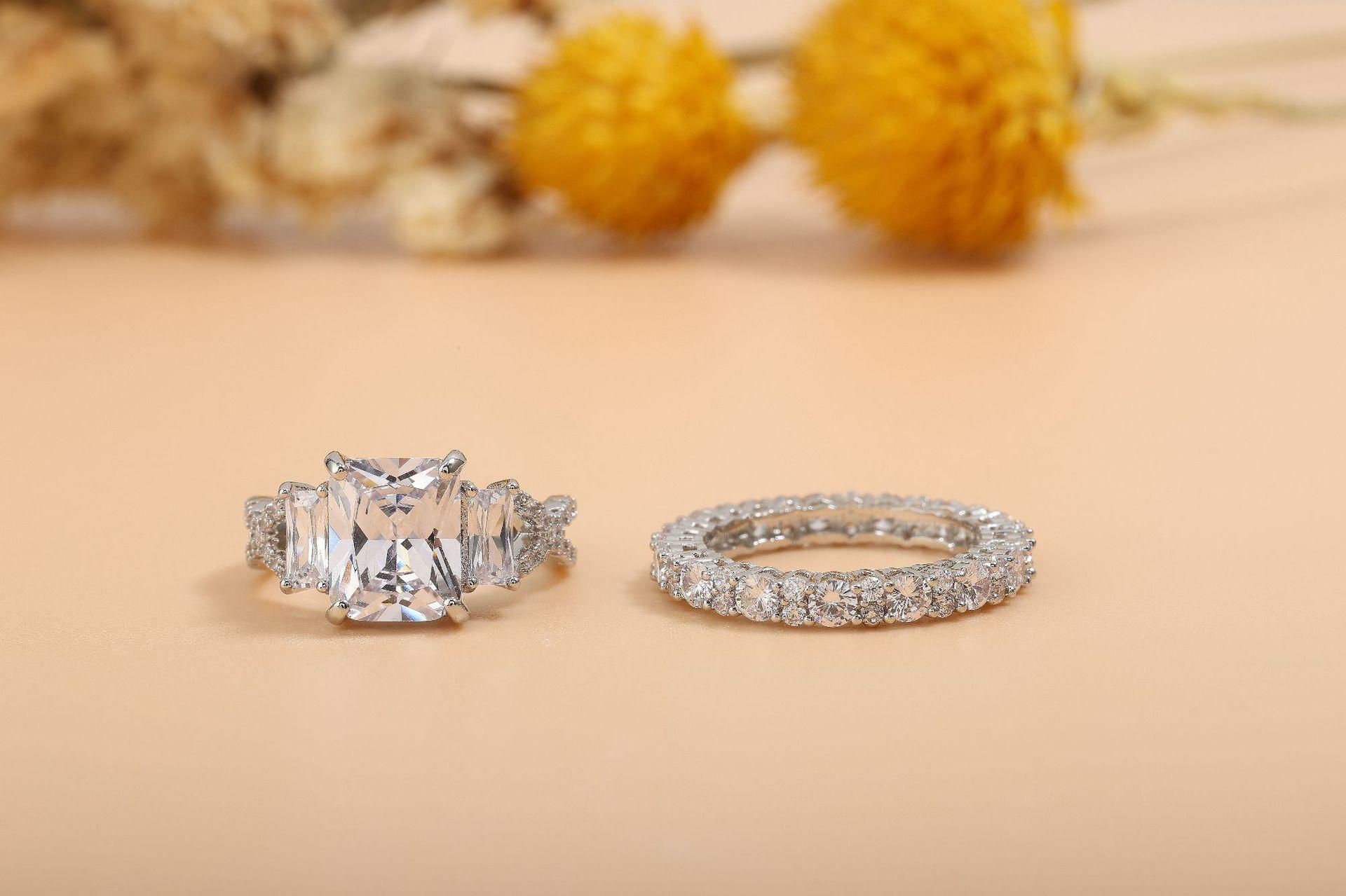 Rakol Moda Transfronteriza Anillo de Diamantes Zircón AAA Cuadrado Zircón de Cuatro Garras Conjunto de Dos Piezas Anillo de Diamantes Completo Joyería para Mujer
