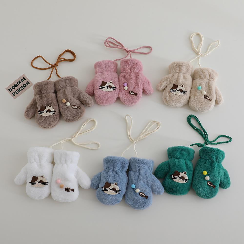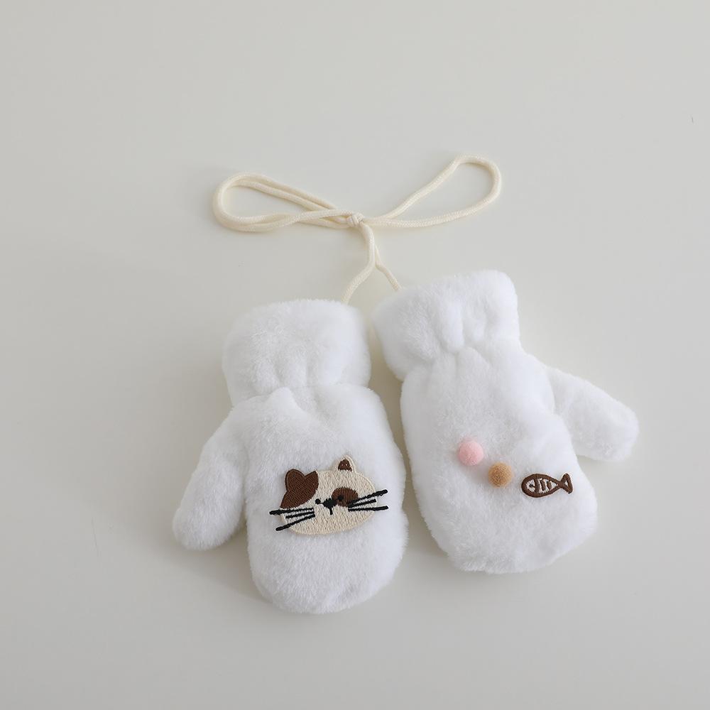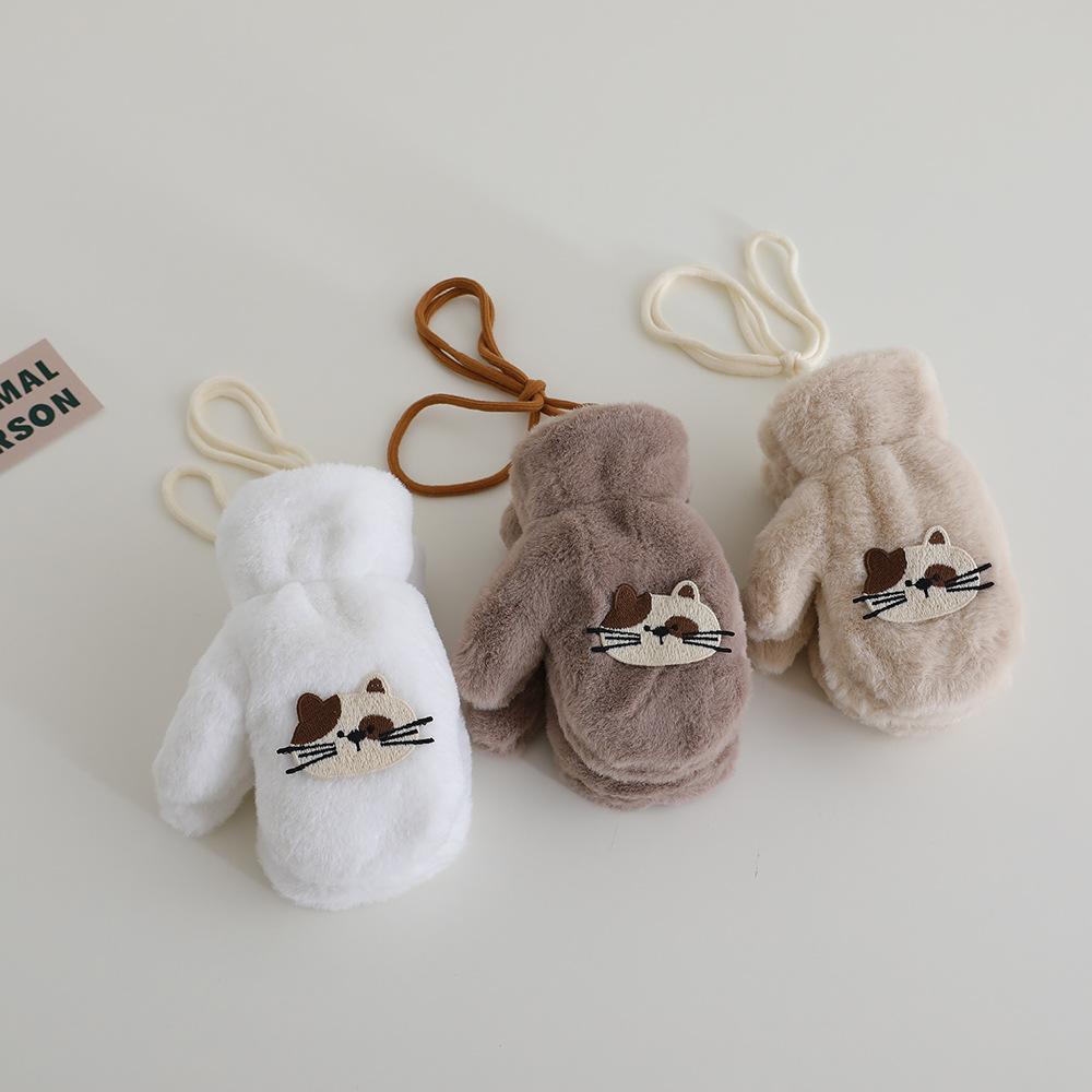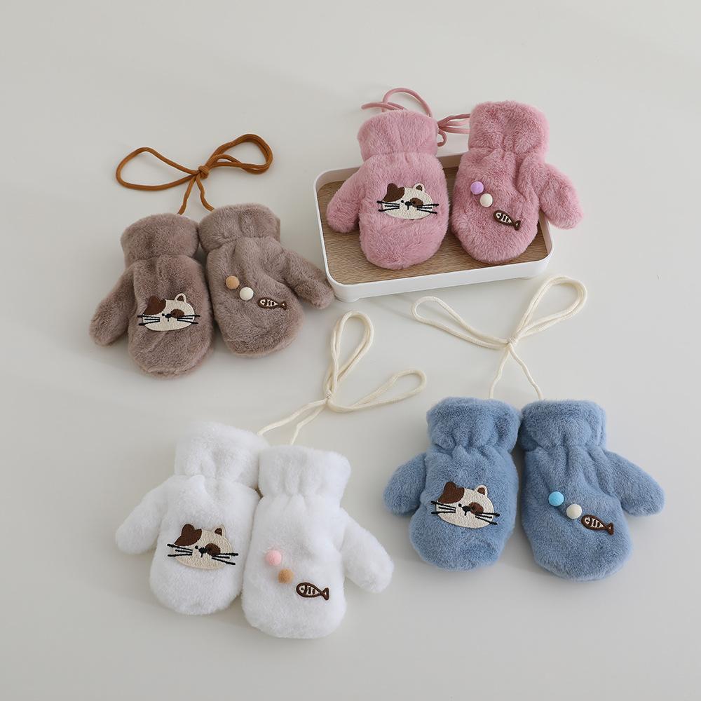 Guantes de invierno para niños, cálidos, forrados de vellón, con bonitos dibujos animados, para el cuello y los dedos, para niños y niñas, resistentes al frío, de felpa, para otoño e invierno.