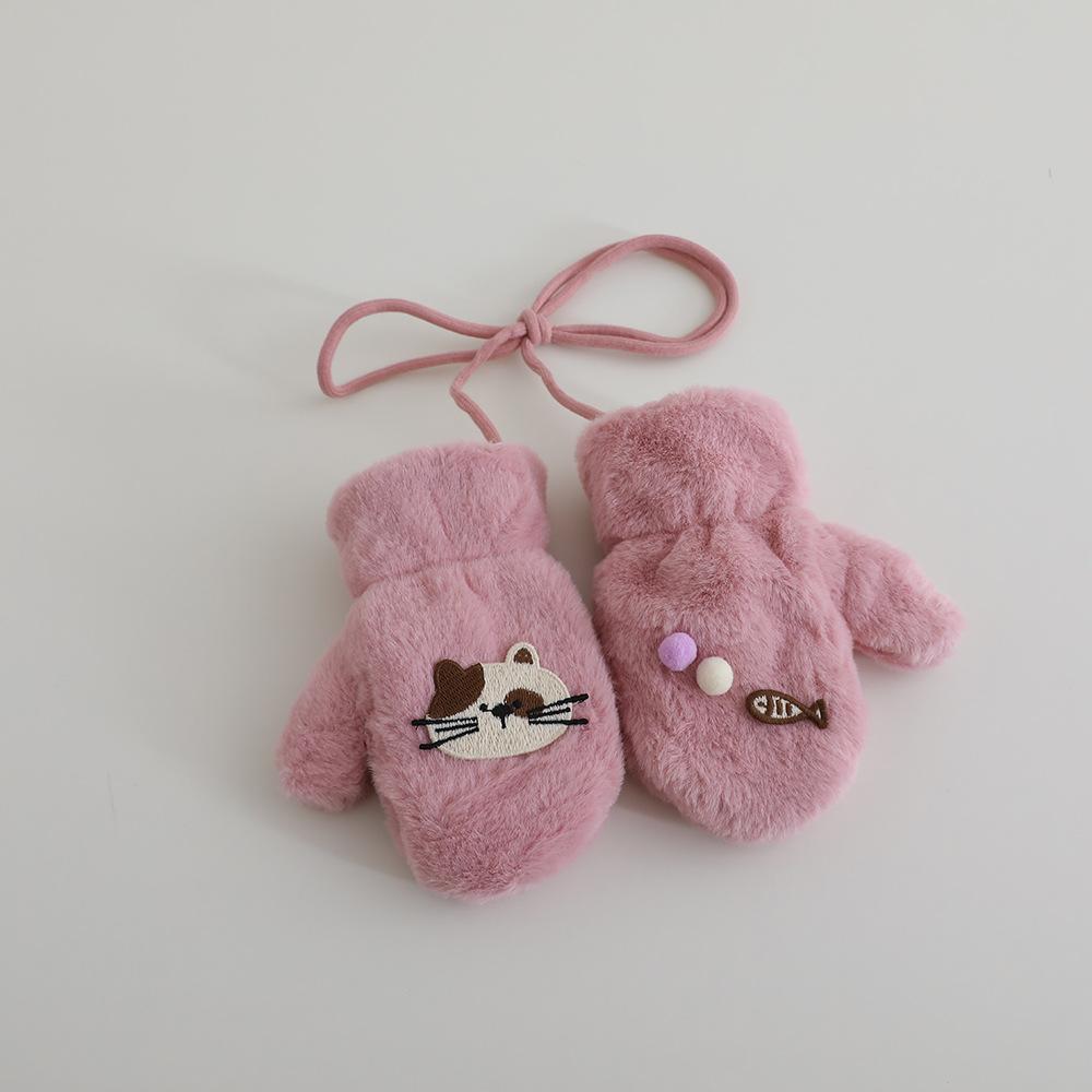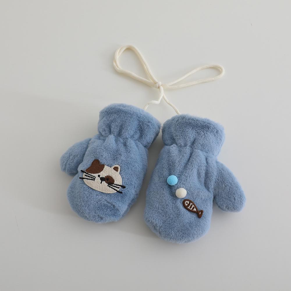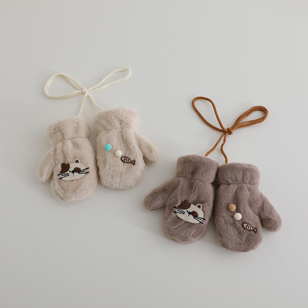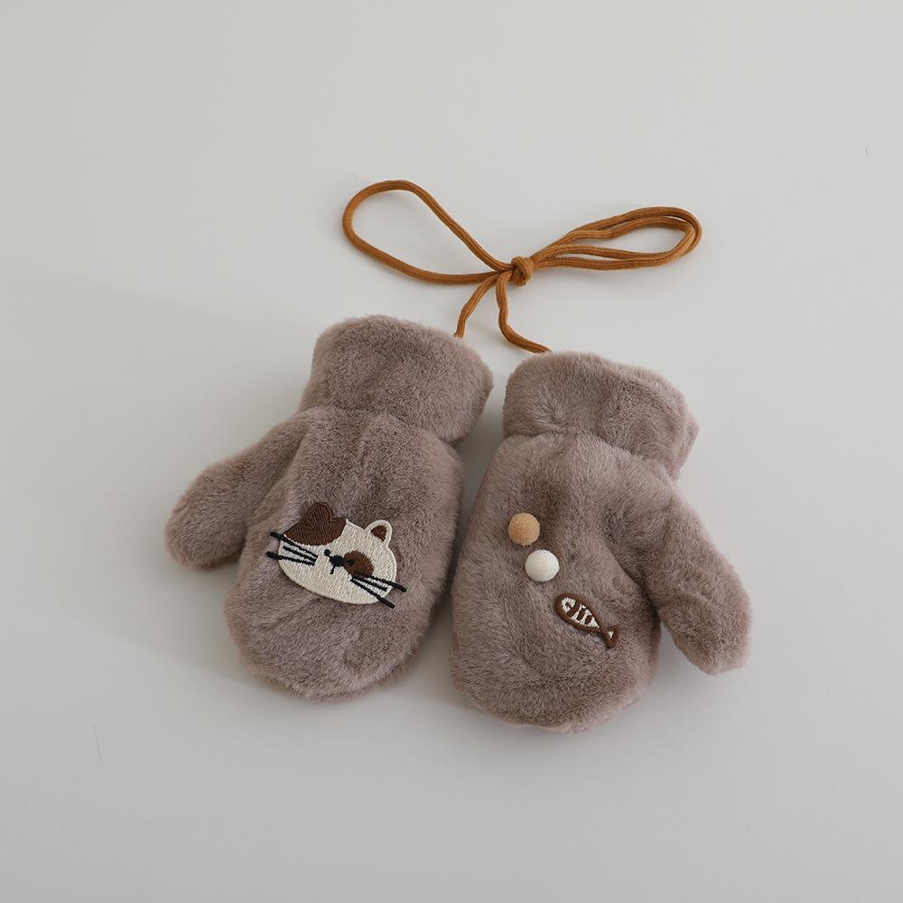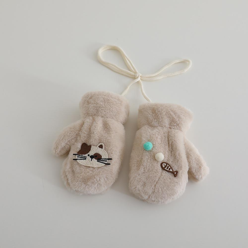 Guantes de invierno para niños, cálidos, forrados de vellón, con bonitos dibujos animados, para el cuello y los dedos, para niños y niñas, resistentes al frío, de felpa, para otoño e invierno.