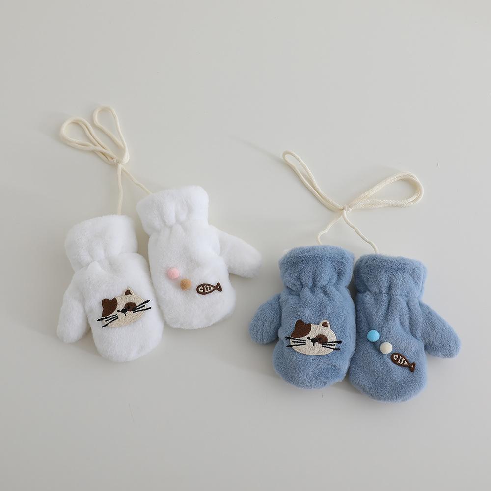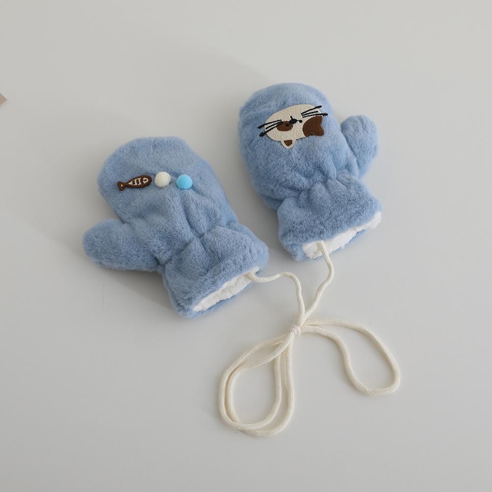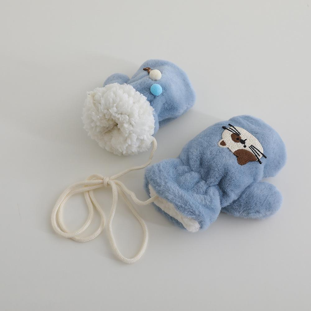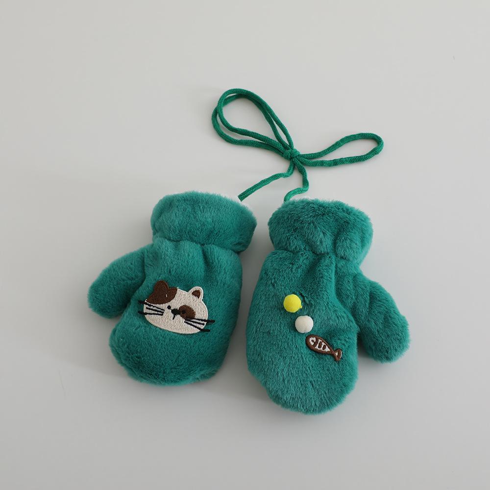 Guantes de invierno para niños, cálidos, forrados de vellón, con bonitos dibujos animados, para el cuello y los dedos, para niños y niñas, resistentes al frío, de felpa, para otoño e invierno.