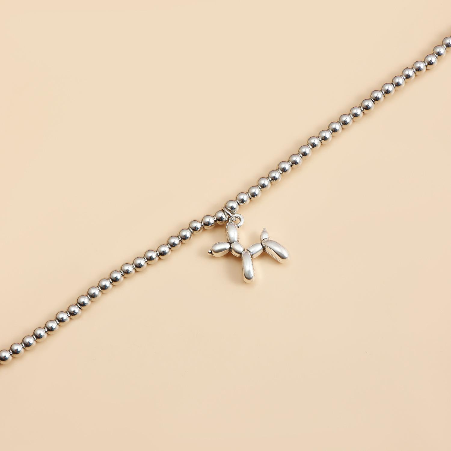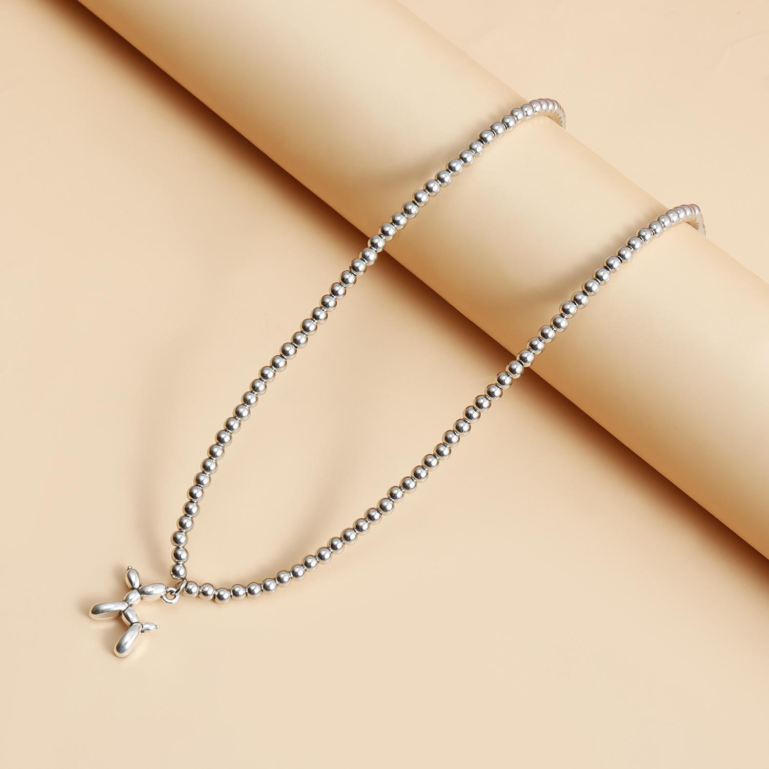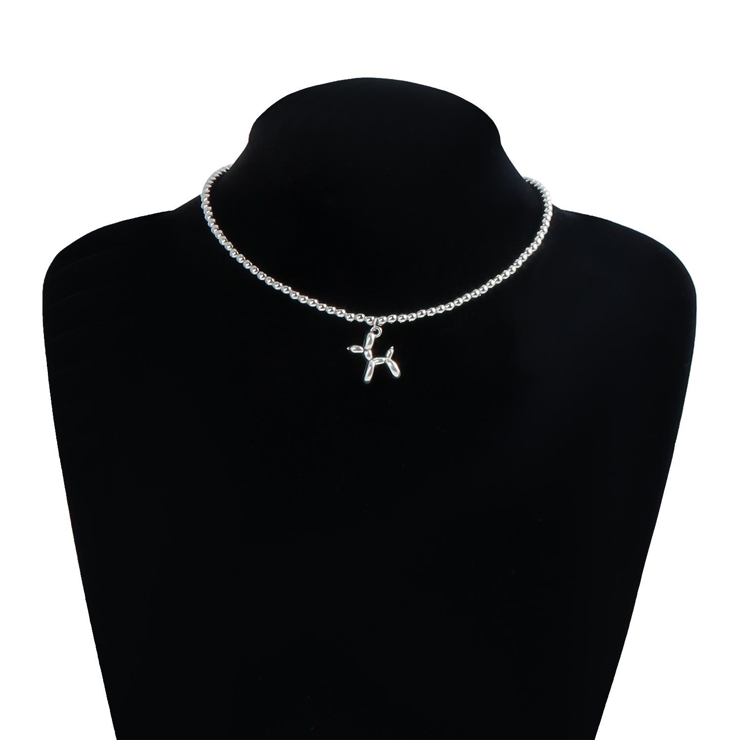 Collar de cuentas hecho a mano con colgante de cachorro de acero inoxidable, joyería transfronteriza entre Europa y Estados Unidos, cadena de clavícula de moda con sensación de metal simple para mujer