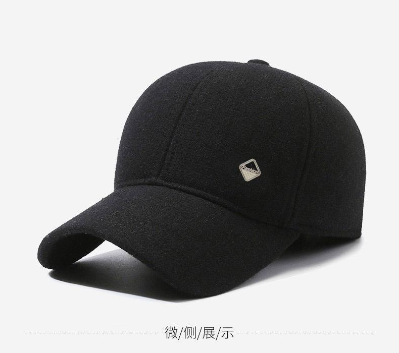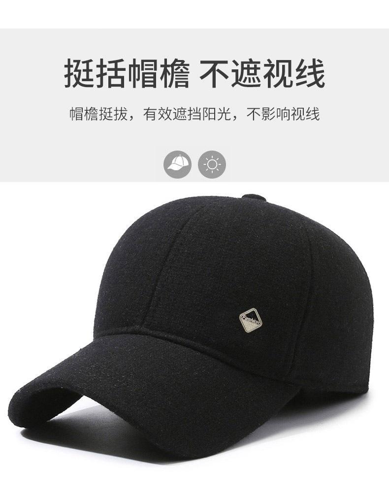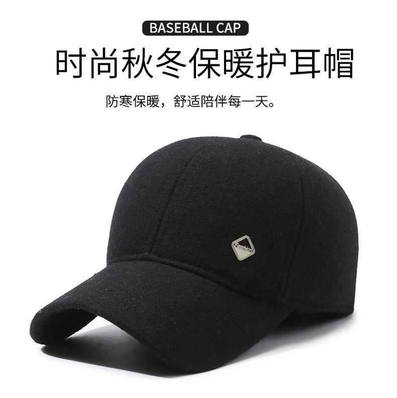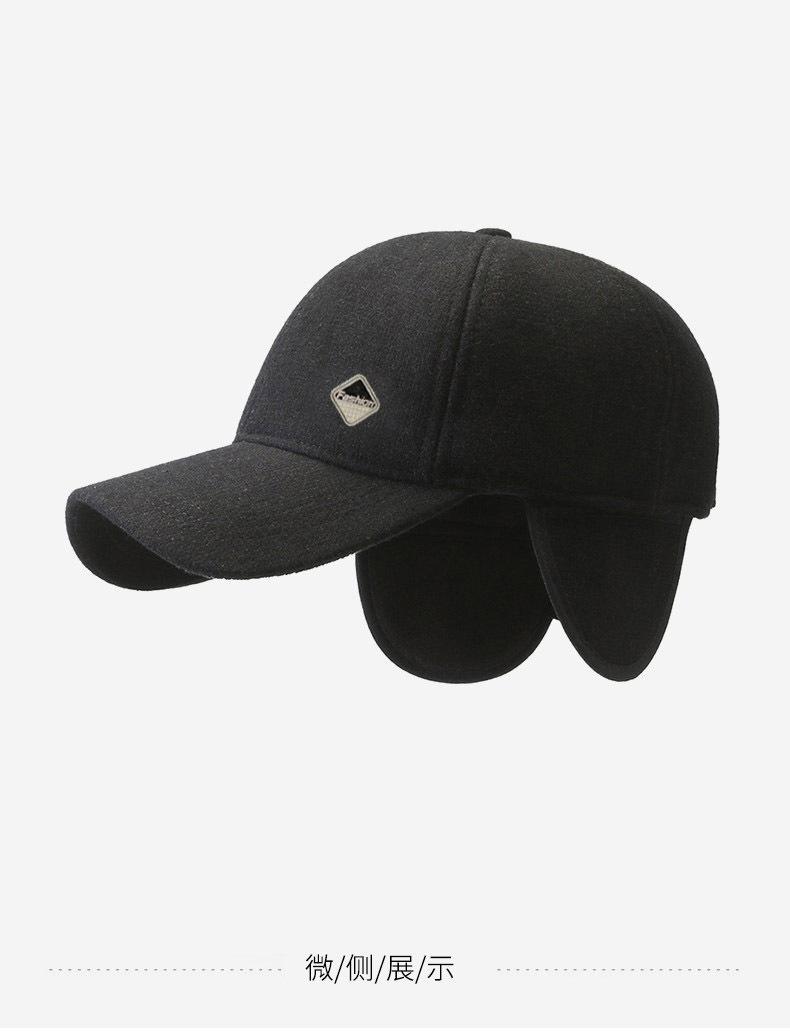 Gorro para Hombre Protección de Orejas Invierno Gorra de Béisbol de Lana de Color Puro Ala Corta Forrado de Vellón Algodón Sombrero para Exterior a Prueba de Viento y Cálido