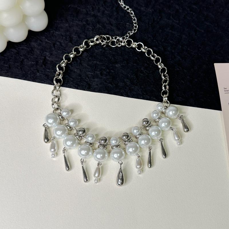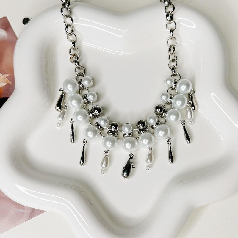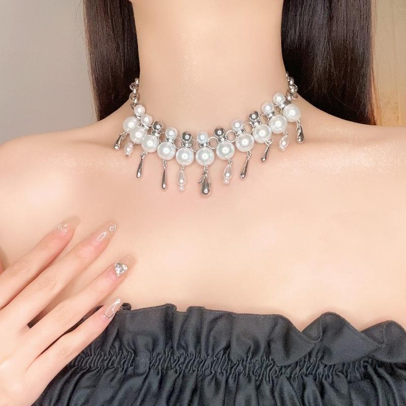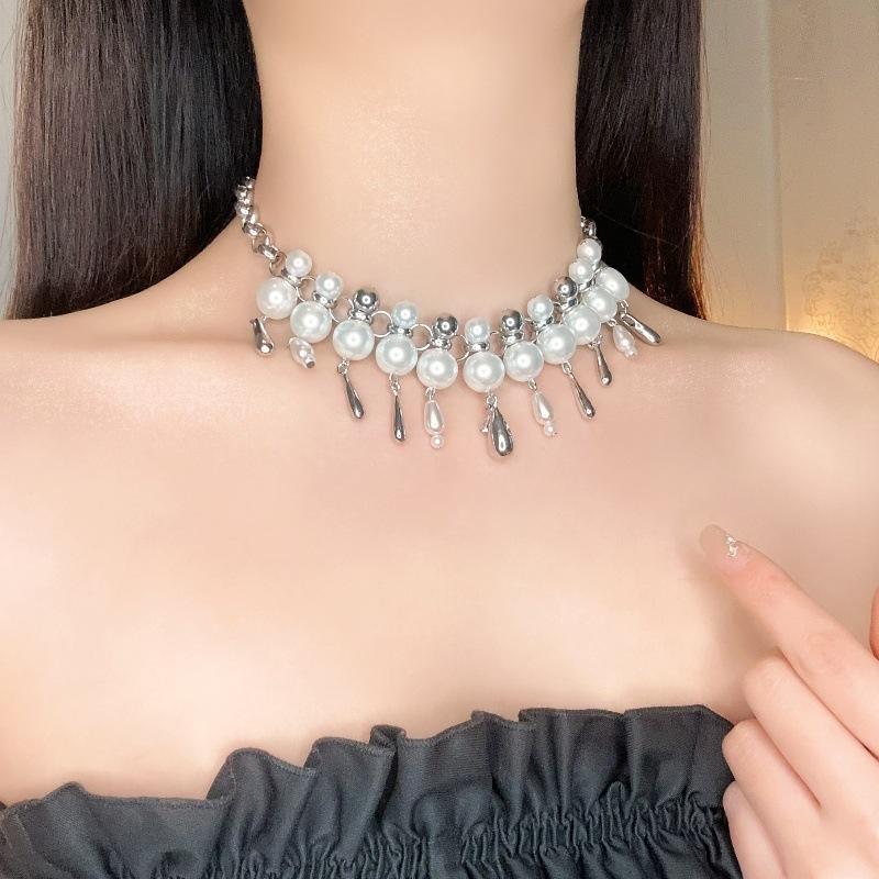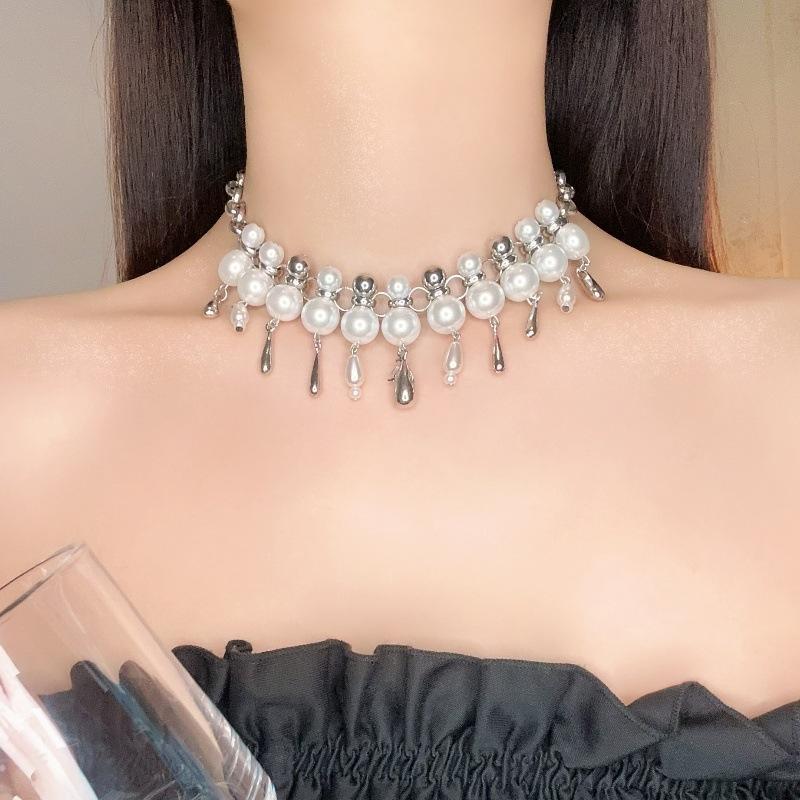 Collar de perlas de agua con forma de gota de agua para mujer, de lujo, de alta calidad, con diseño de nicho y cadena de clavícula.