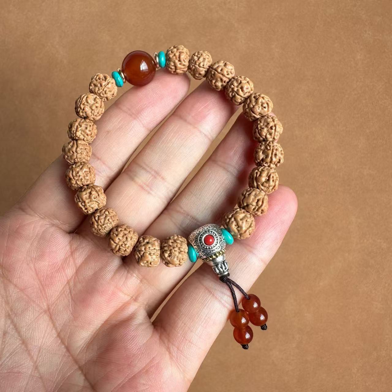 9-11mm rudraksha bracelet [alloy tee + red agate model]