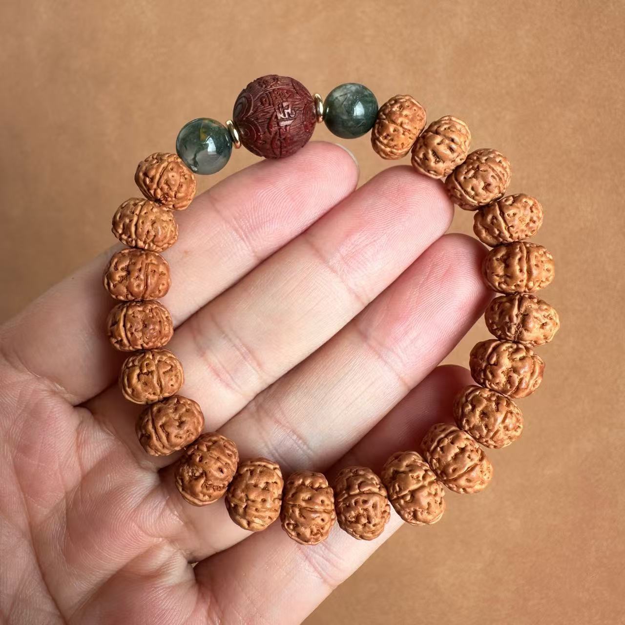 9-11mm rudraksha bracelet [alloy six-character mantra + red agate model]