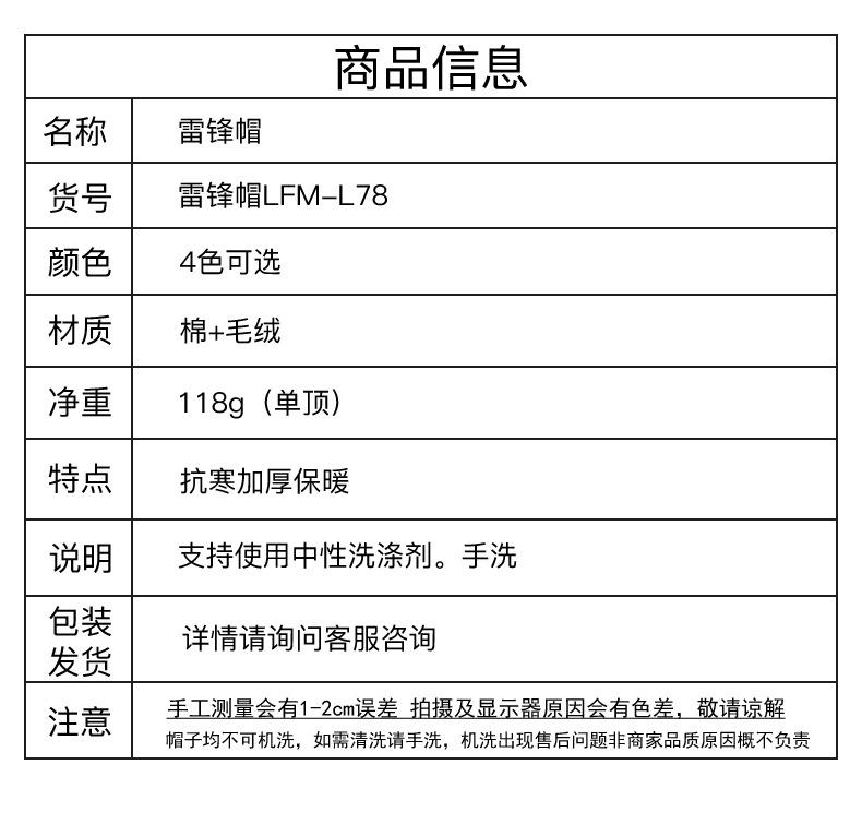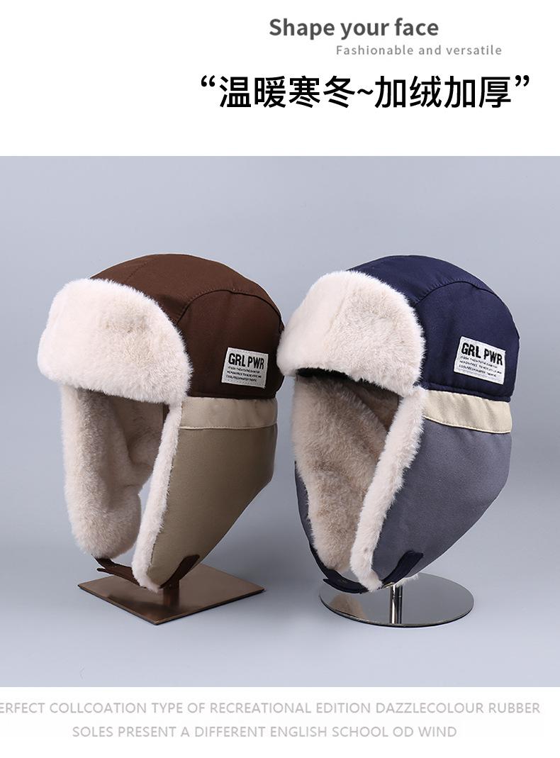 Nuevo gorro Lei Feng de felpa gruesa a juego de colores para hombre y mujer, ideal para el invierno del noreste, resistente al viento y al frío, para ciclismo, cálido y con protección para los oídos.