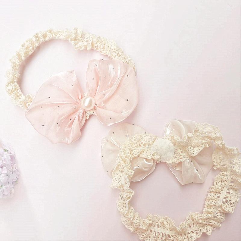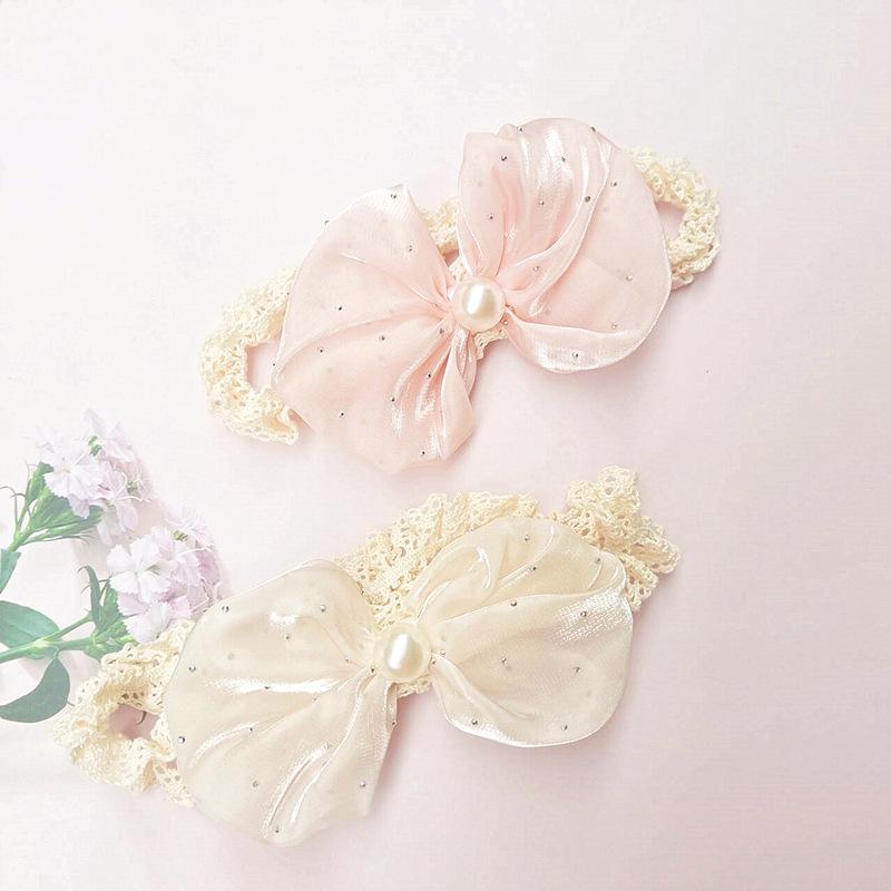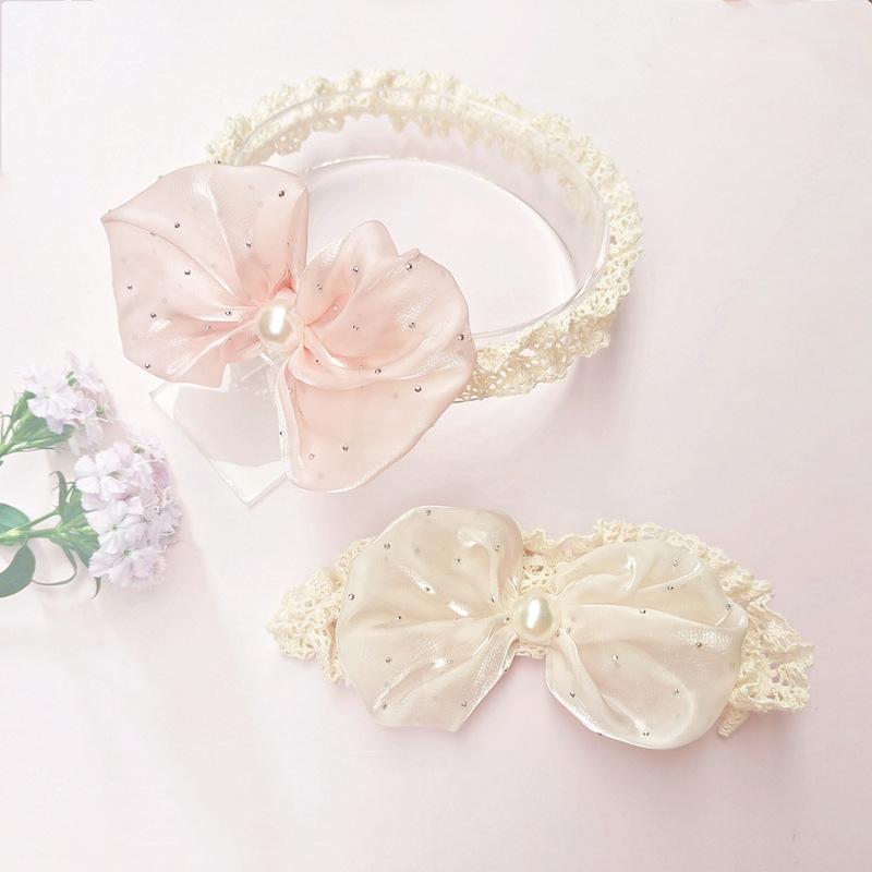 Diadema elástica con lazo de perla dulce de princesa para bebé, luna llena, cien días con flor en la cabeza, accesorios para el cabello para niña