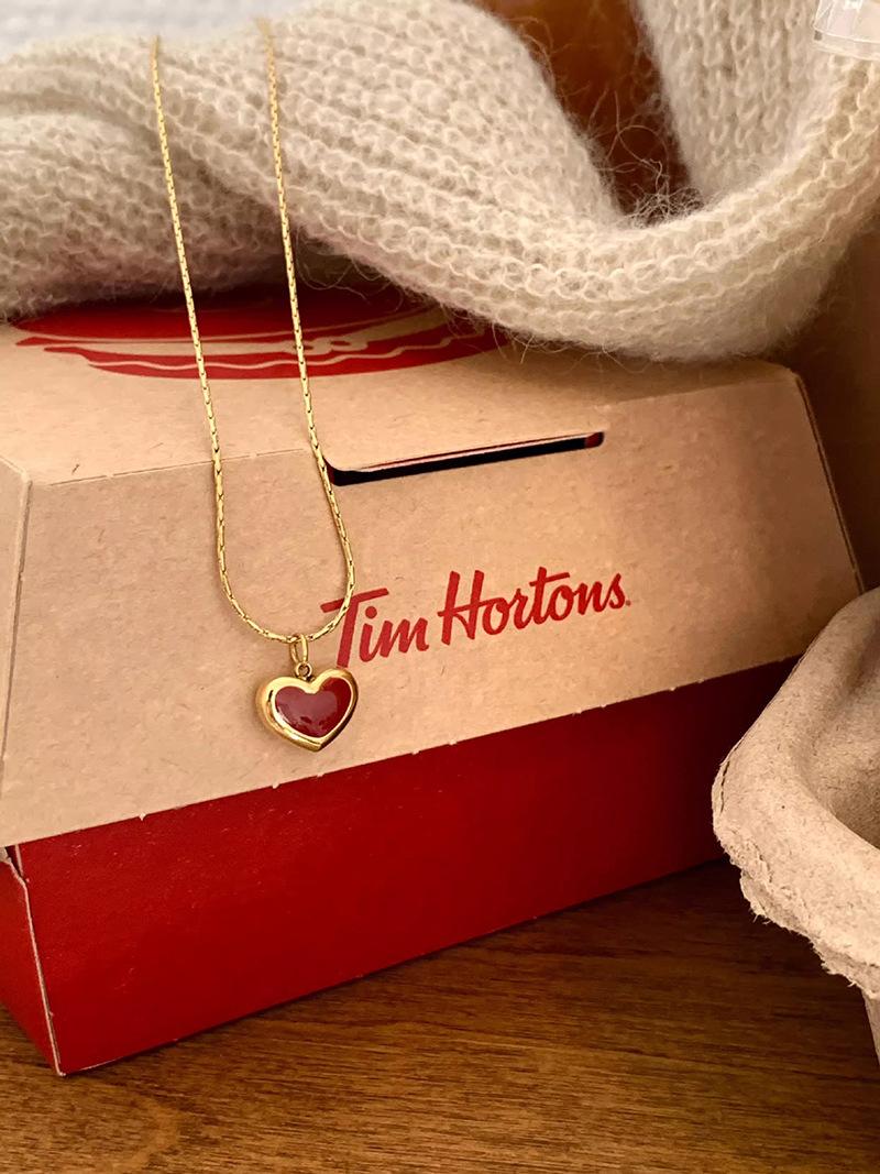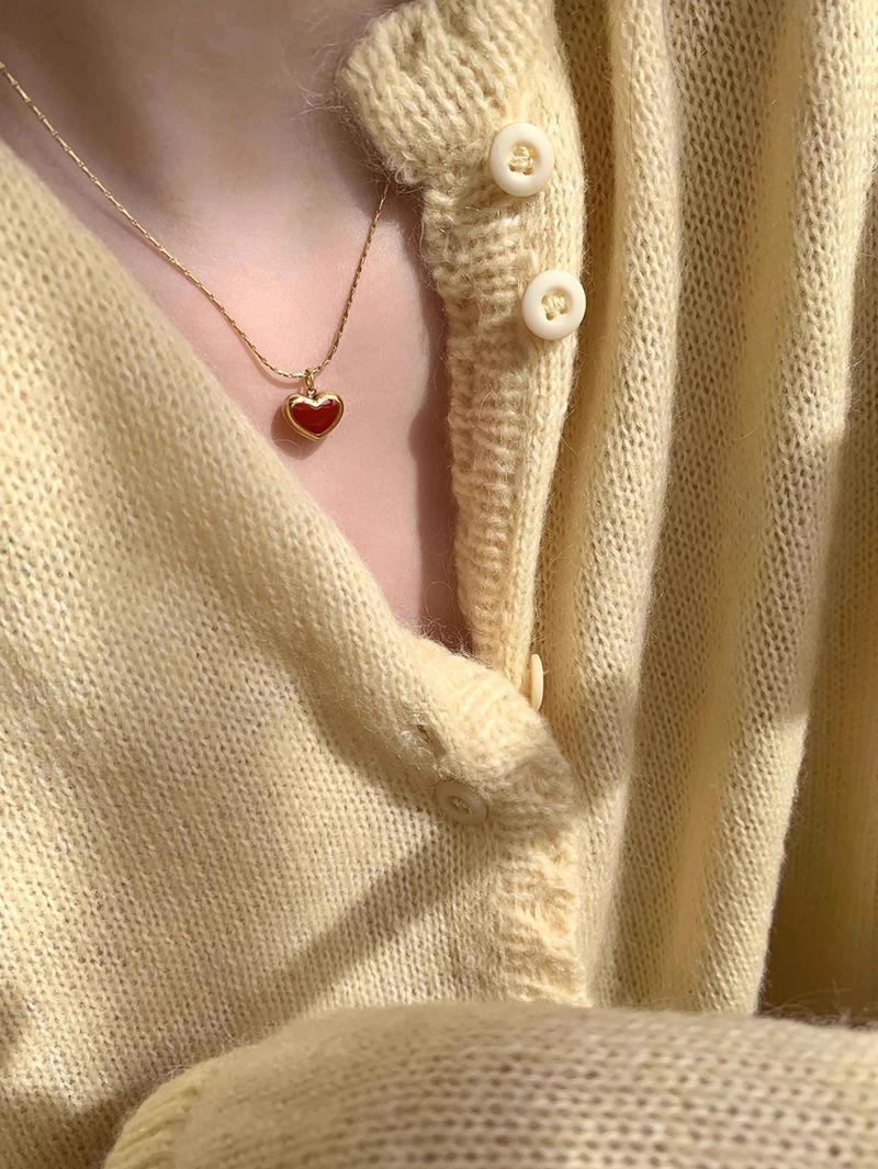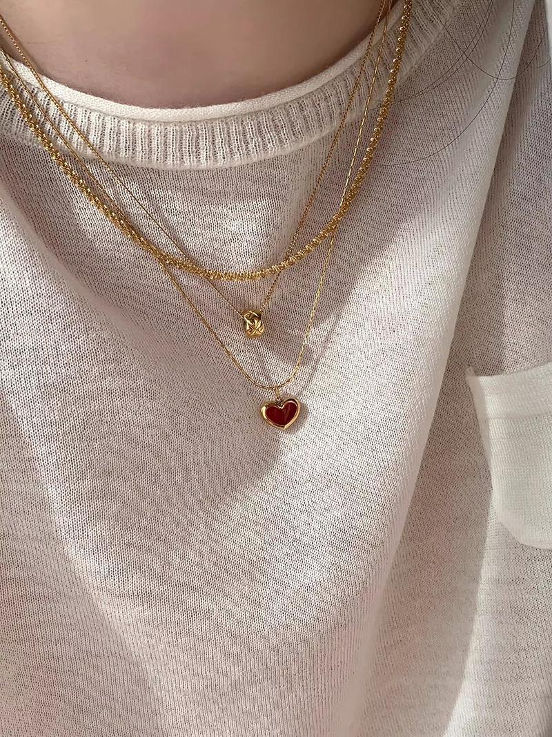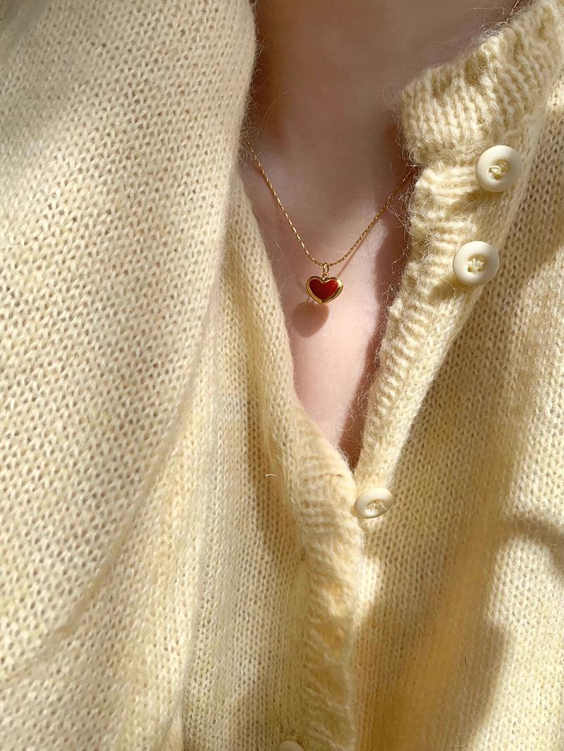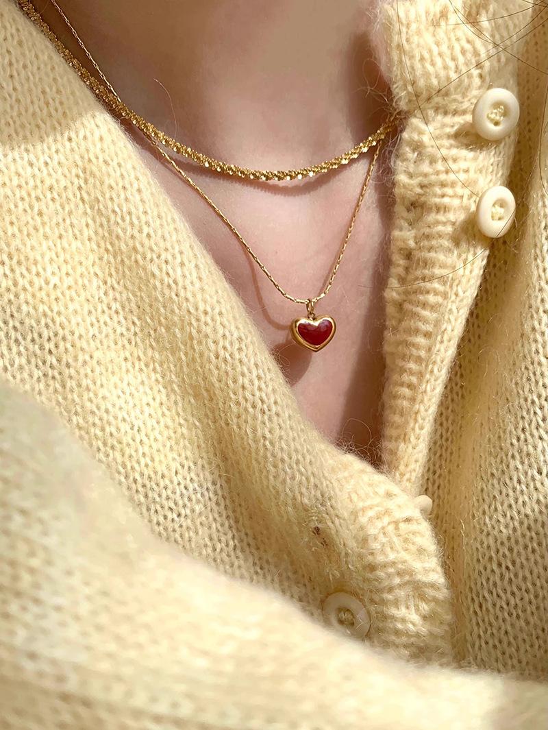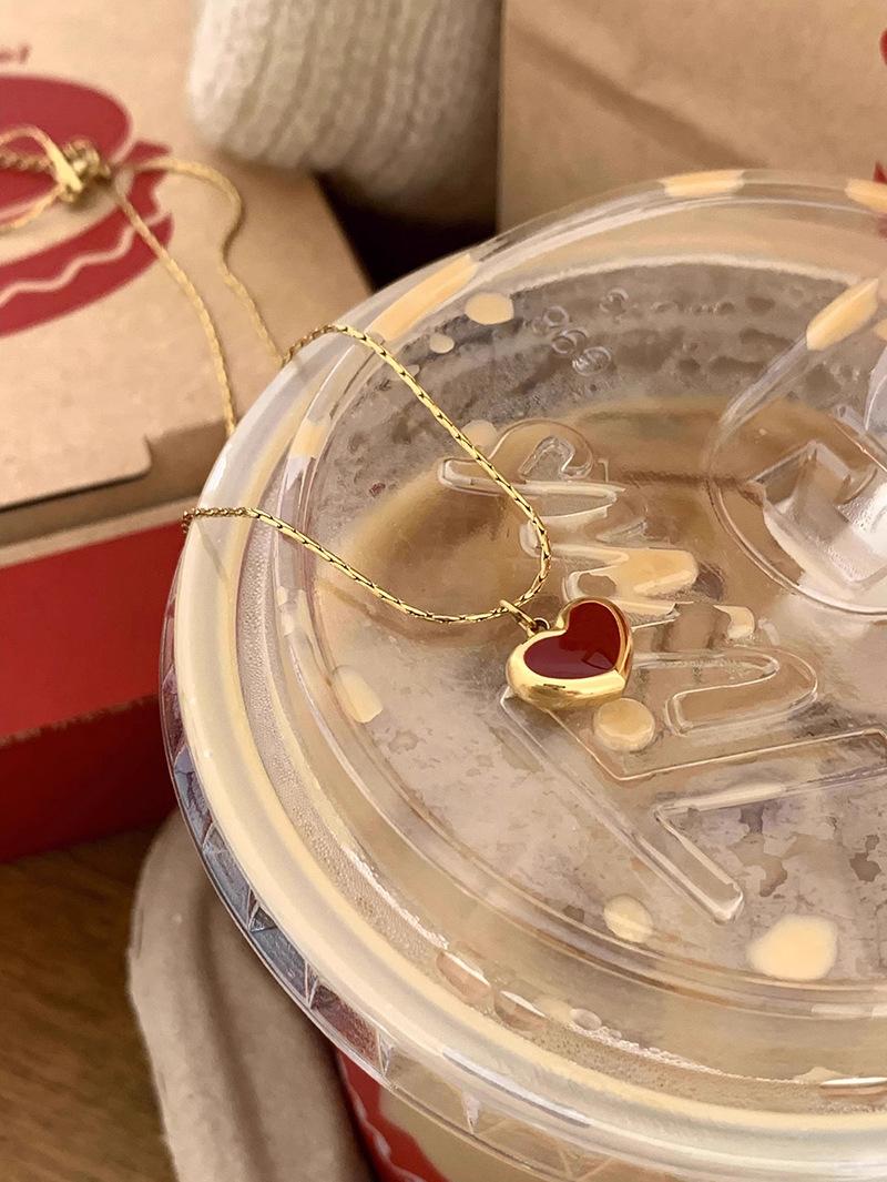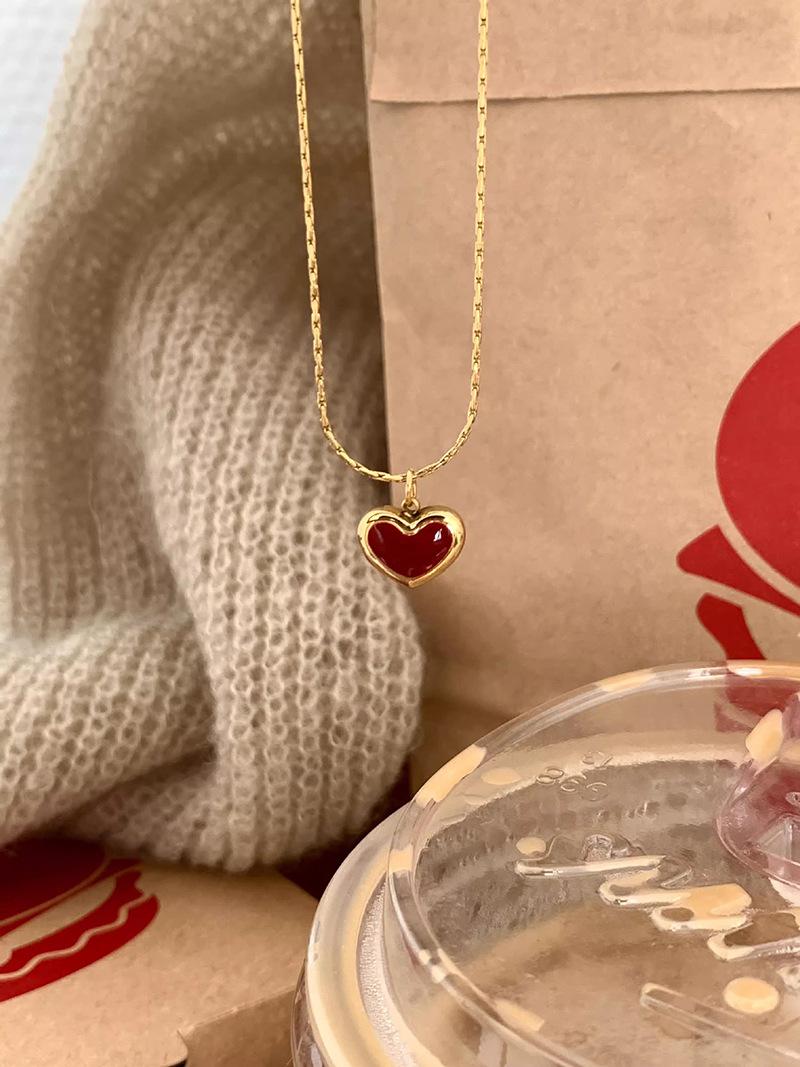 Collar vintage rojo de amor para mujer, sencillo, con colgante en forma de corazón frío, cadena de clavícula moderna para desplazamientos diarios.