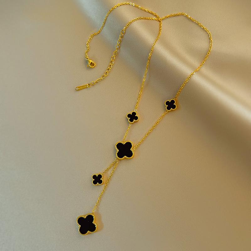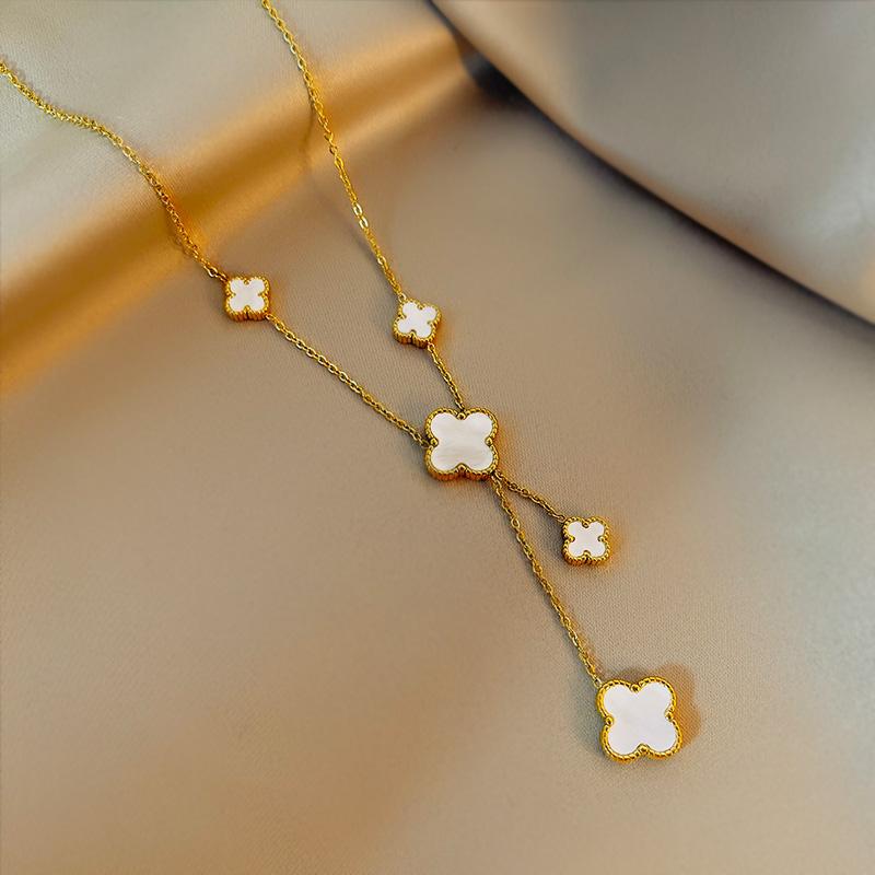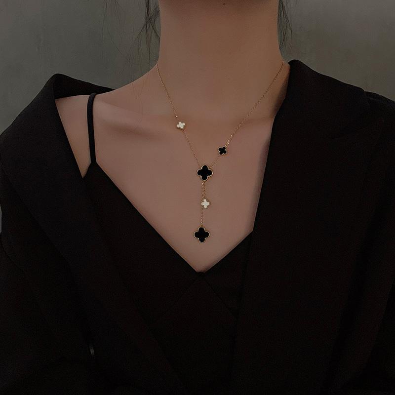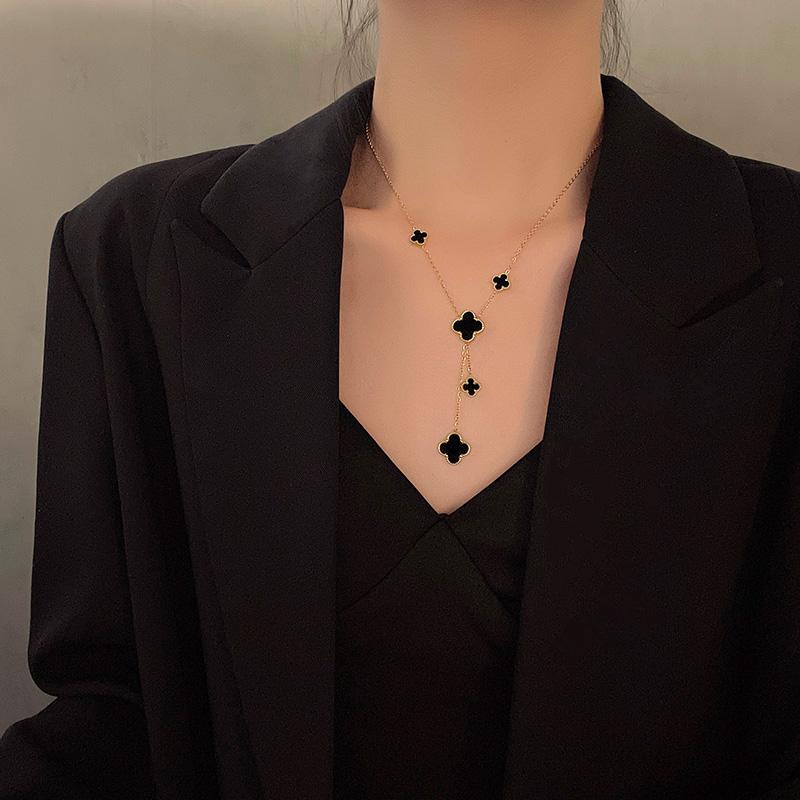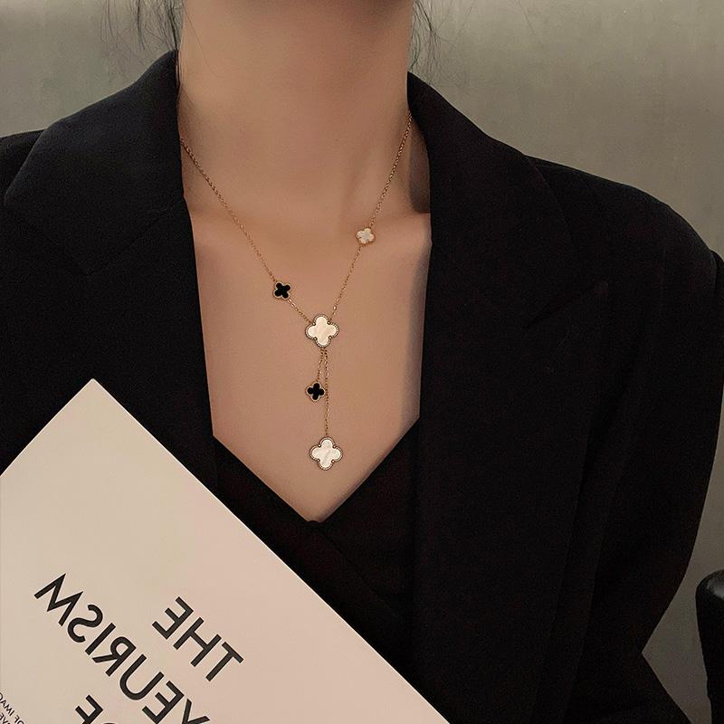 Collar de trébol de cuatro hojas de doble cara de alta gama con cadena de clavícula para mujer, colgante de borla de lujo ligero, joyería personalizada de moda que combina con todo.