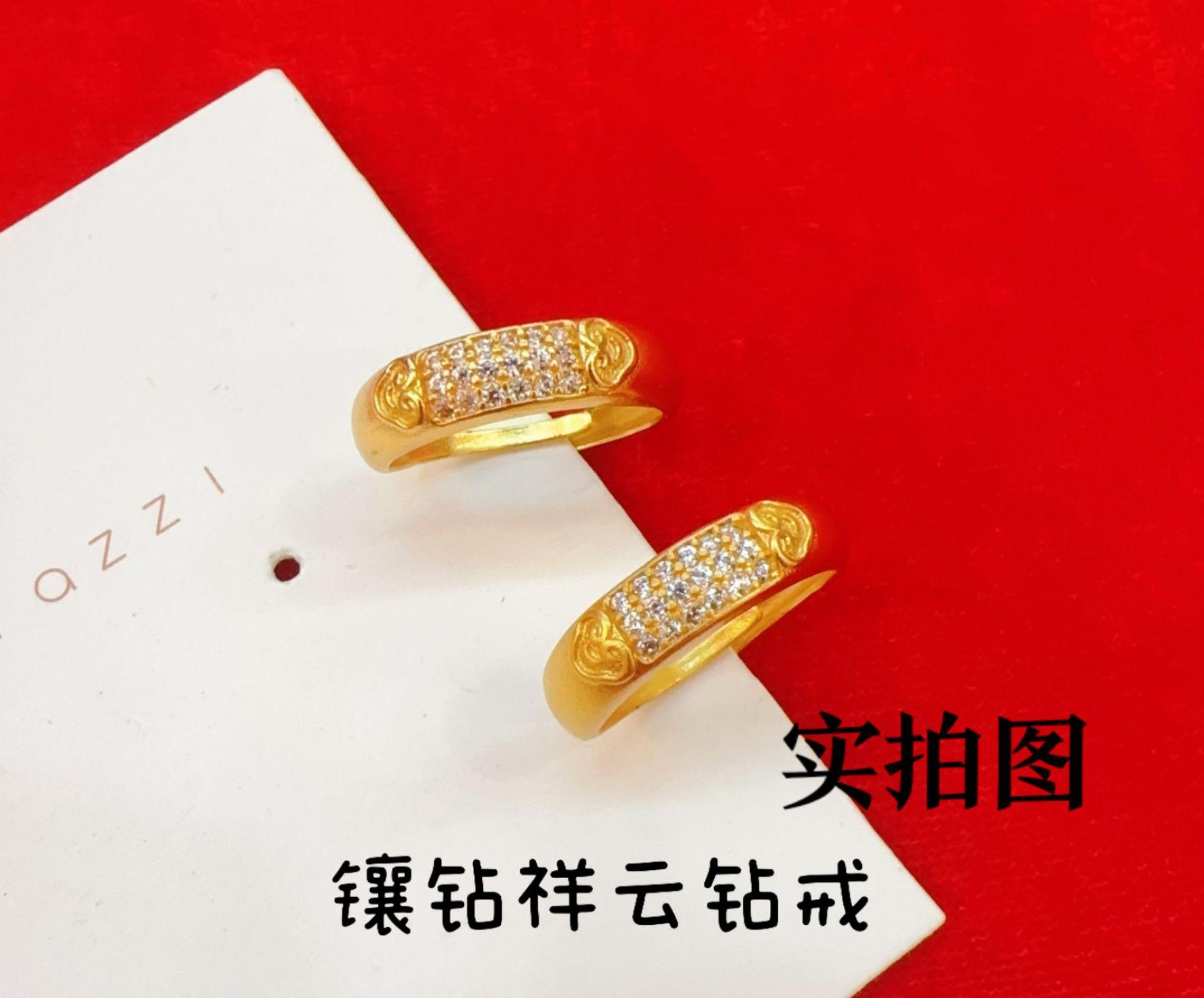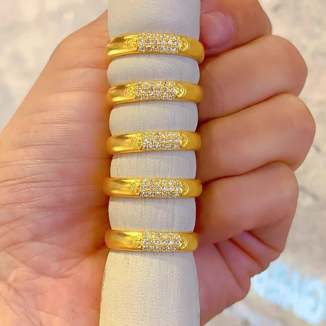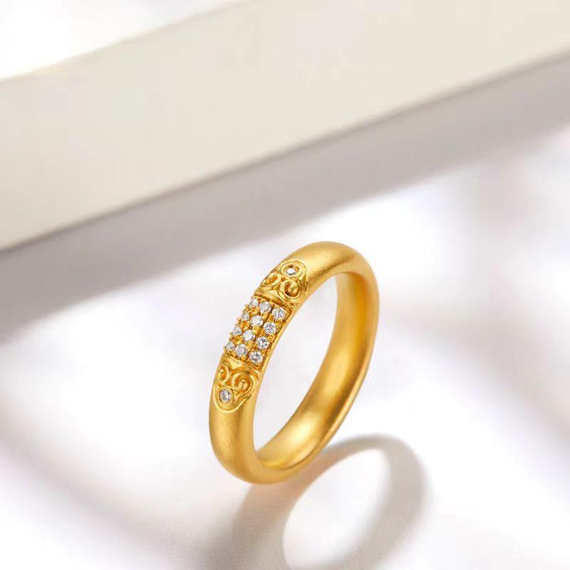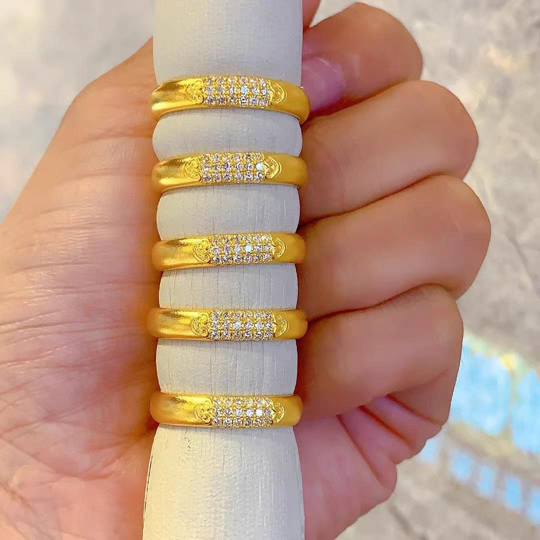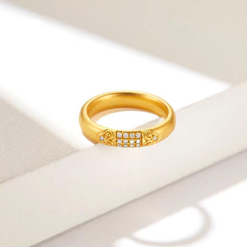 Anillo Antiguo Francés Color Oro con Diamante Patrón Ruyi Anillo Abierto Vintage para Mujer Imitación Joyería de Oro Arenoso Vietnamita