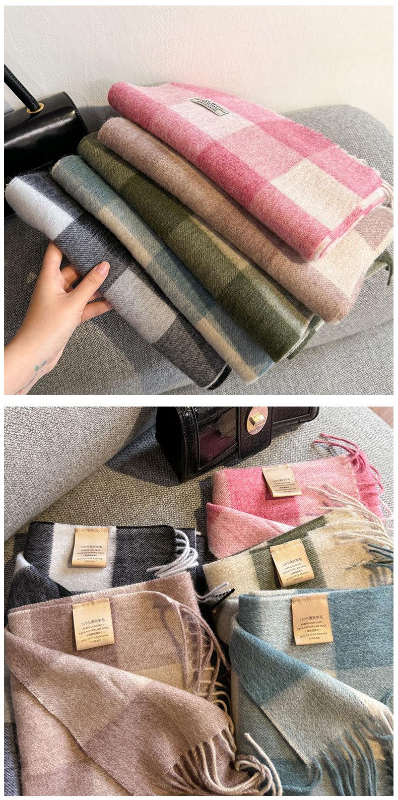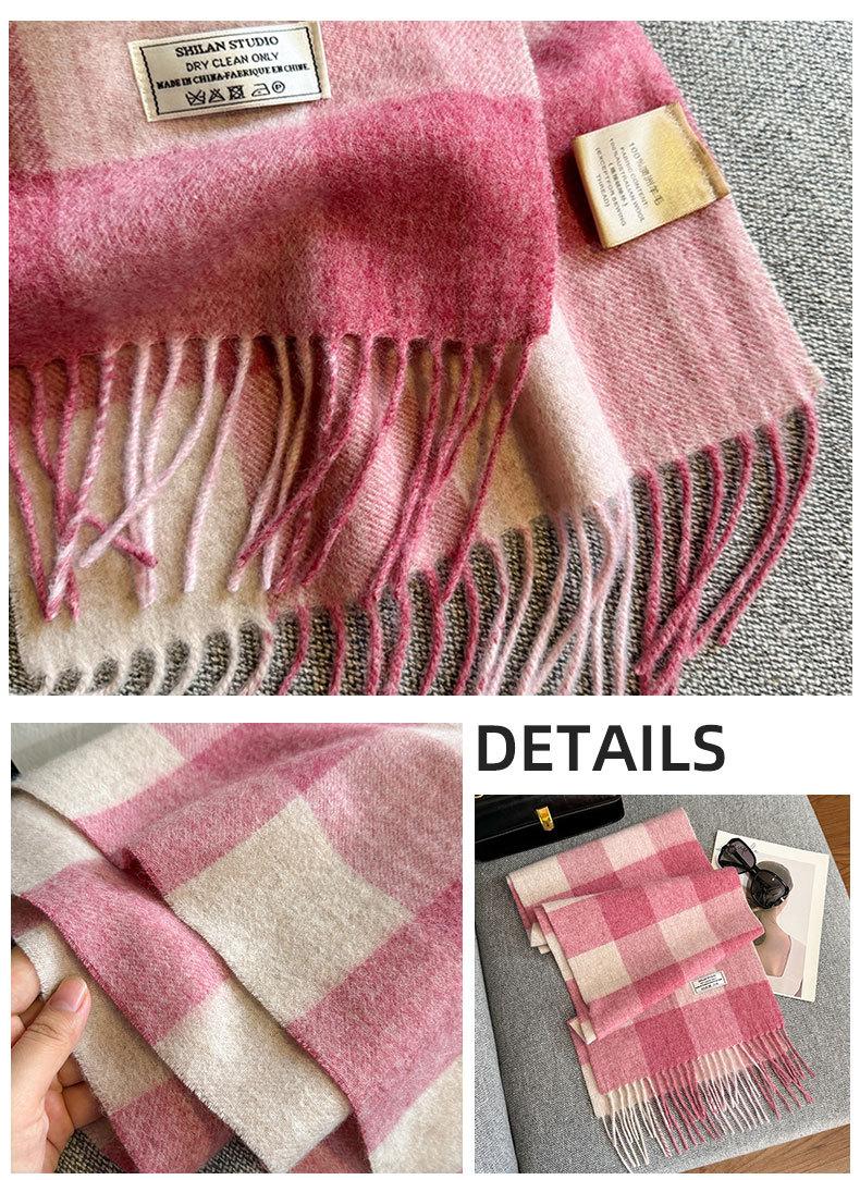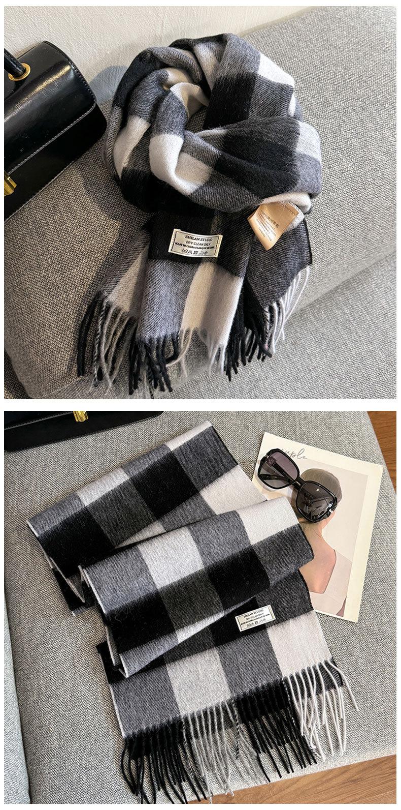 Bufanda a cuadros de lana 100% nueva para mujer, invierno, estudiante, combinable con todo, unisex, cálida, para pareja, bufanda de cachemira