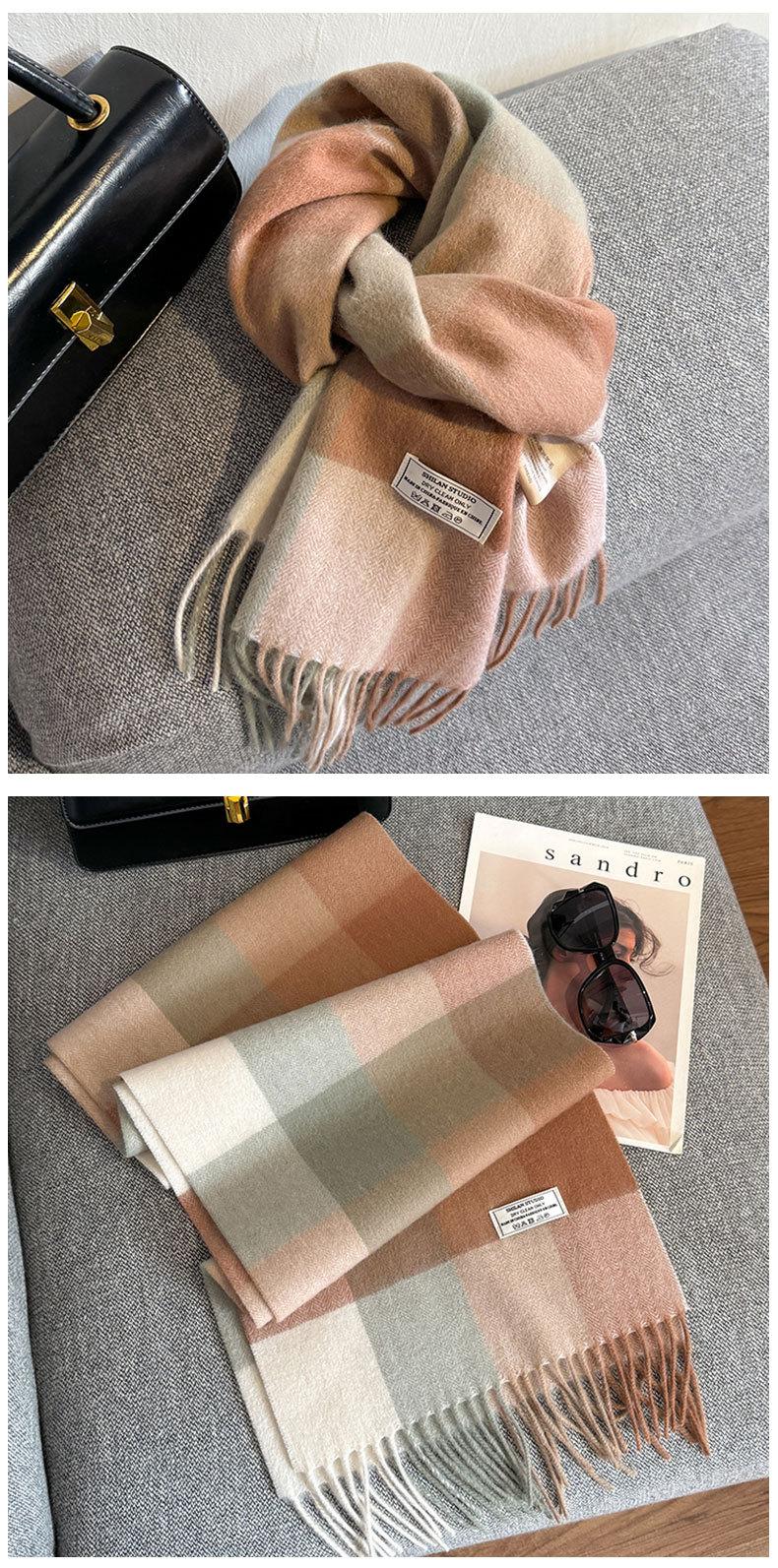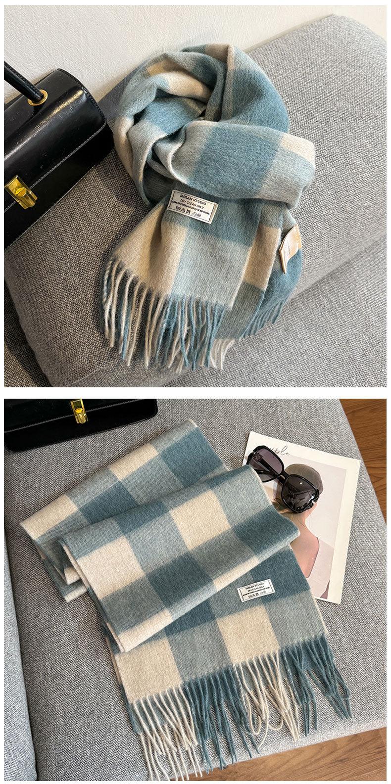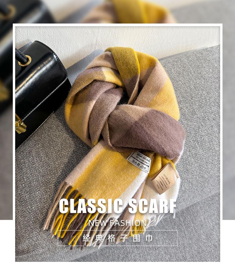 Bufanda a cuadros de lana 100% nueva para mujer, invierno, estudiante, combinable con todo, unisex, cálida, para pareja, bufanda de cachemira