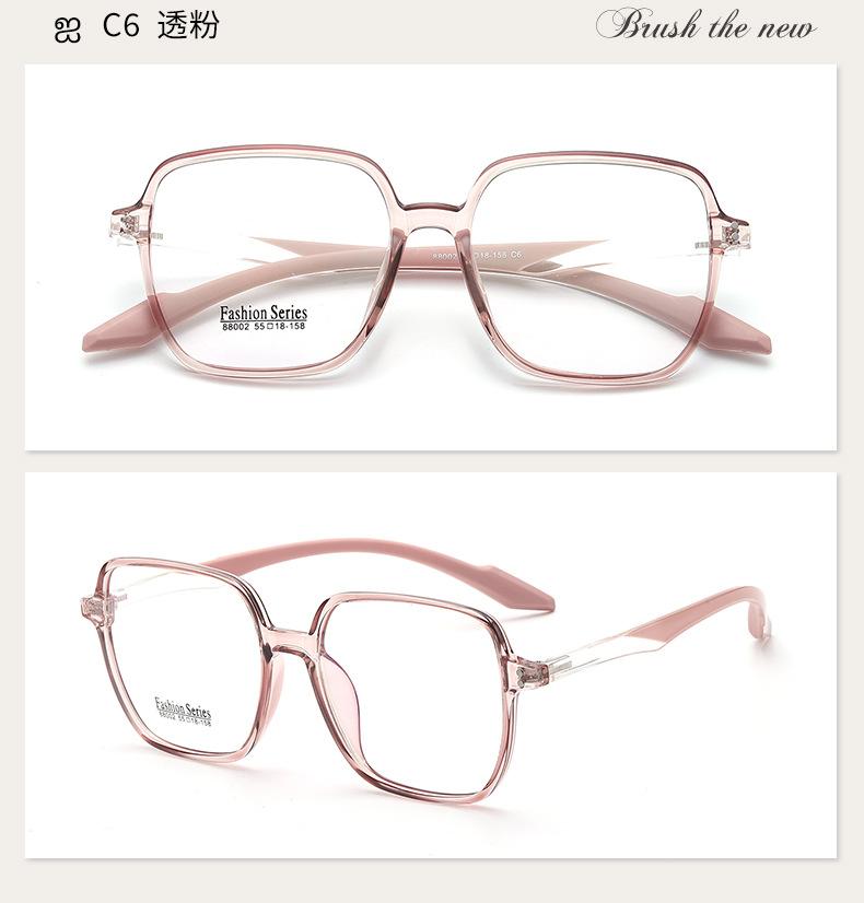 Nueva versión coreana de la montura roja de red, cómodas patas de espejo de silicona sin marco de gafas de maquillaje, montura grande tr, montura de gafas Danyang, venta al por mayor