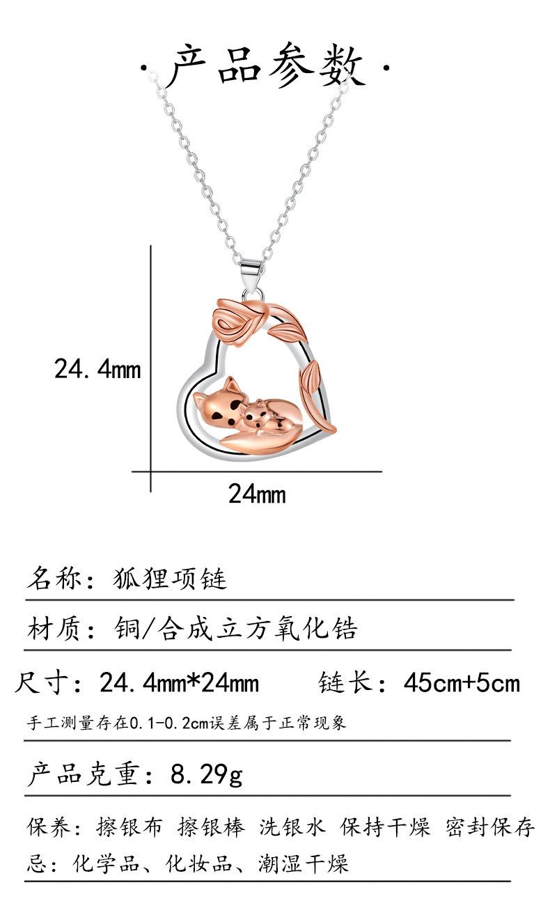 Kaman su diseño transfronterizo para nicho europeo y americano collar de zorro madre e hijo femenino cadena clavicular moda joyería de alta gama
