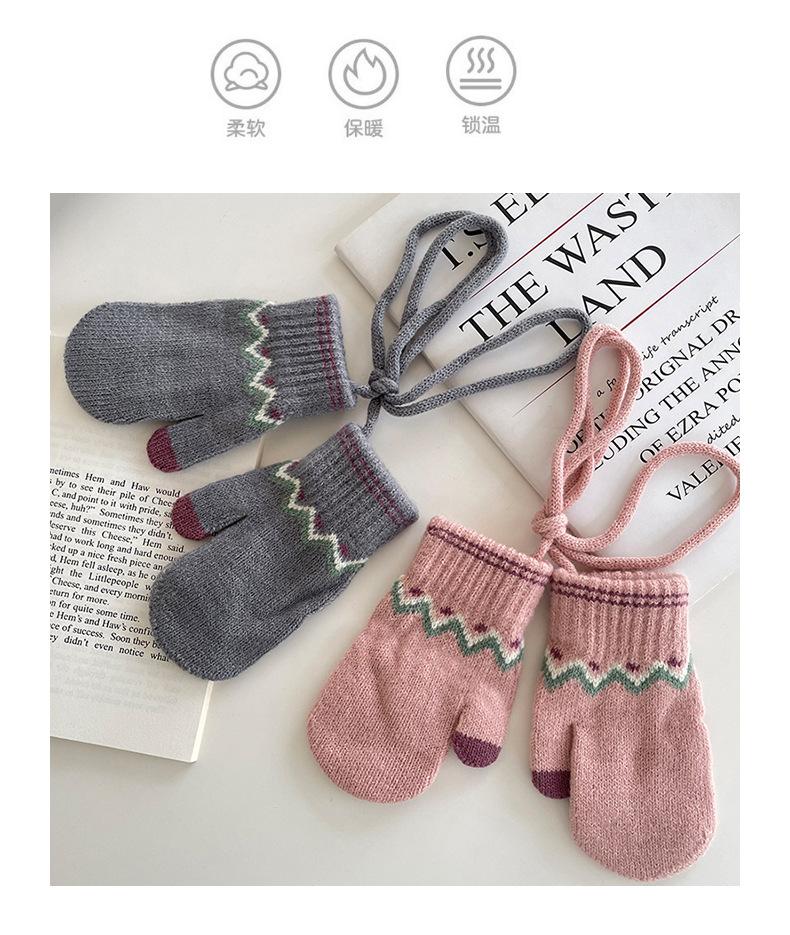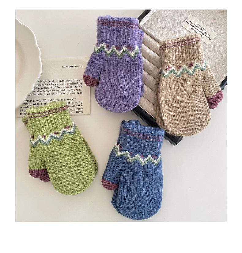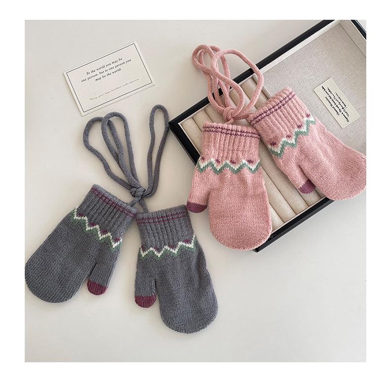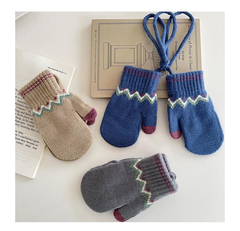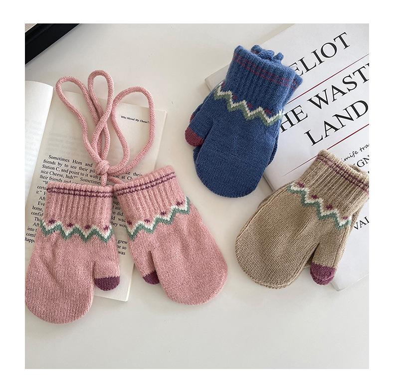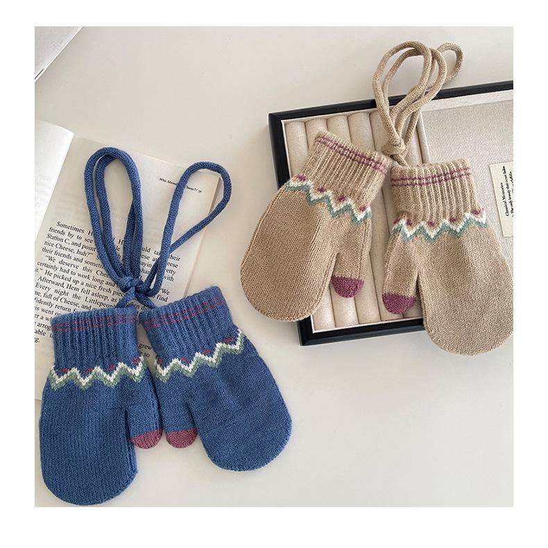 Guantes Cálidos de Invierno para Niños Estilo Retro Coreano Tejido Bolsa Dedo Estilo Occidental Jacquard de Onda Colgantes para el Cuello Manoplas a Prueba de Frío