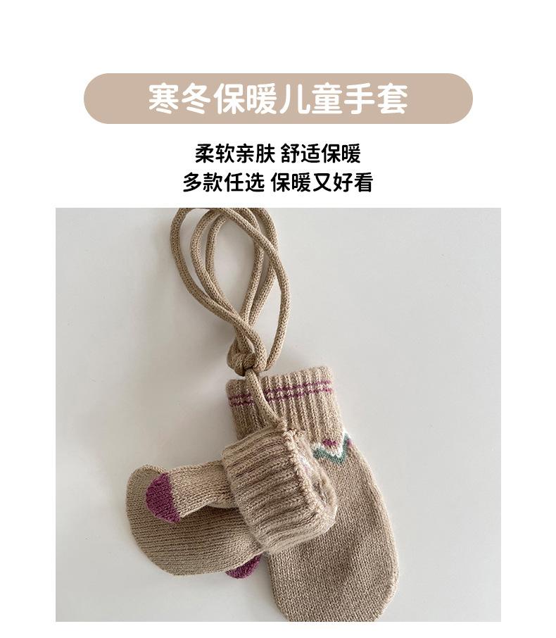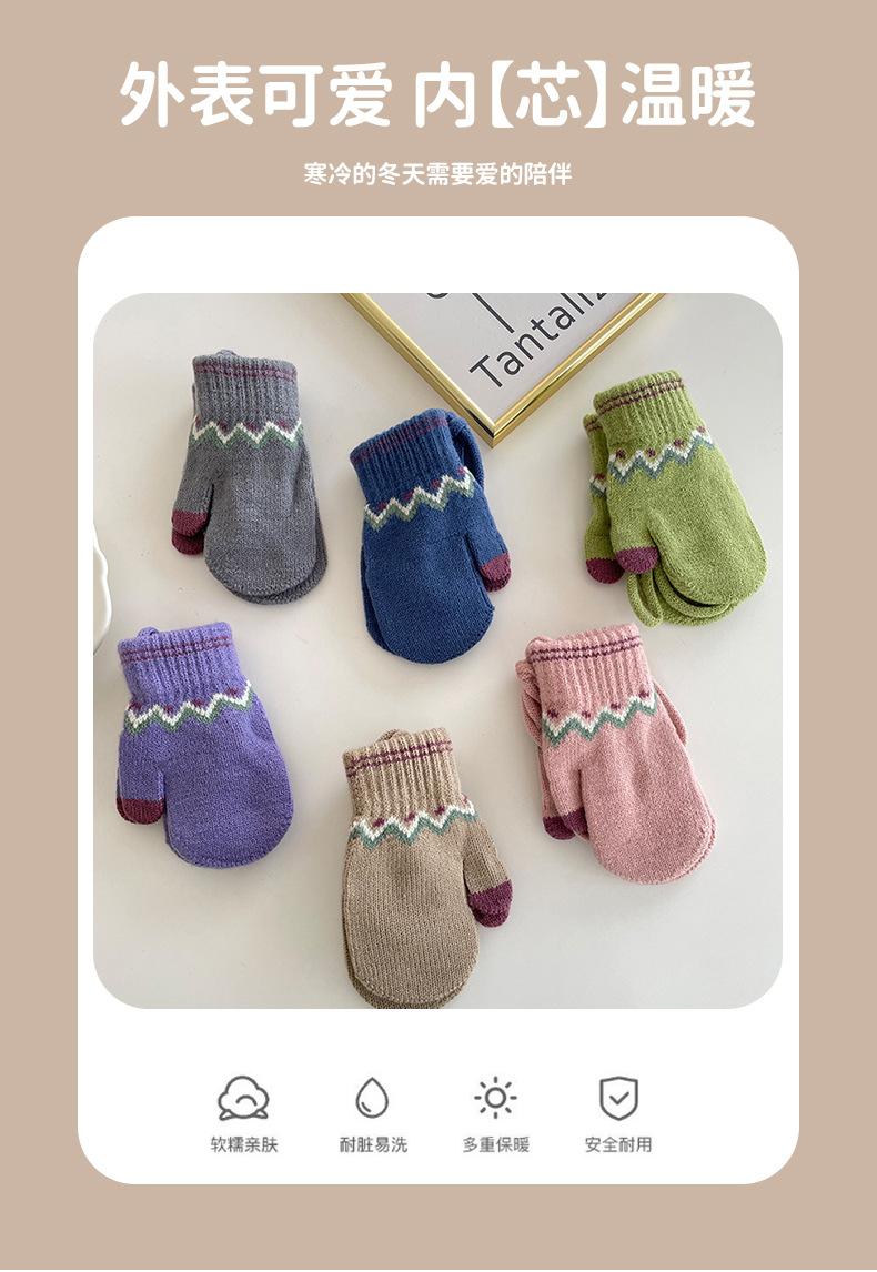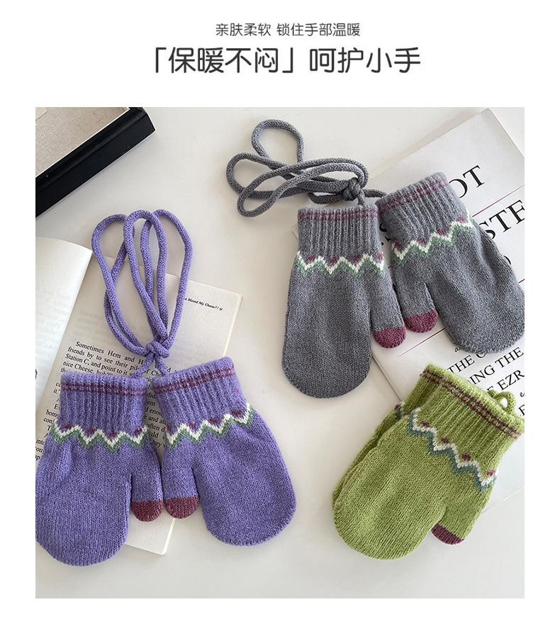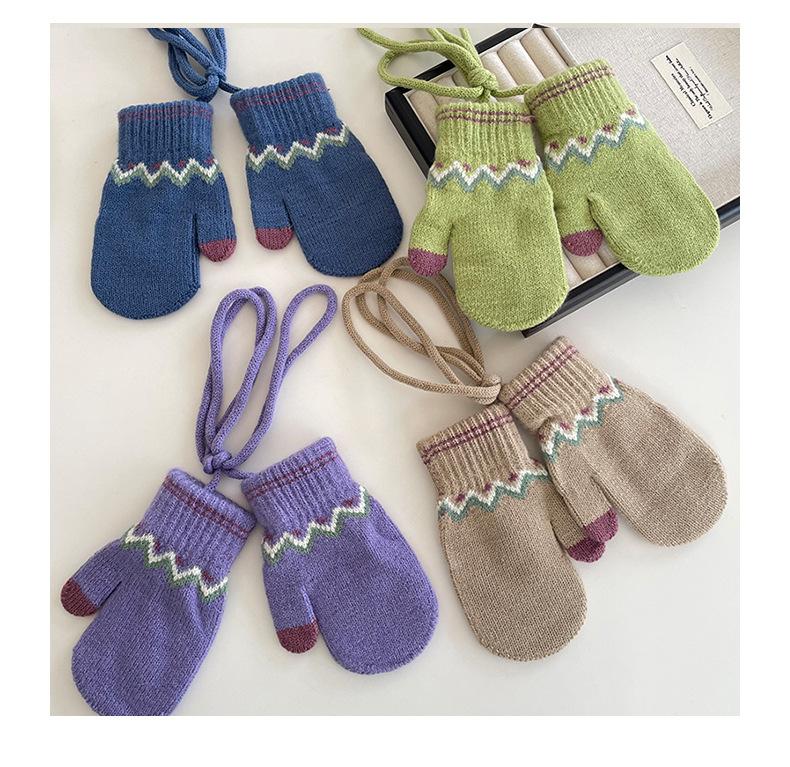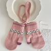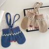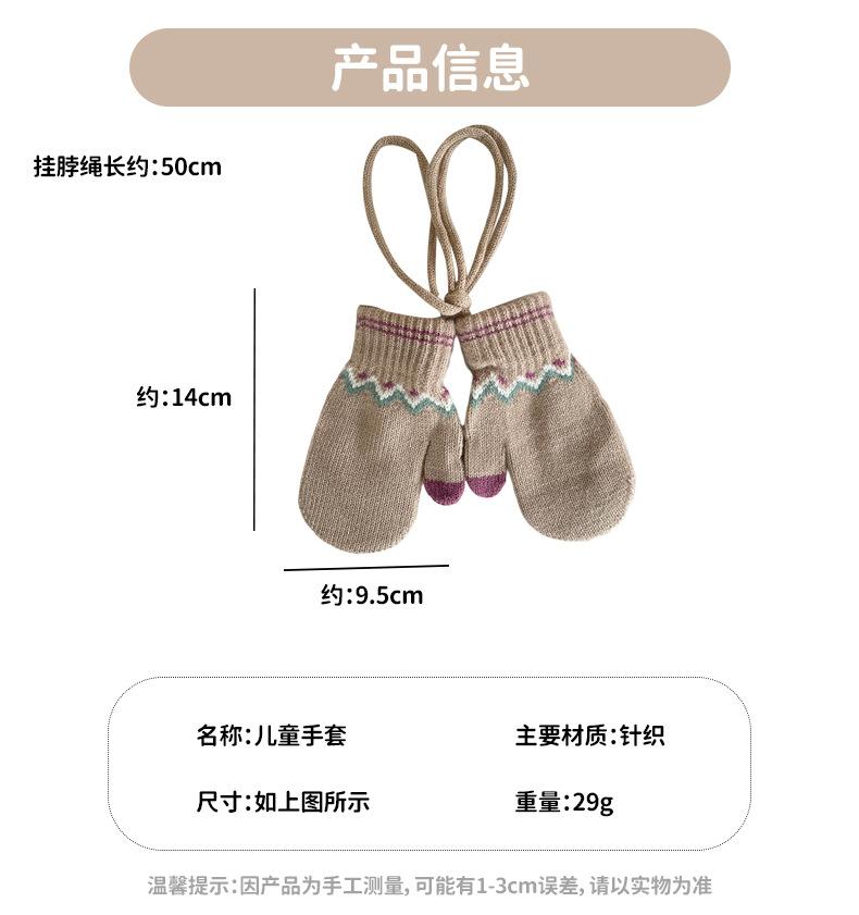 Guantes Cálidos de Invierno para Niños Estilo Retro Coreano Tejido Bolsa Dedo Estilo Occidental Jacquard de Onda Colgantes para el Cuello Manoplas a Prueba de Frío