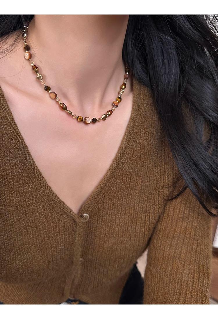 Collar Maillard con cuentas de ojo de tigre para mujer, otoño e invierno, combina con todo, ligero, de lujo, cadena de lana de nicho, joyería vintage para clavícula.