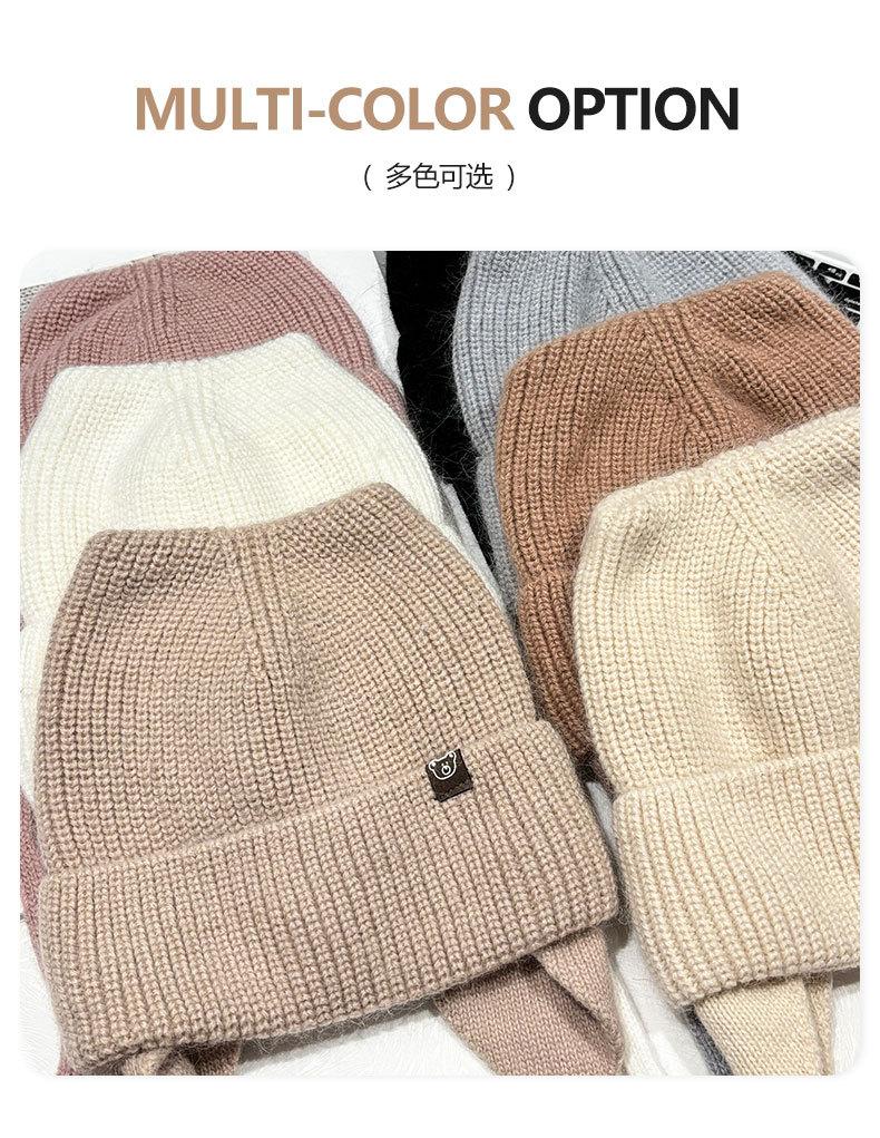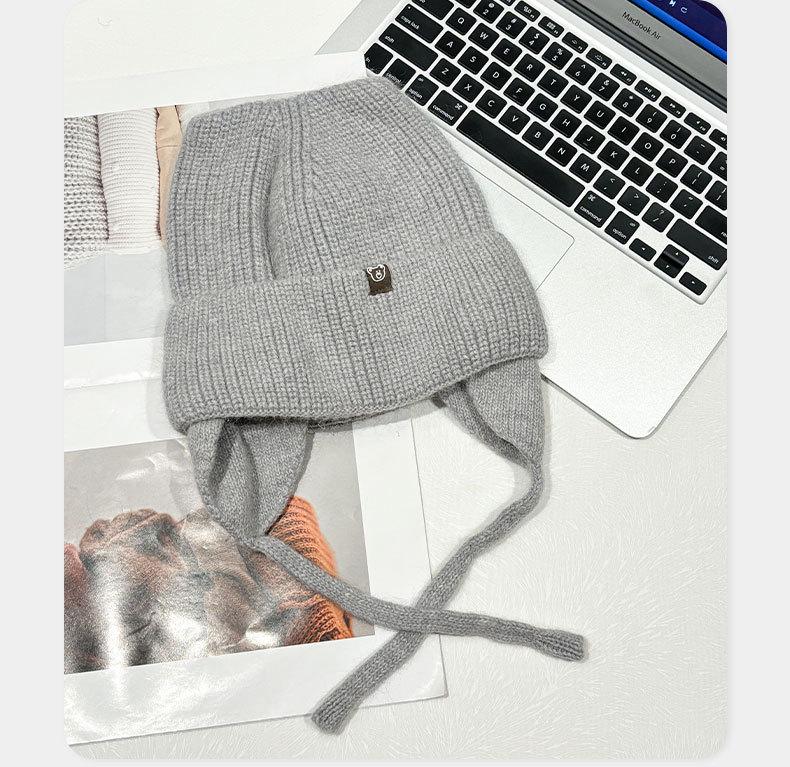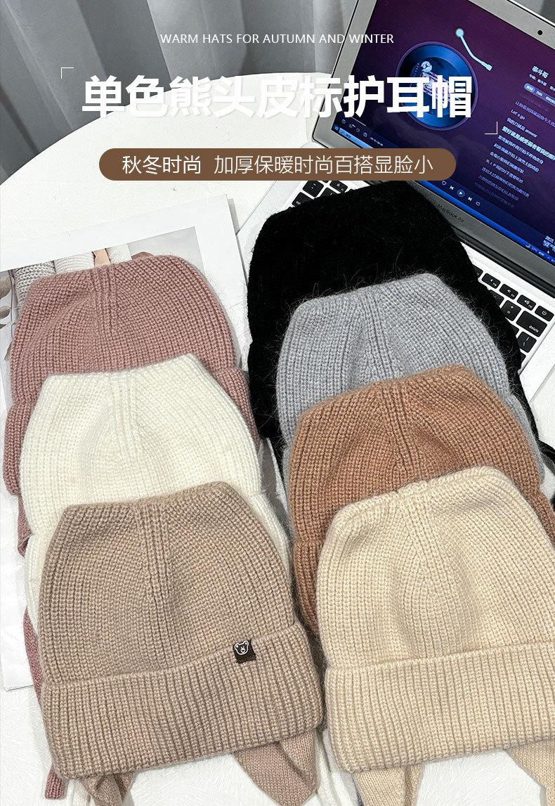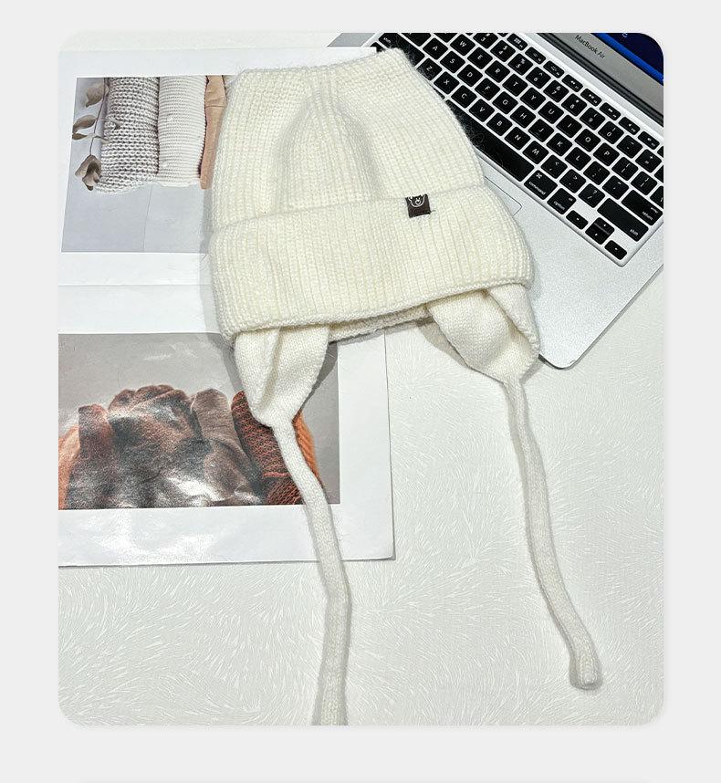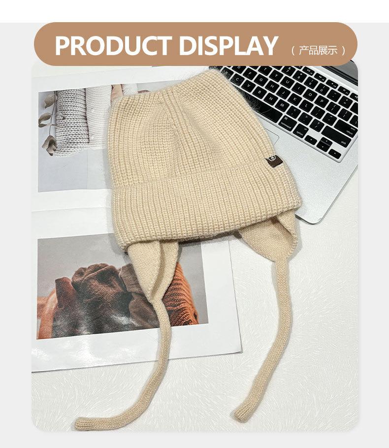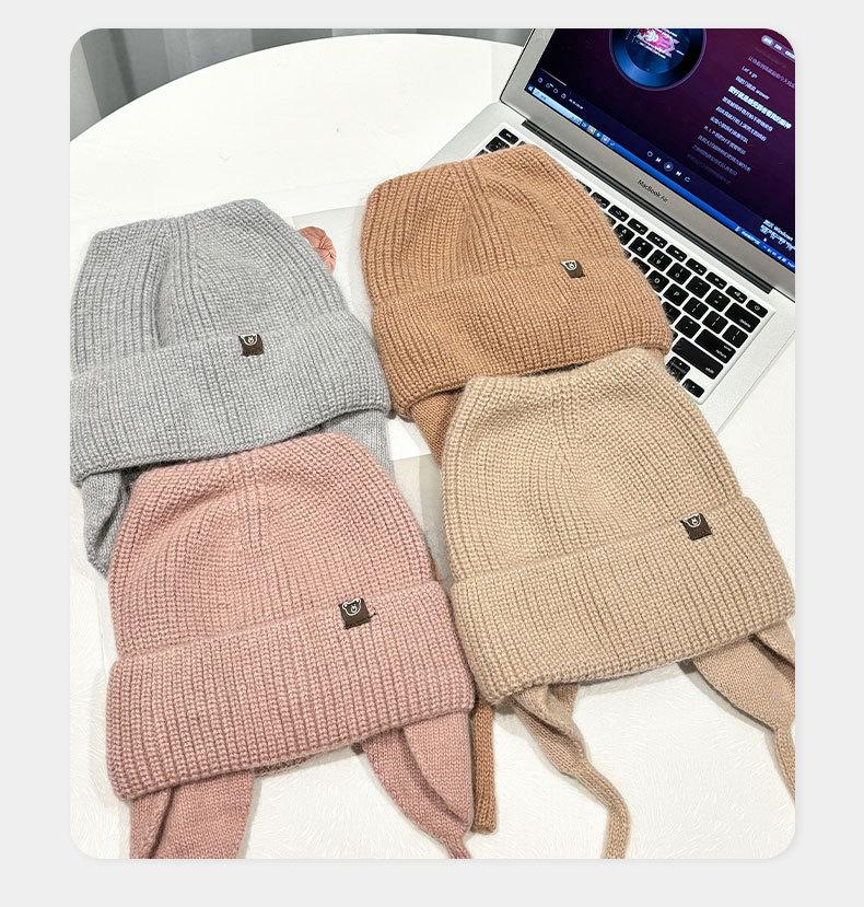 Gorro de lana con orejas de gato para mujer, de otoño e invierno, de color liso, resistente al viento, con protección para las orejas, estilo coreano, moderno, combinable, grueso y cálido.