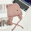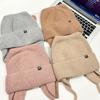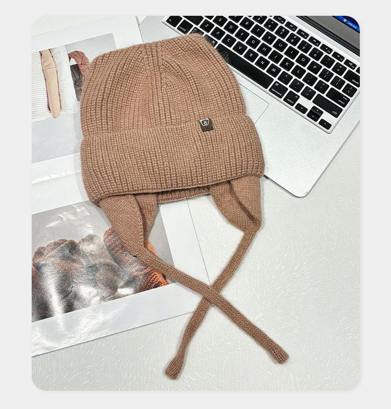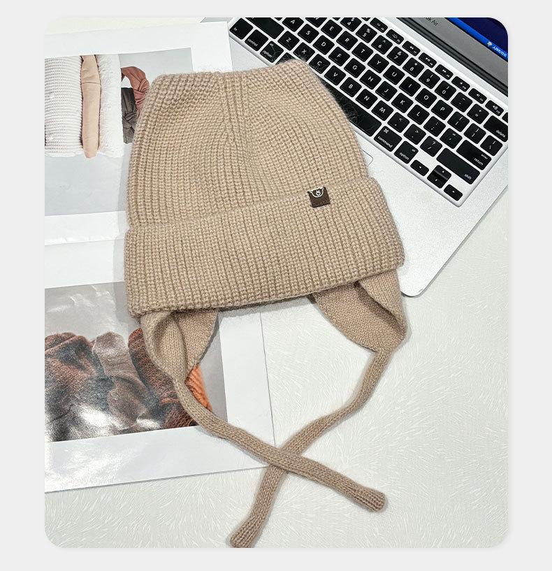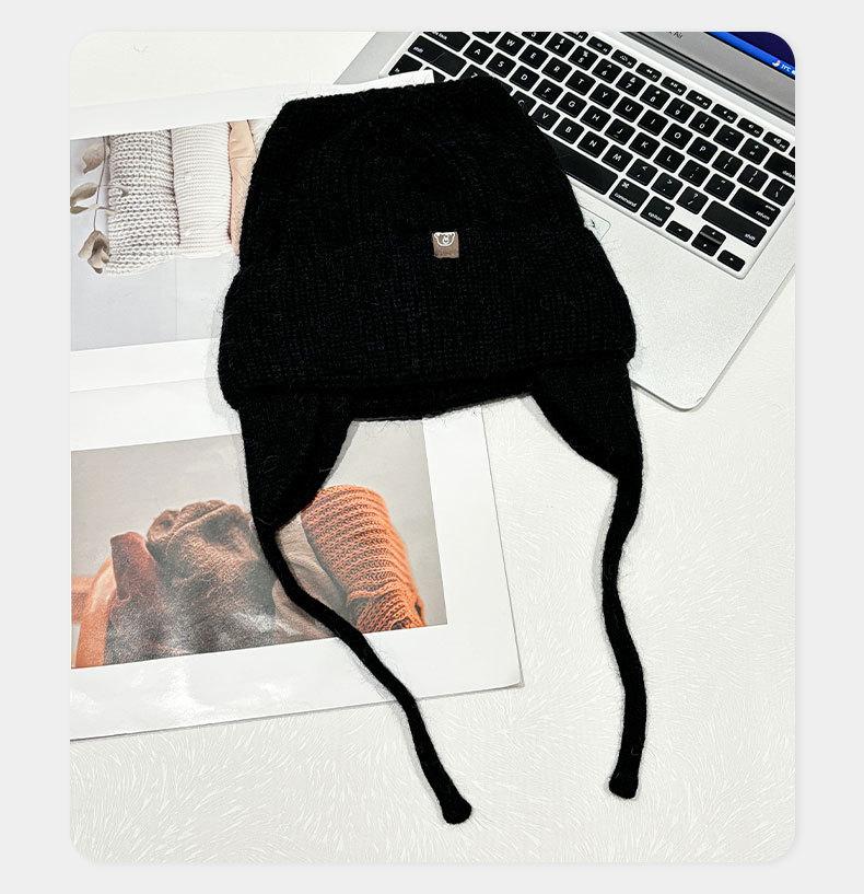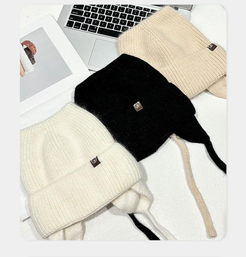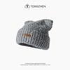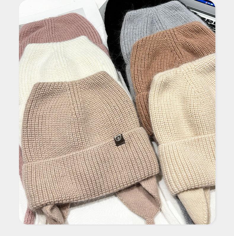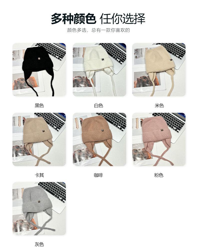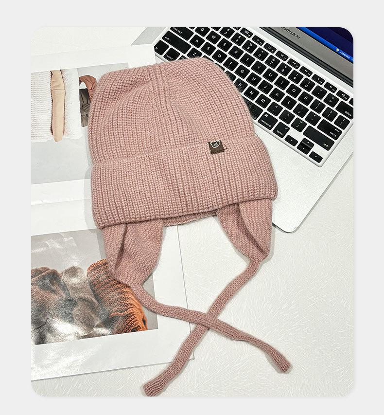 Gorro de lana con orejas de gato para mujer, de otoño e invierno, de color liso, resistente al viento, con protección para las orejas, estilo coreano, moderno, combinable, grueso y cálido.