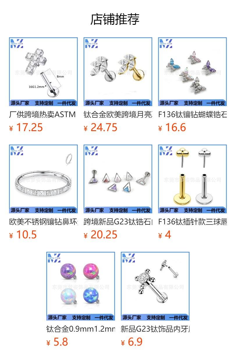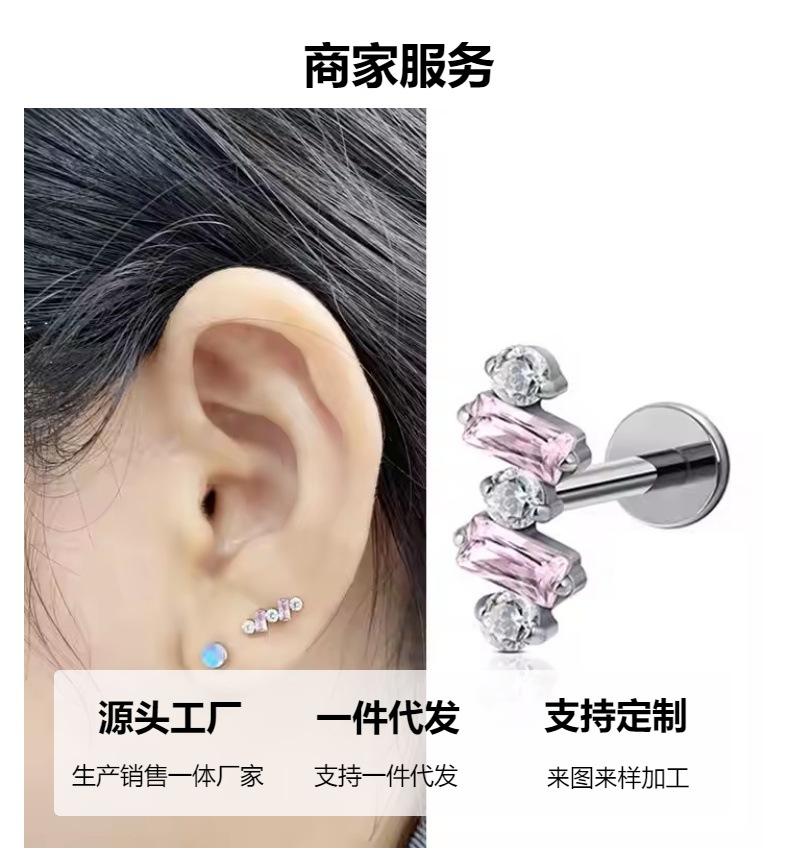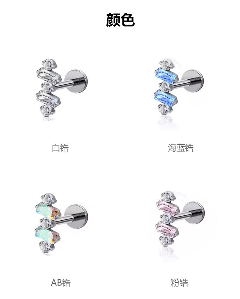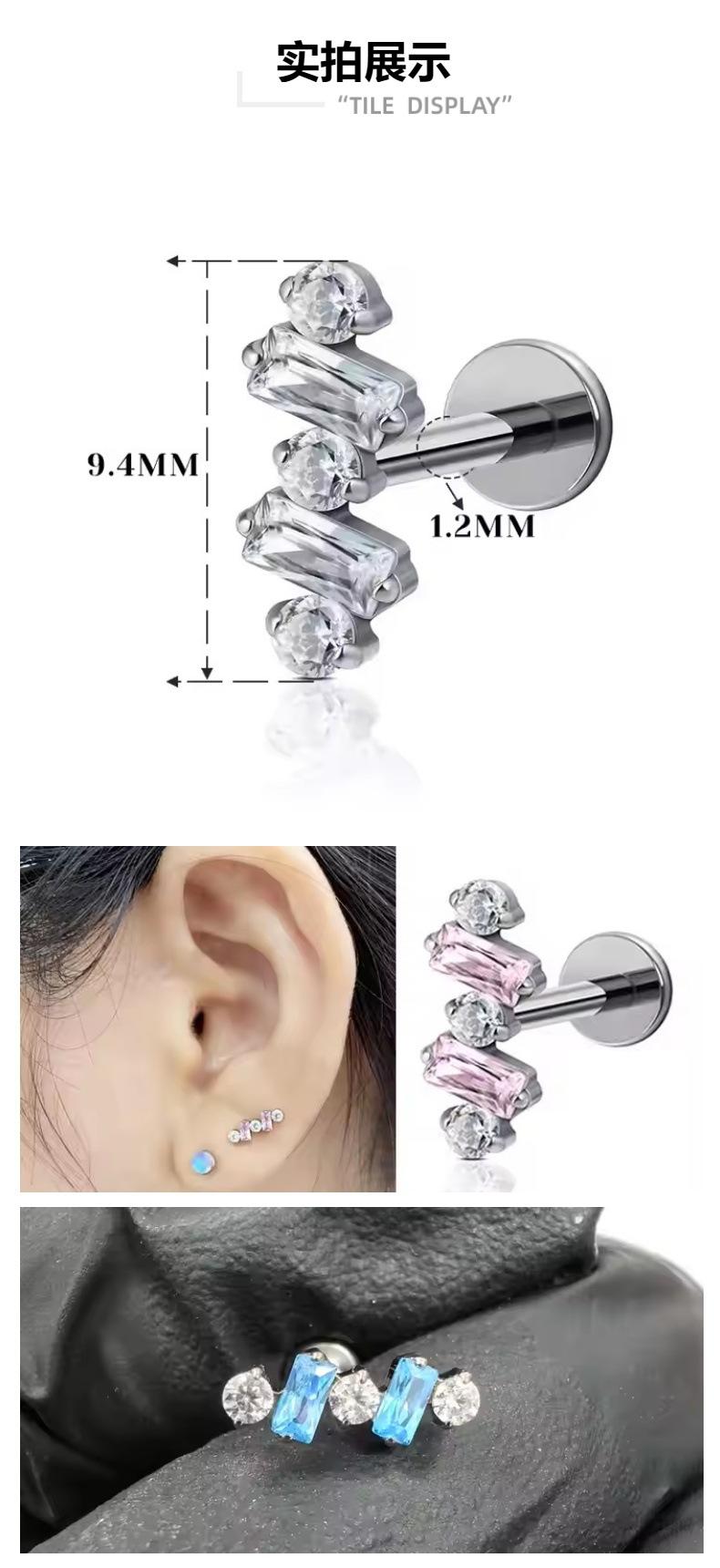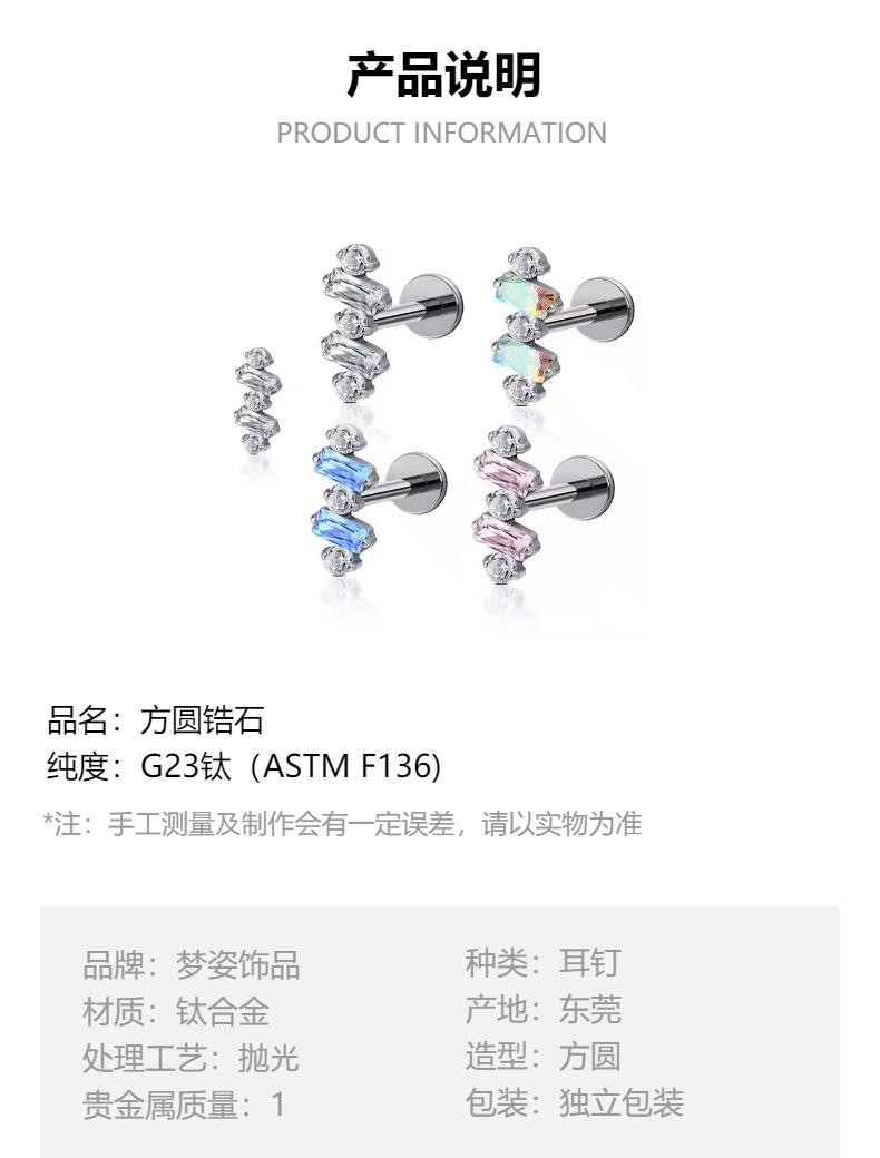 F136 titanio redondo circonio diamante cuadrado arete incrustado con circonita aleación de titanio G23 joyería para perforación del cuerpo humano clavo para hueso de la oreja clavo para labio