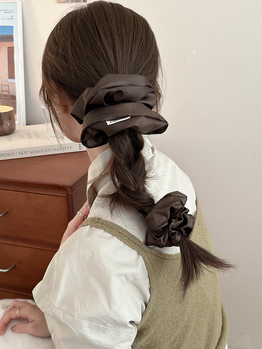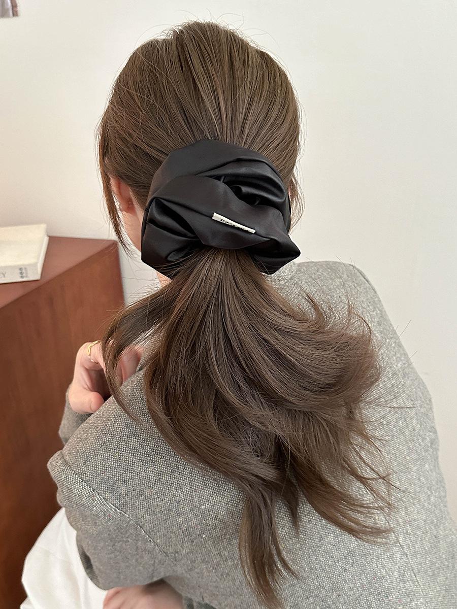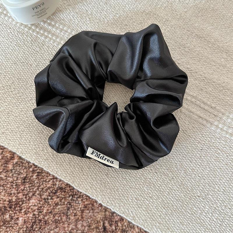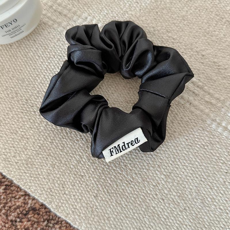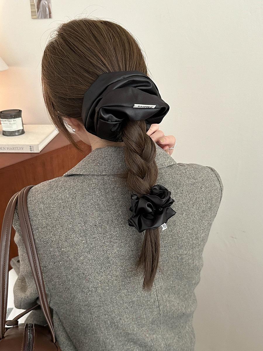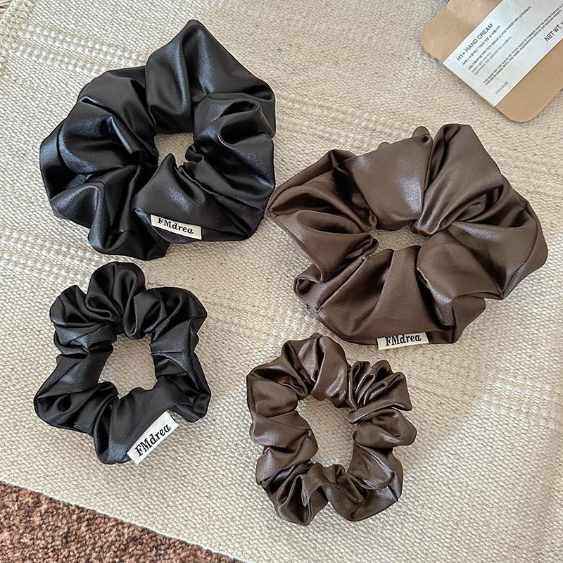 4551-1-black satin scrunchie with label large, 4551-2-brown satin hair tie with label large, 4551-3-black sati...