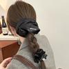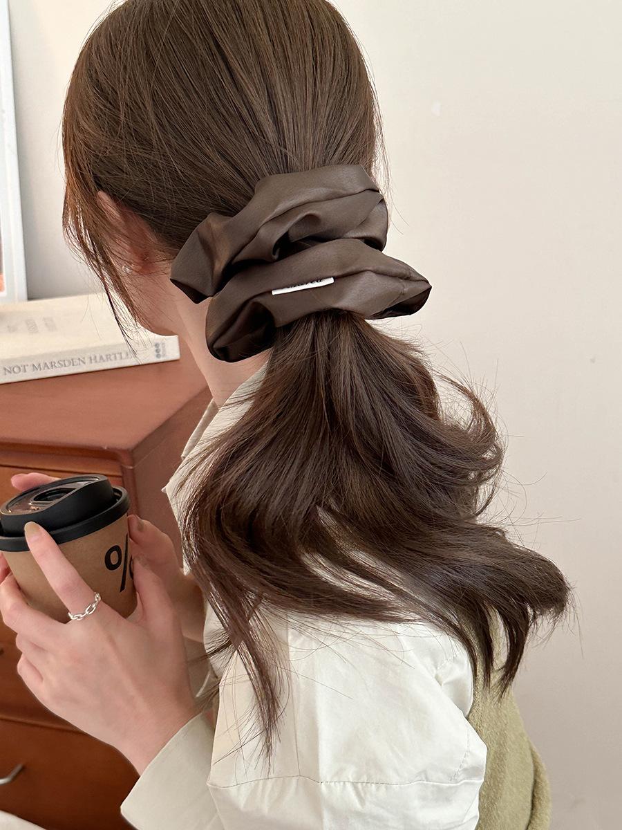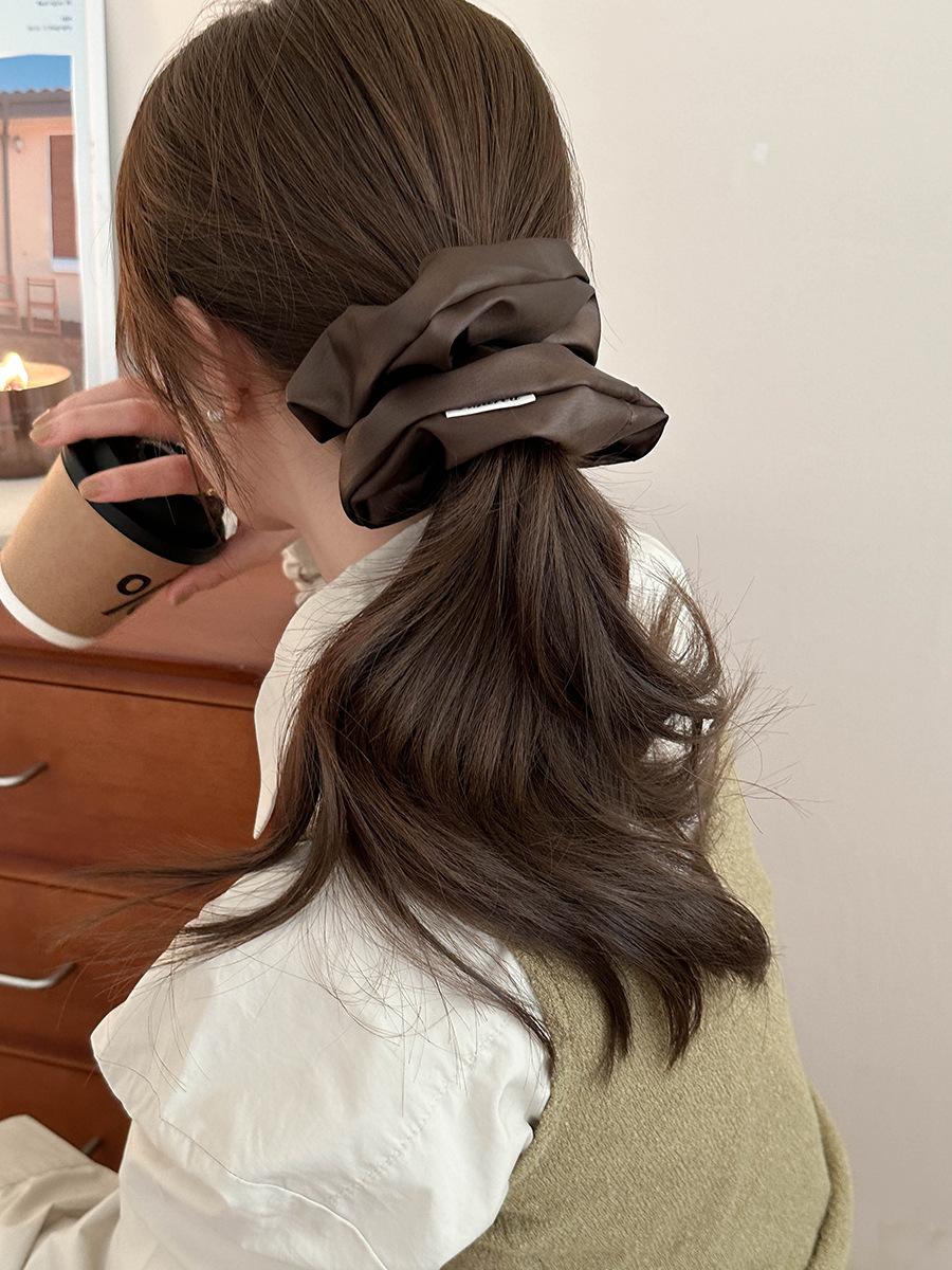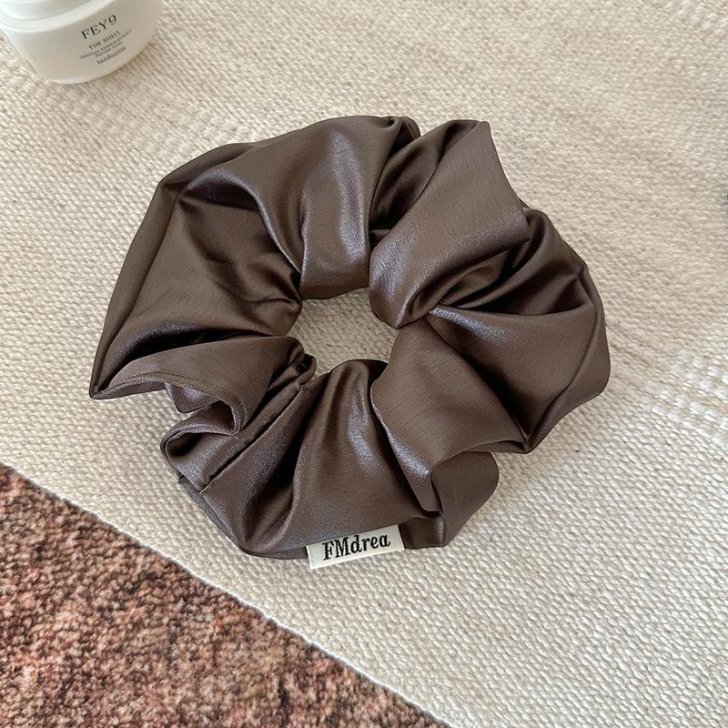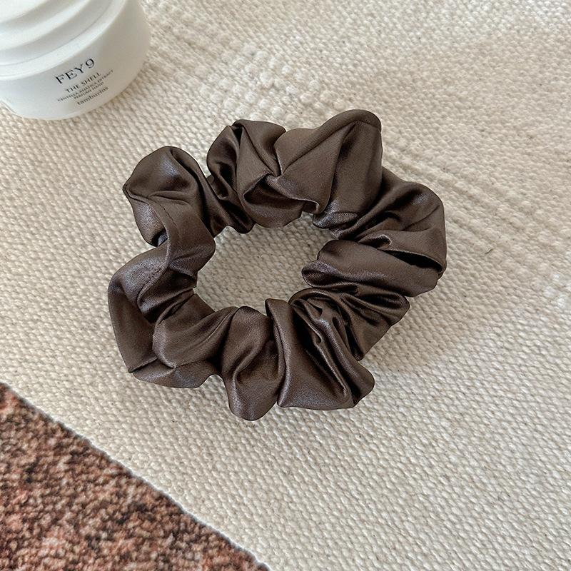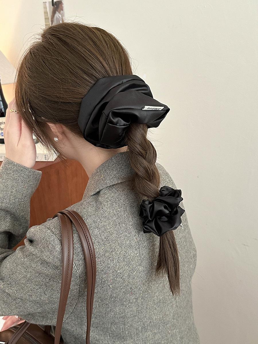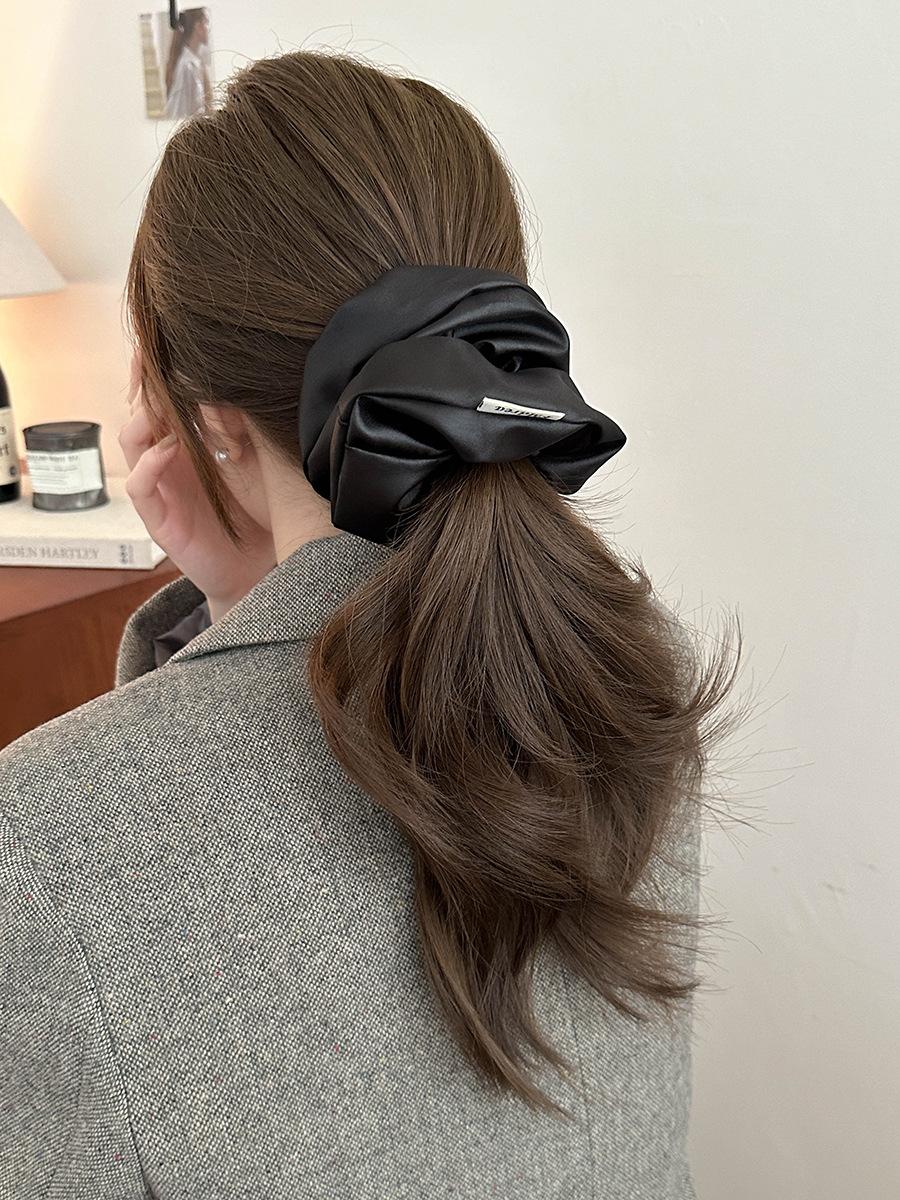 4551-1-black satin scrunchie with label large, 4551-2-brown satin hair tie with label large, 4551-3-black sati...
