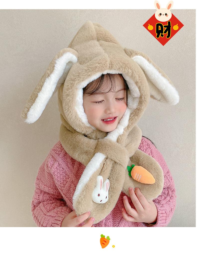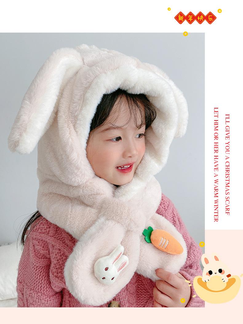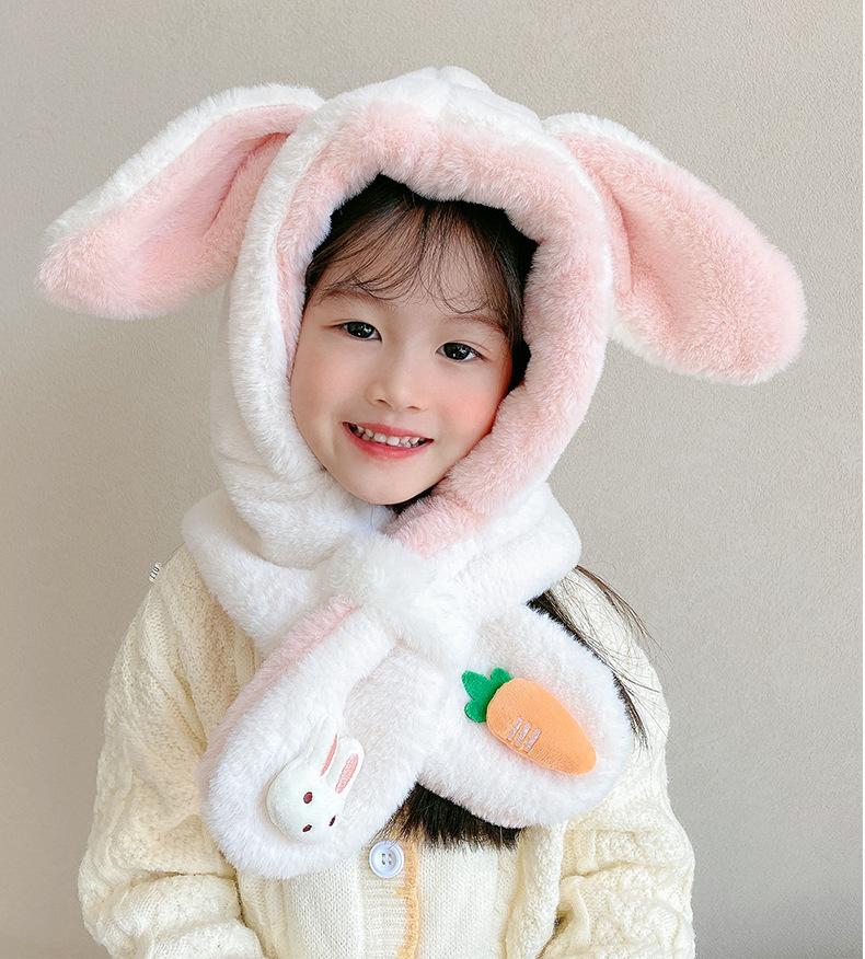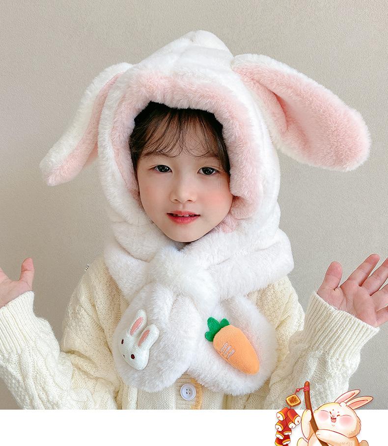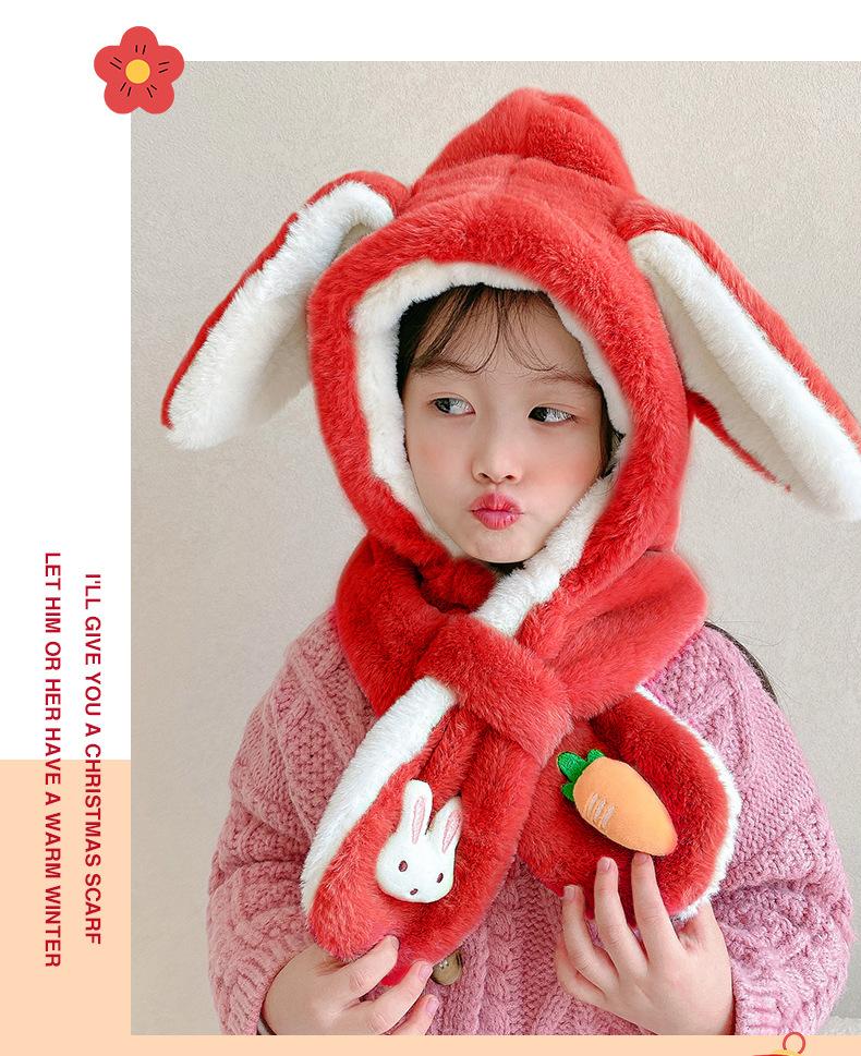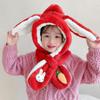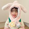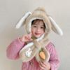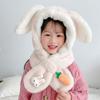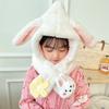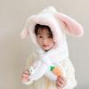 Conjunto de dos piezas de gorro y bufanda con orejas de conejo para niña, gorro y bufanda de felpa gruesa y cálida para invierno.