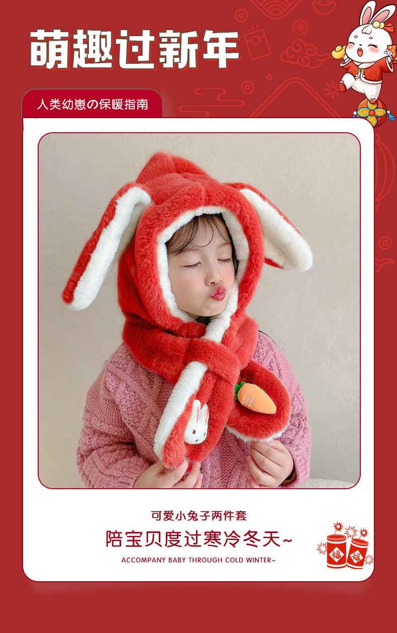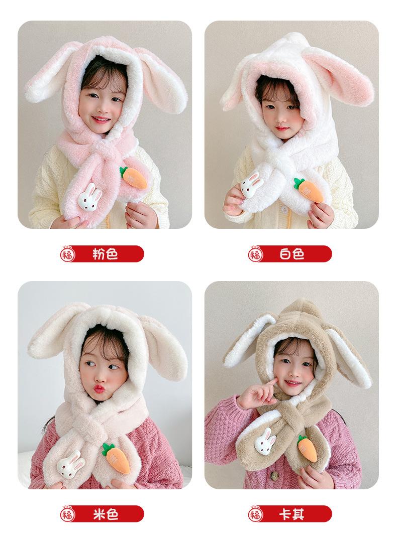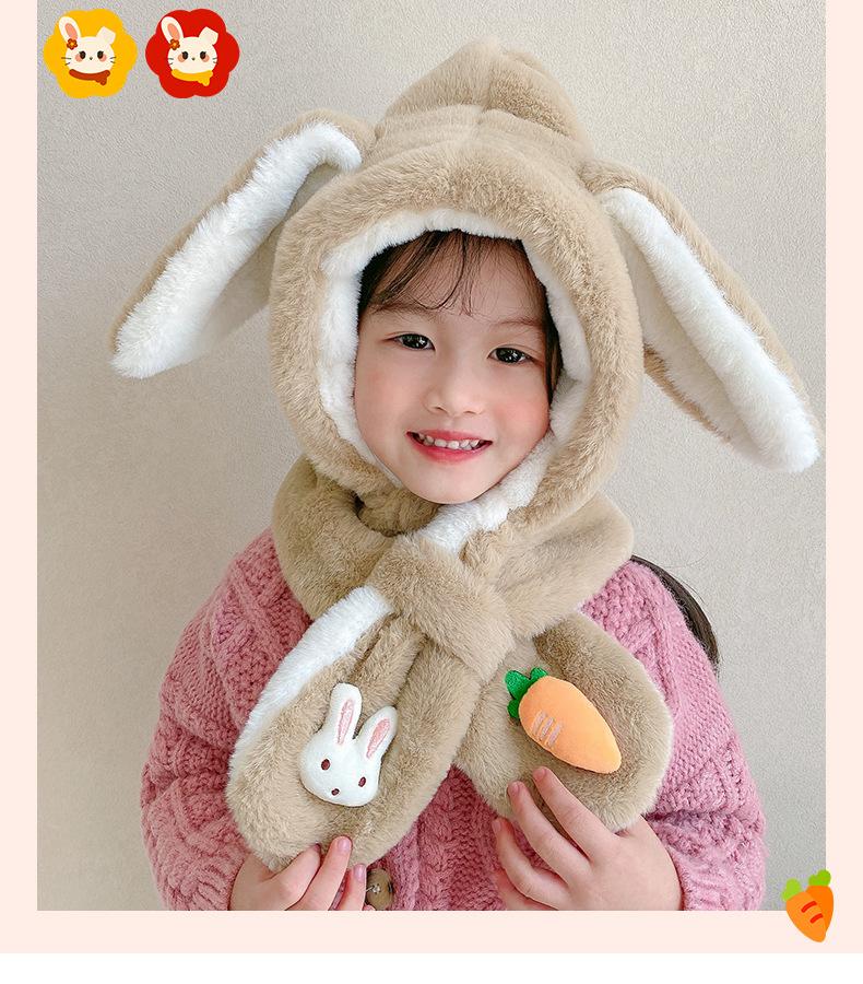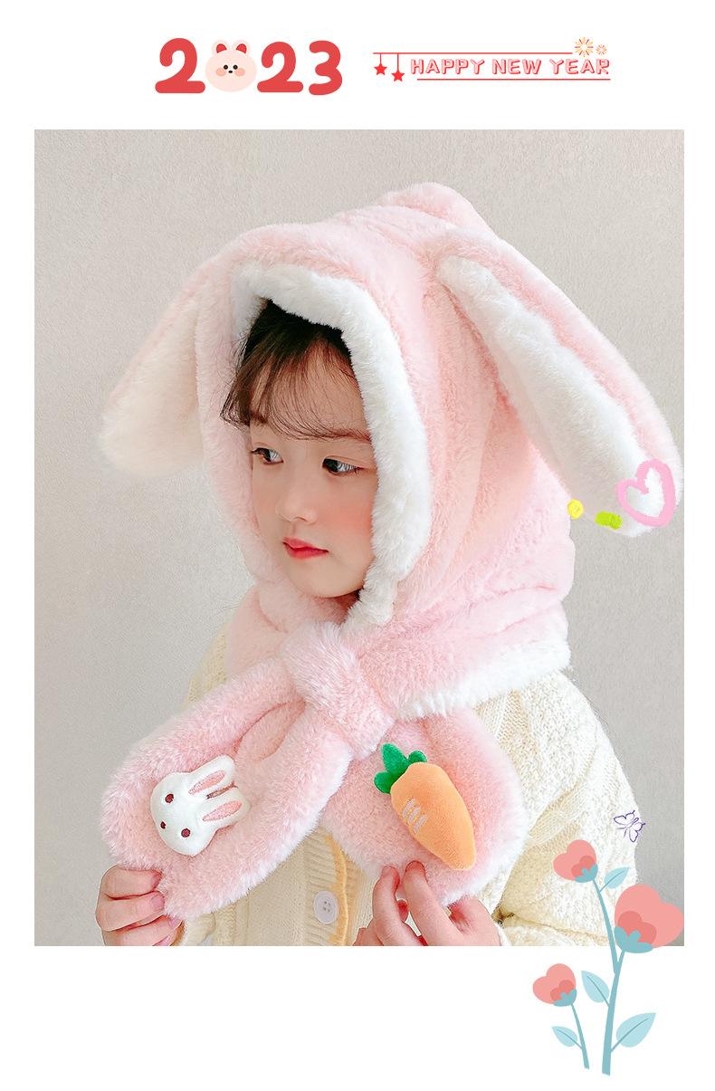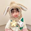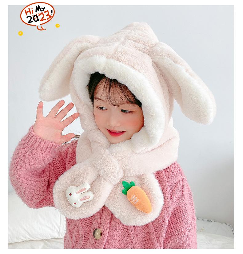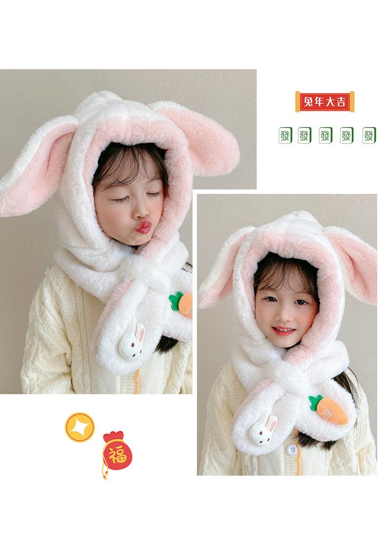 Conjunto de dos piezas de gorro y bufanda con orejas de conejo para niña, gorro y bufanda de felpa gruesa y cálida para invierno.