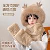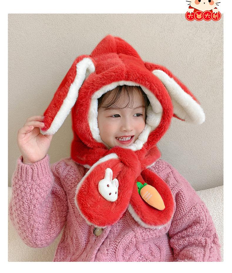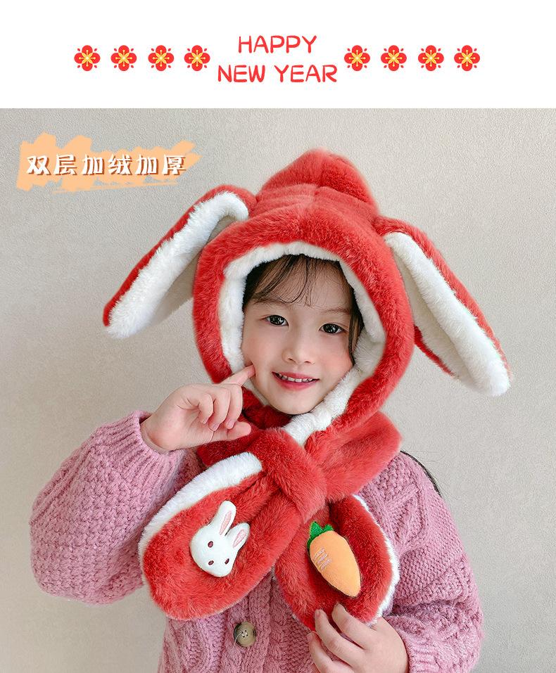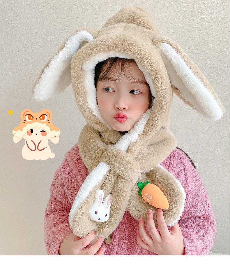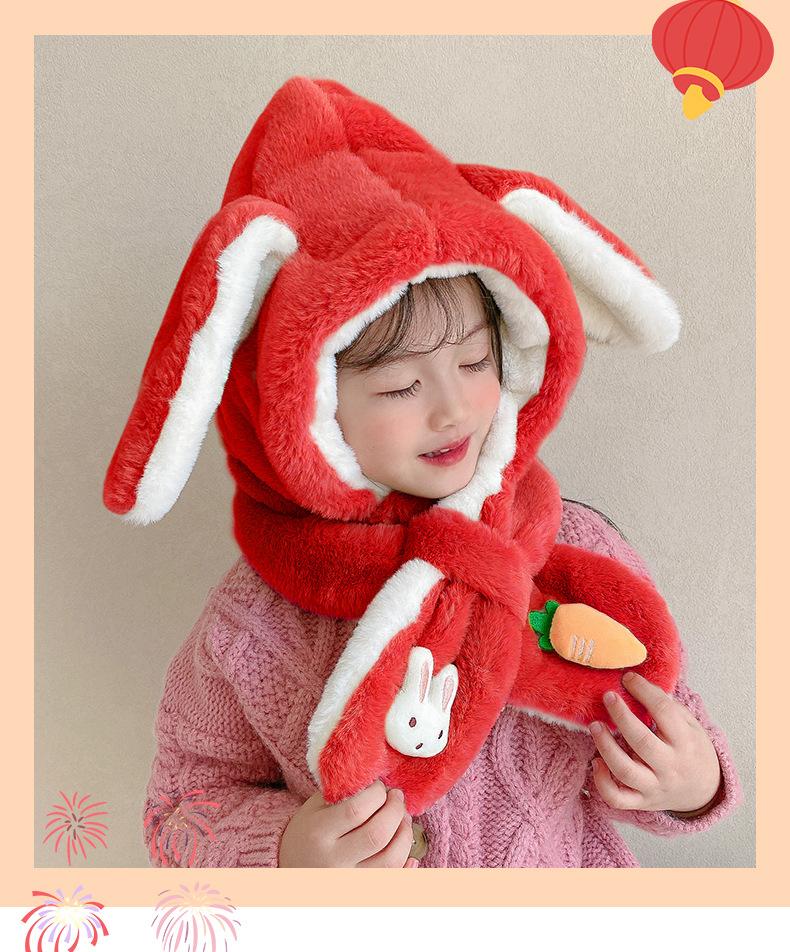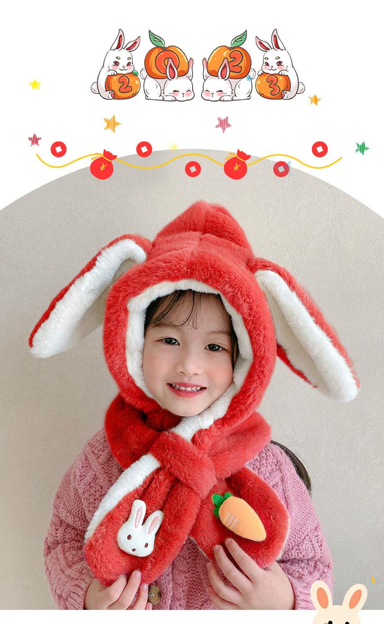 Conjunto de dos piezas de gorro y bufanda con orejas de conejo para niña, gorro y bufanda de felpa gruesa y cálida para invierno.