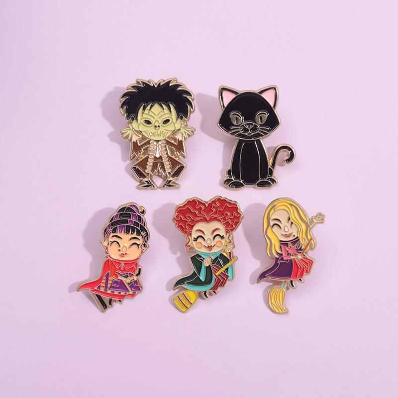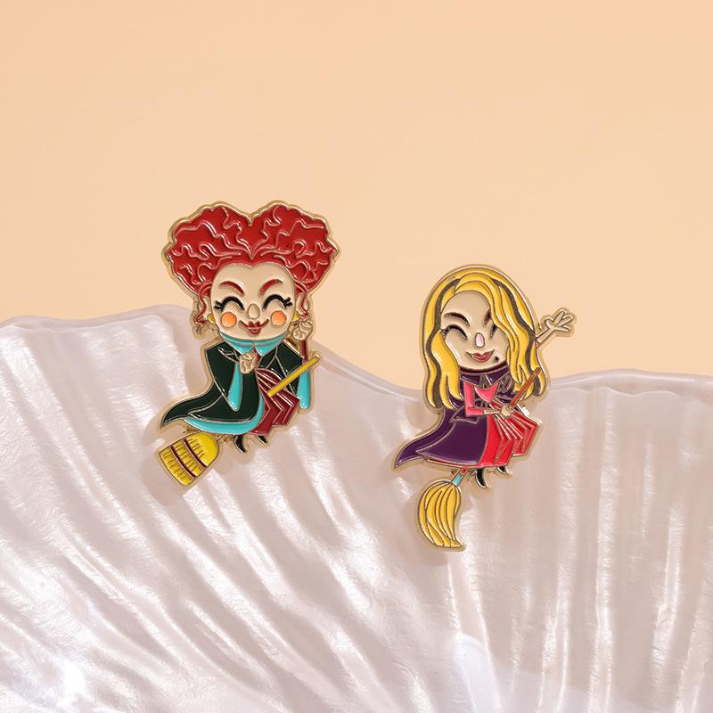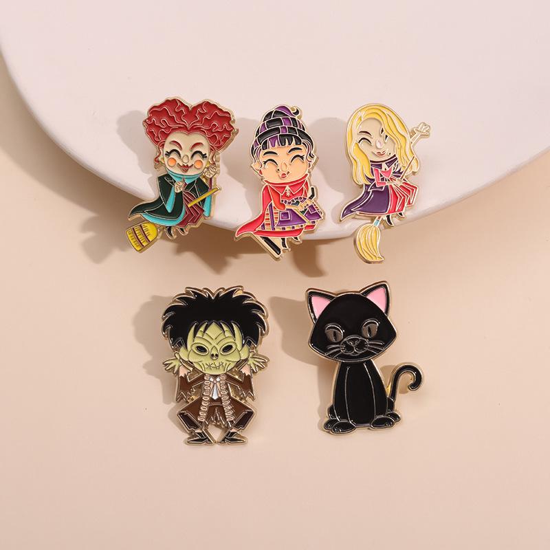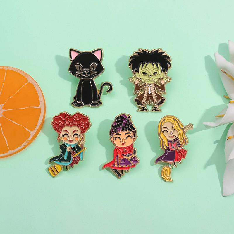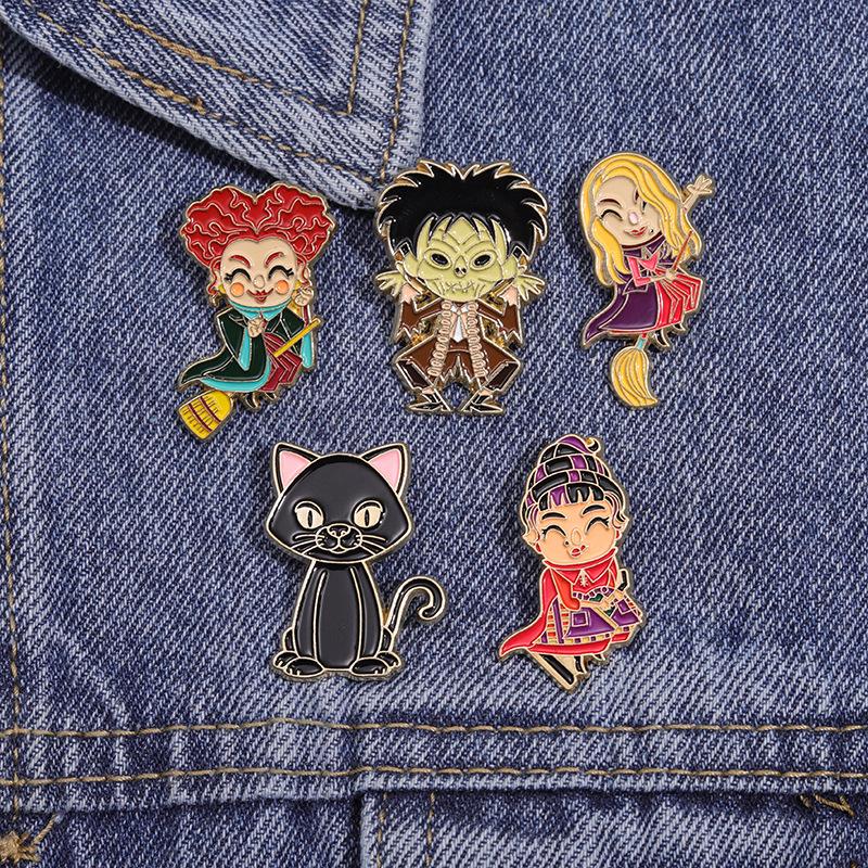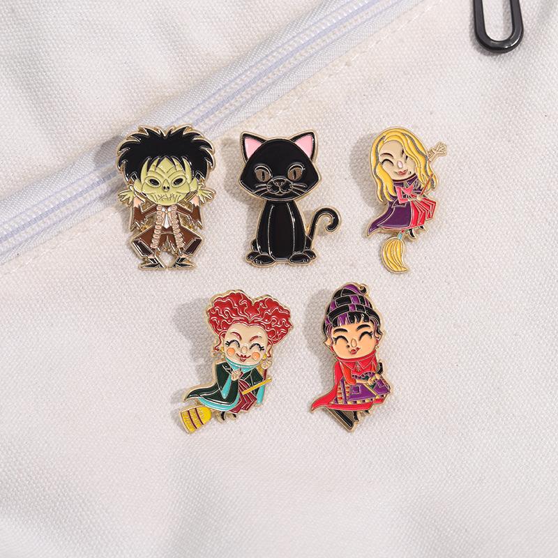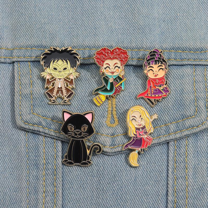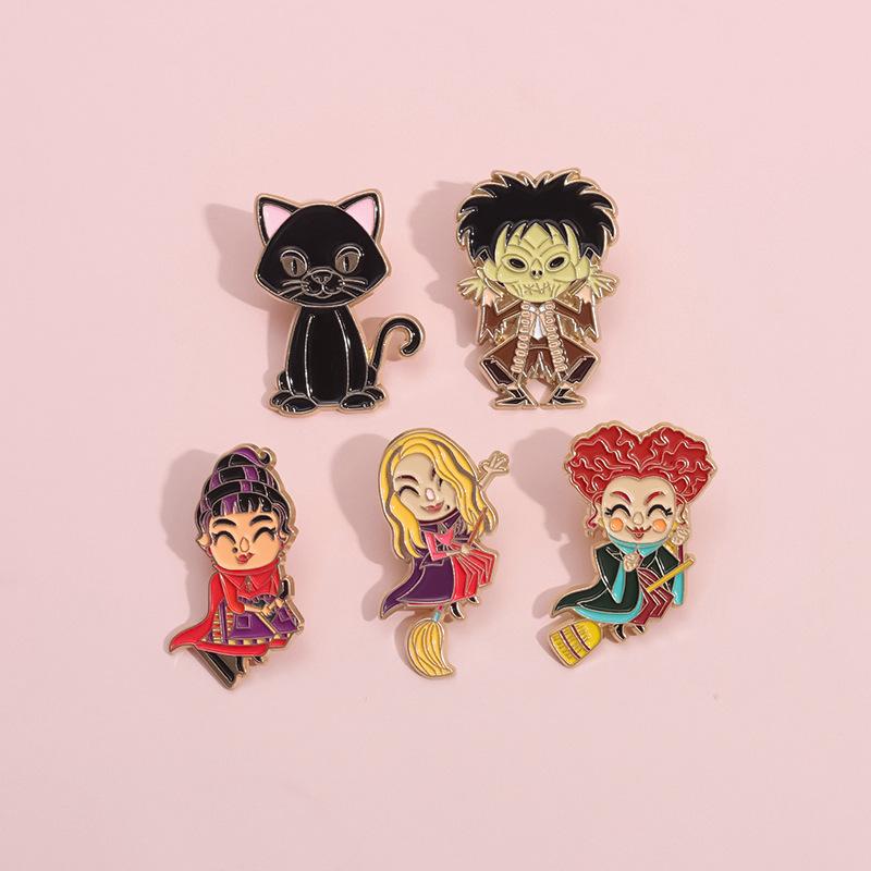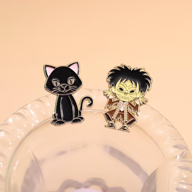 Broche Anime de Dibujos Animados Divertido con Forma de Gato Negro para Montar en una Escoba, Insignia Chic de Alta Gama