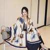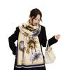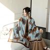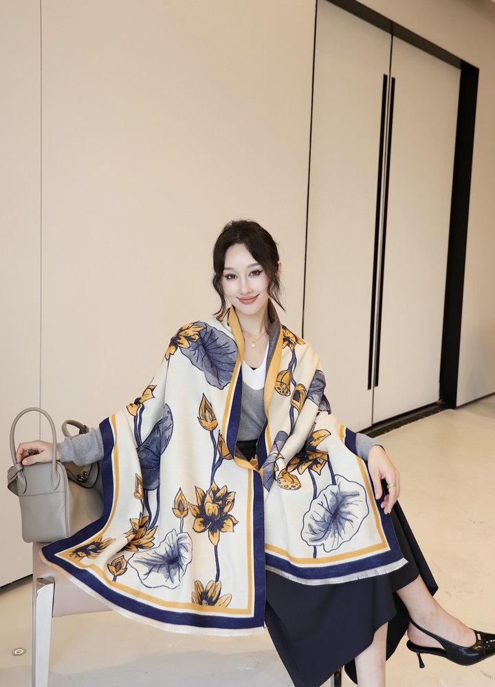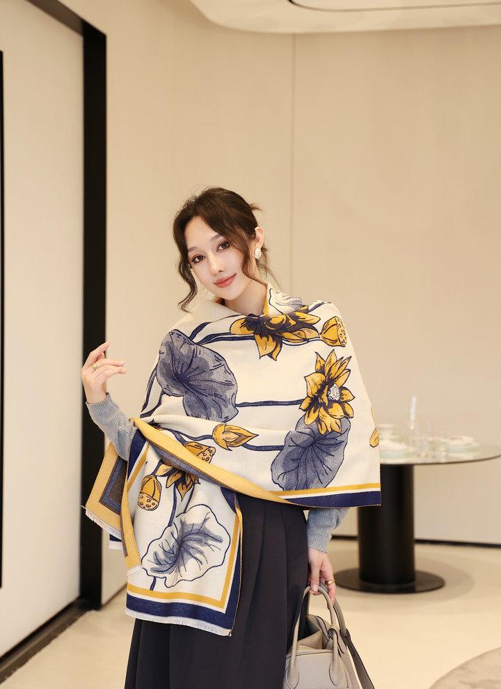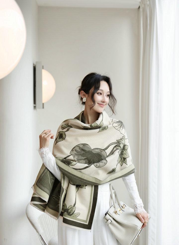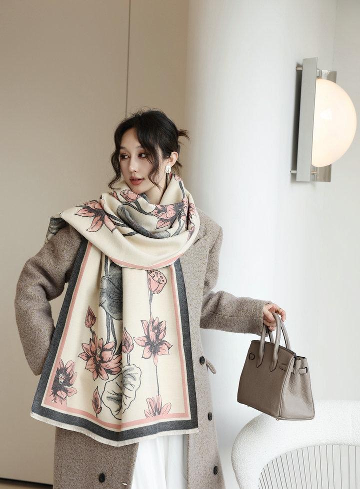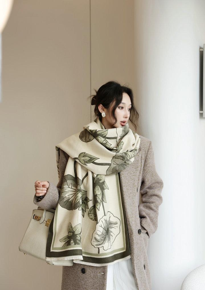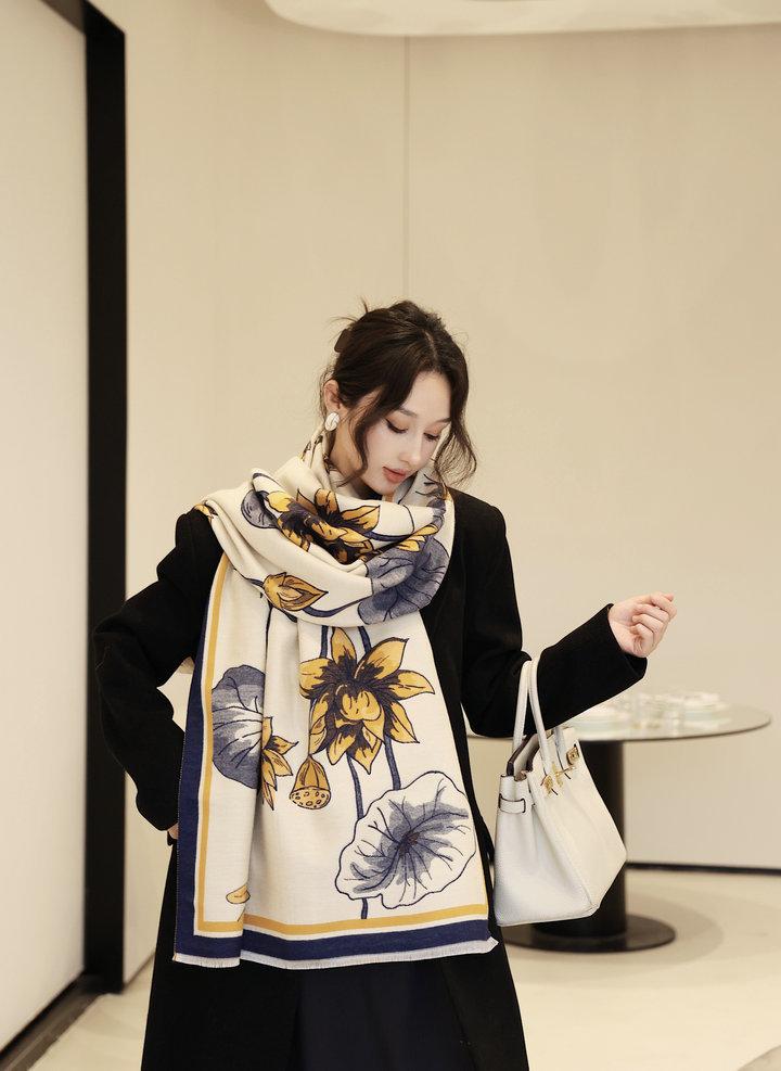 Bufanda cálida elegante de alta gama con estampado de loto para otoño e invierno, ideal para reducir el envejecimiento y el desgaste, chal retro de doble uso.