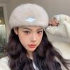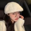 Internet Sombrero de Boina de Invierno para Mujer de Piel de Conejo Blanco Rojo Muestra la Cara Pequeña Otoño e Invierno Británico Combinable Retro Trendy Sombrero Belle
