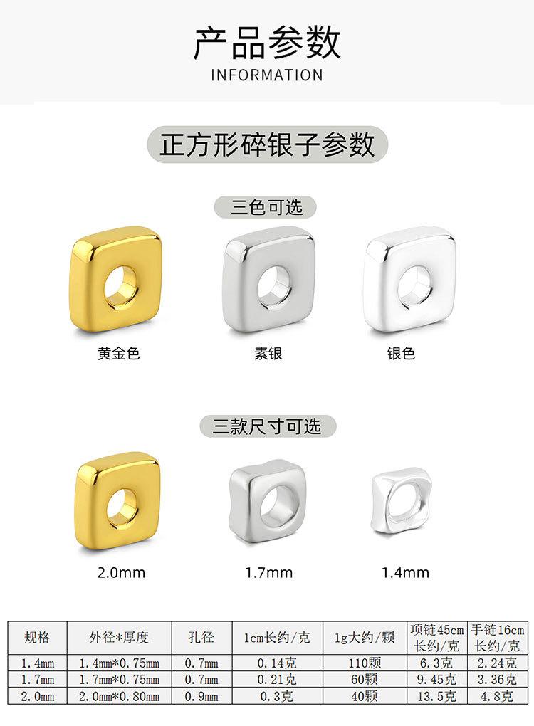 The outer diameter of the four squares is 2.0mm * 0.8 thick * about 40 pieces per gram