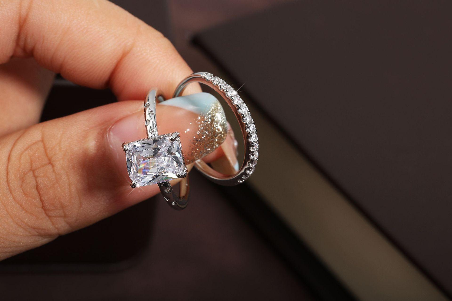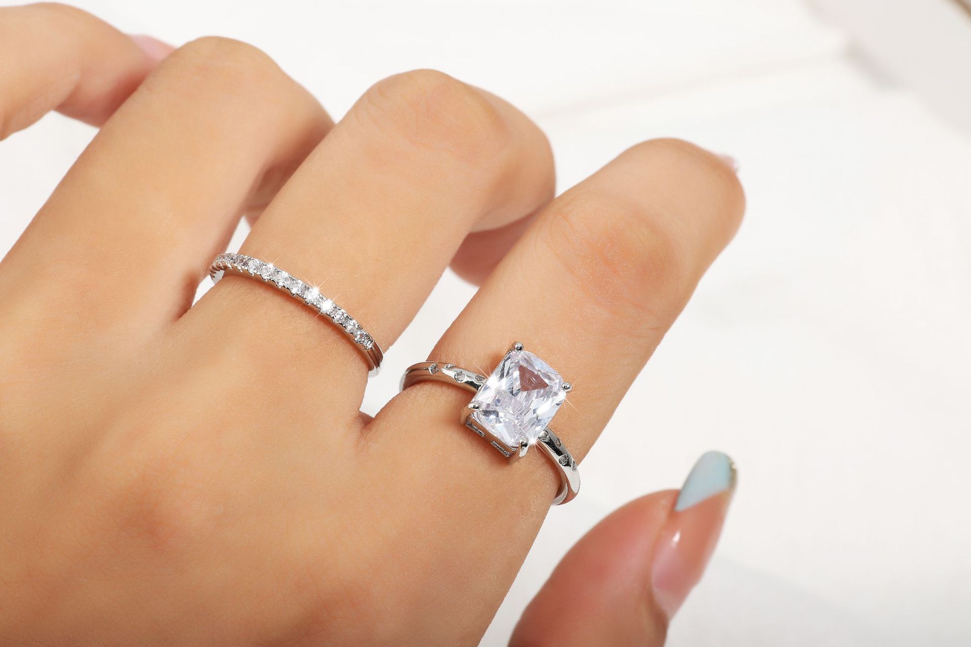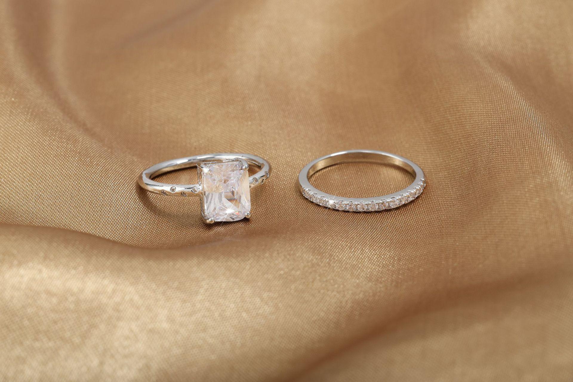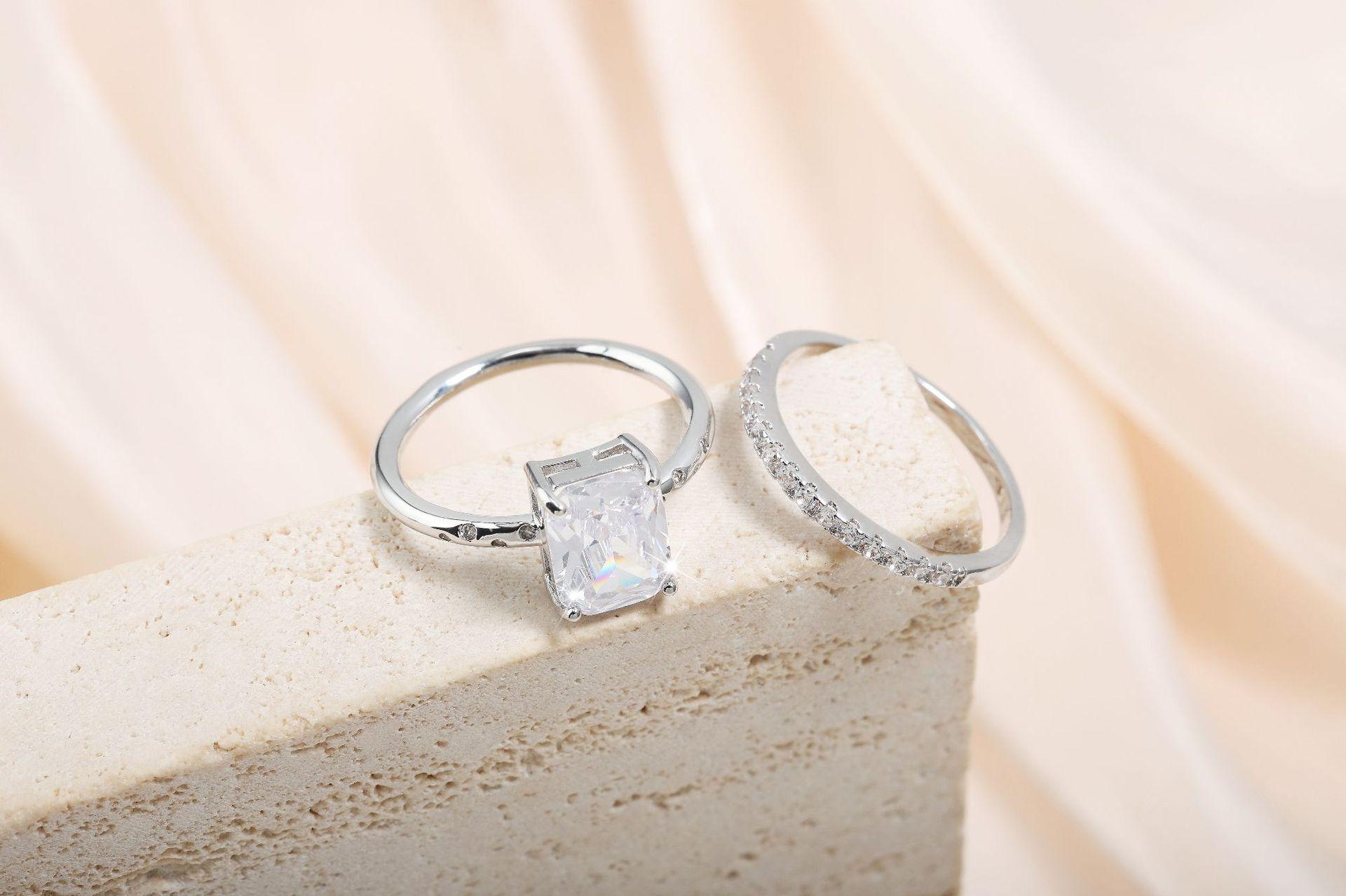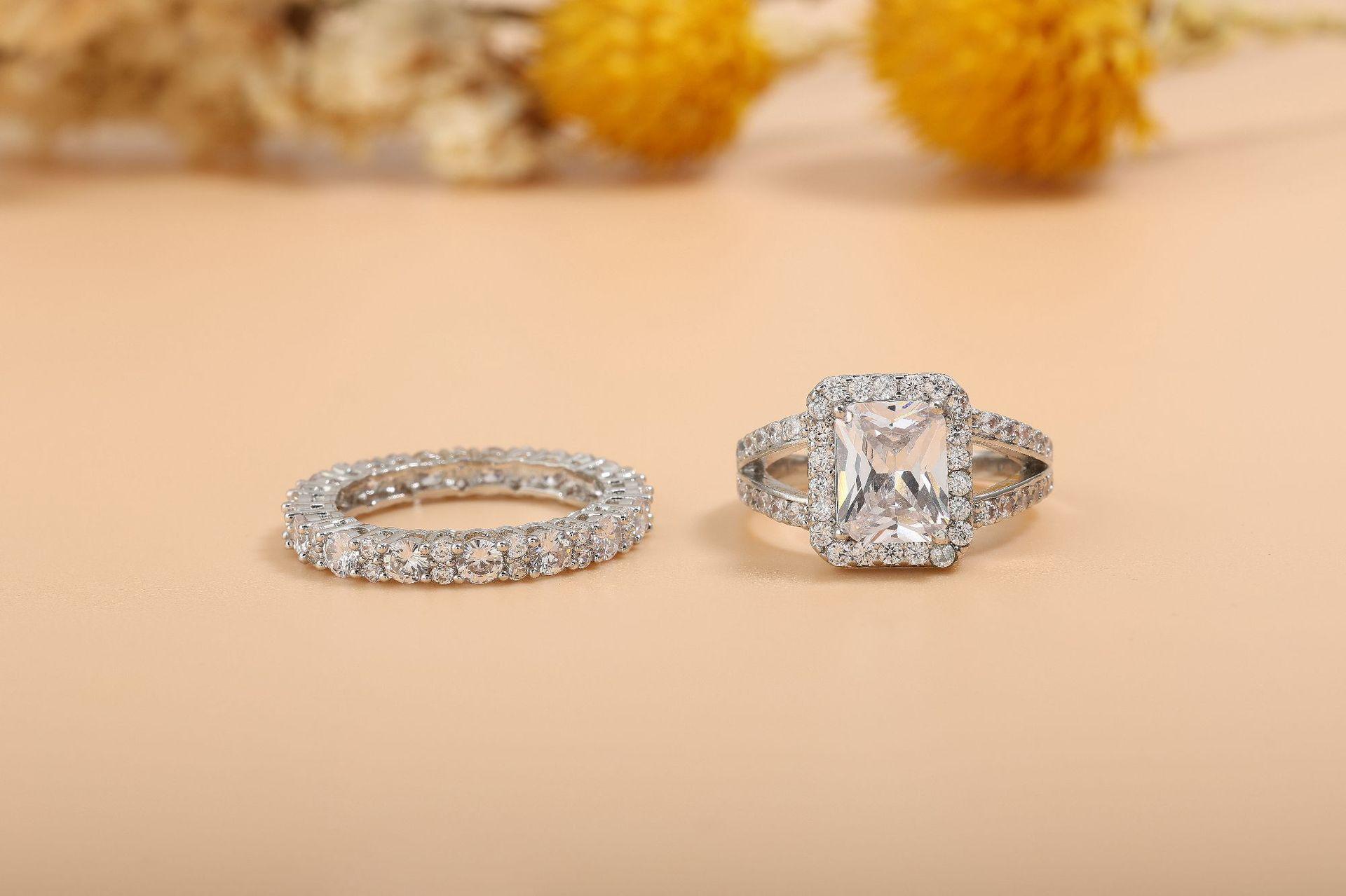 Rakol Explosiones Transfronterizas Europeas y Americanas Anillo de Circonita AAA Moda Diamante Completo Personalidad Anillo de Dedo Joyería de Dos Piezas para Mujer